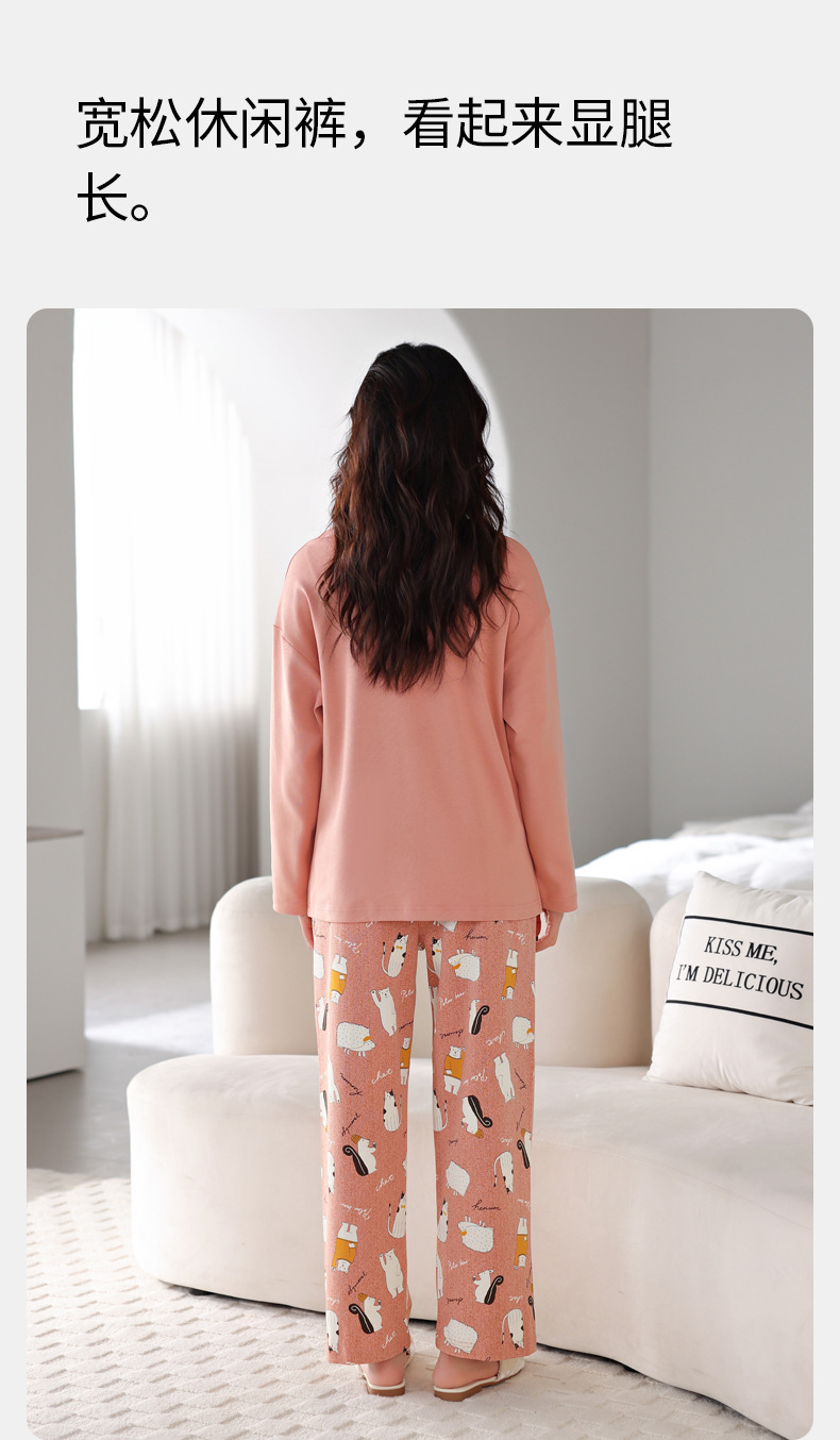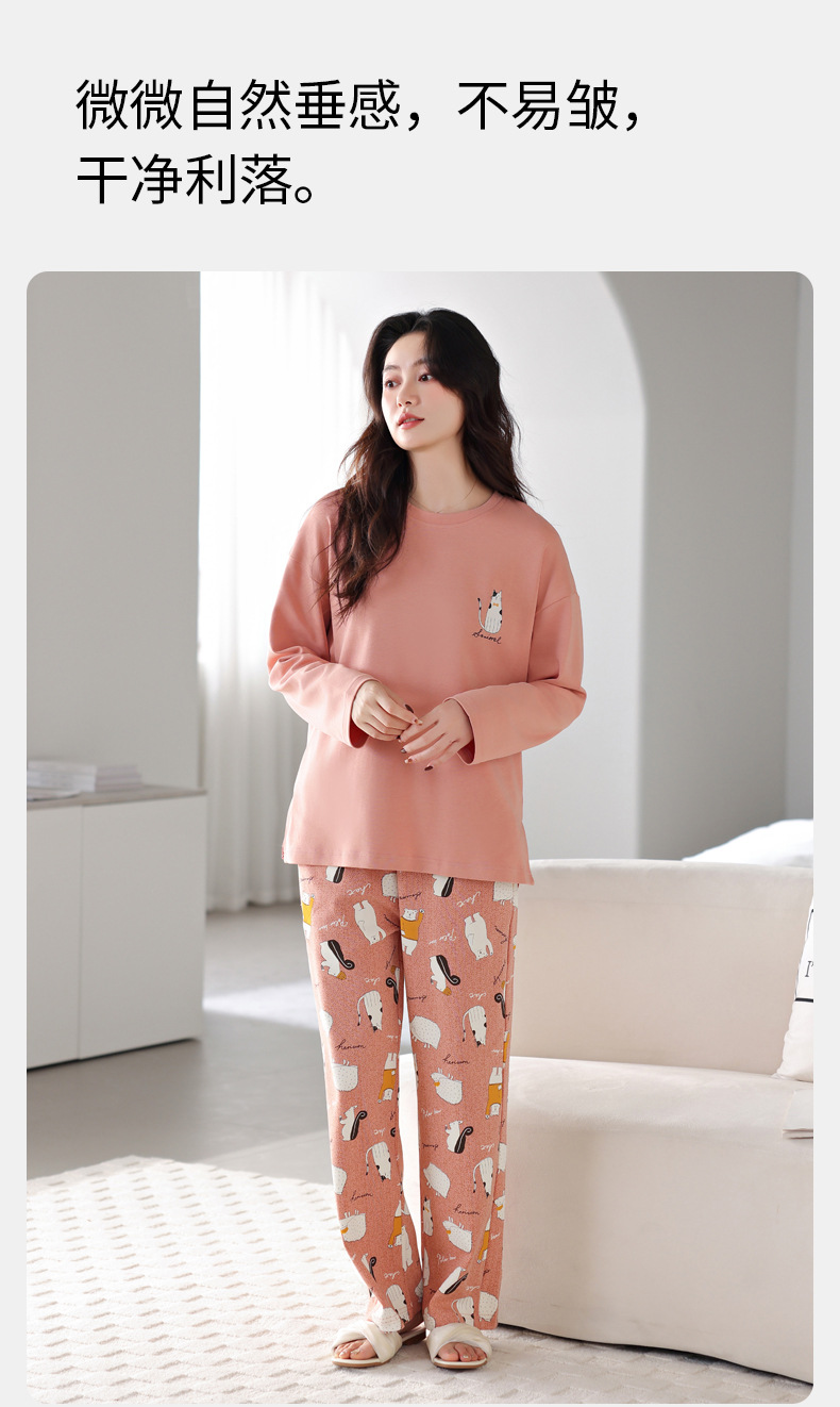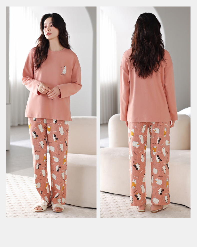 잠옷 여성면 봄과 가을 긴팔 귀여운 만화 플러스 사이즈 면 캐주얼 풀오버 홈 의류 세트 착용스토어 가기