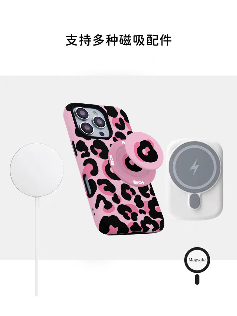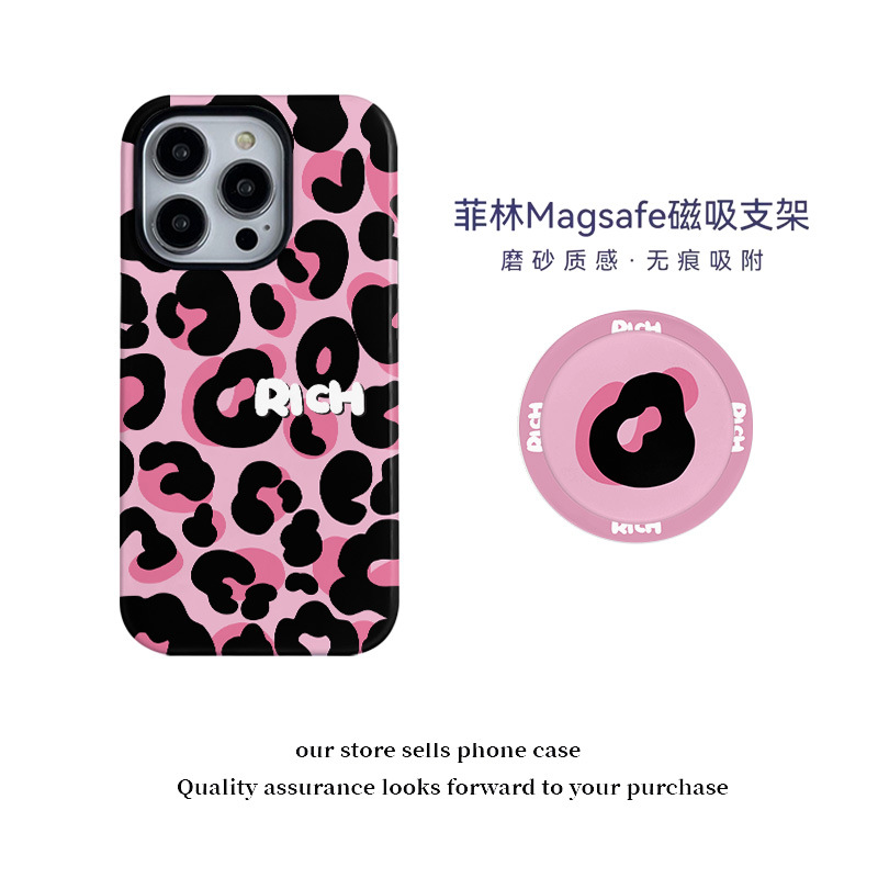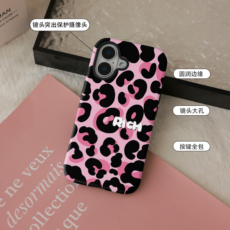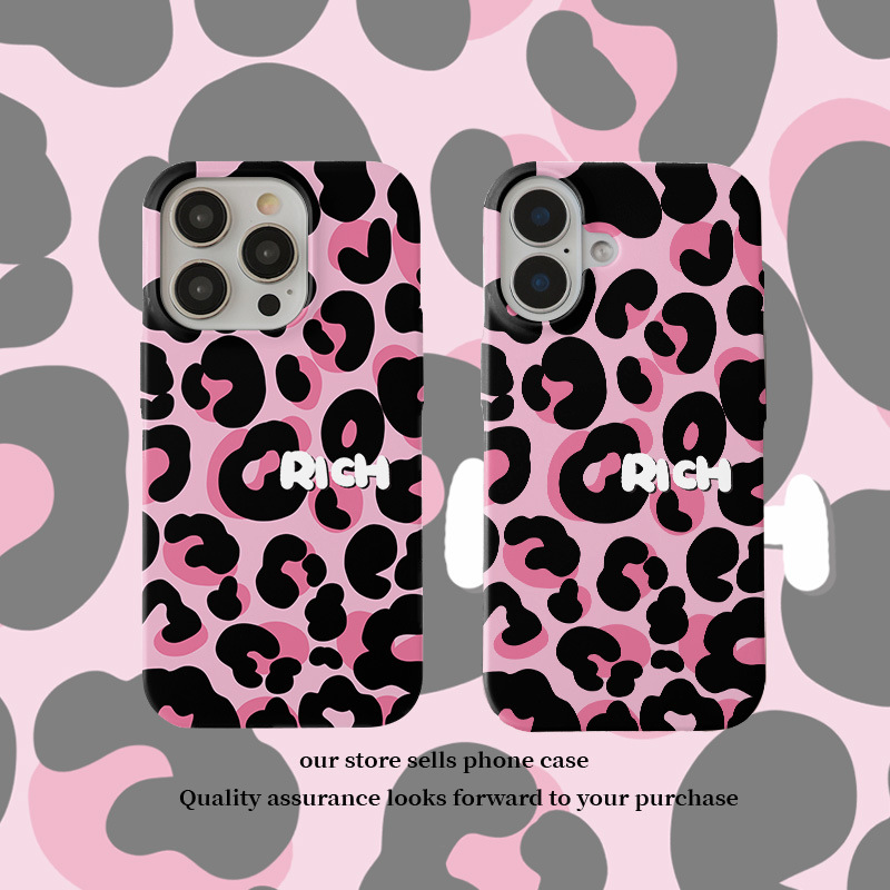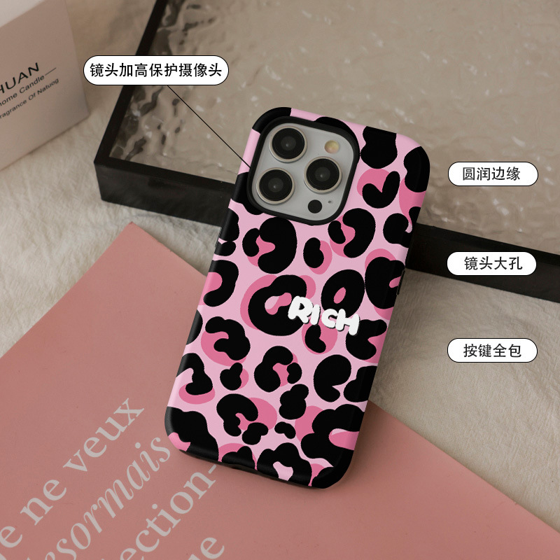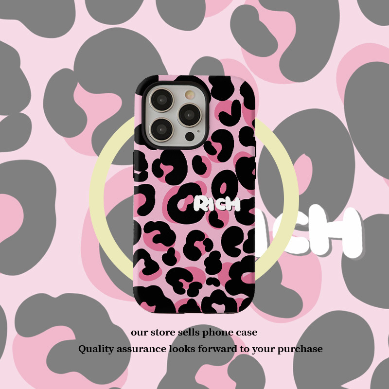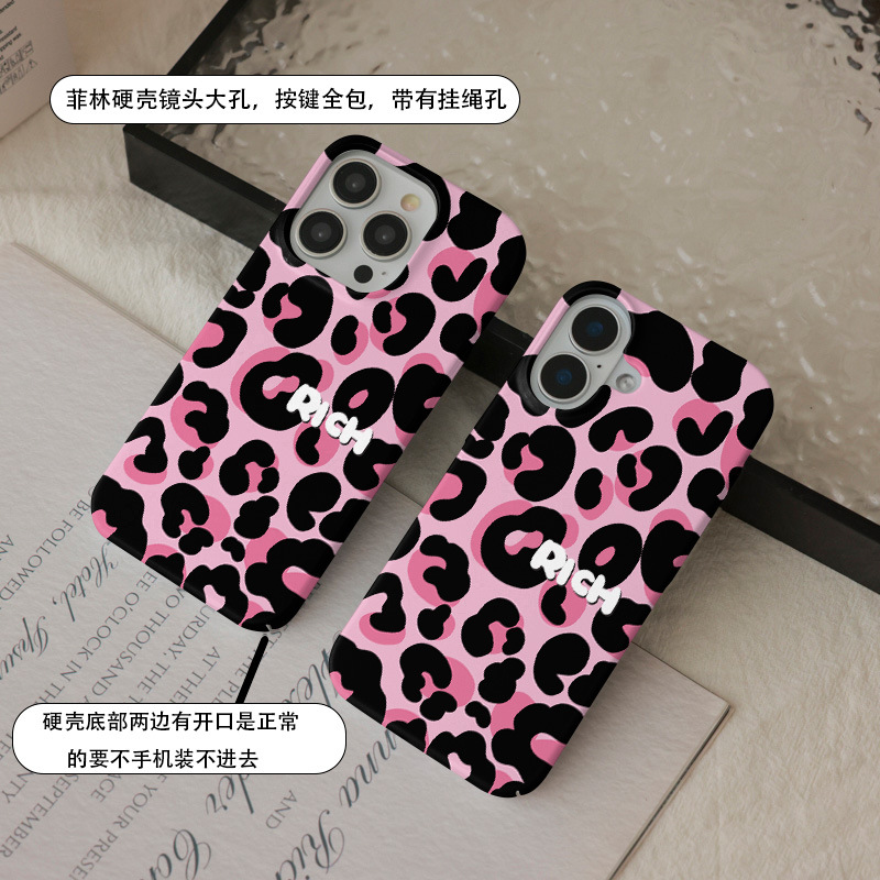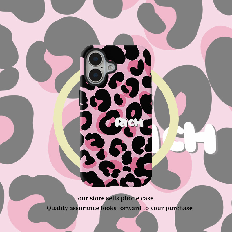 달콤하고 시원한 핑크 레오파드 무늬 자석 필름 2-in-1, 애플 17/16pro 휴대폰 케이스 14/13 방수 12 여성용스토어 가기