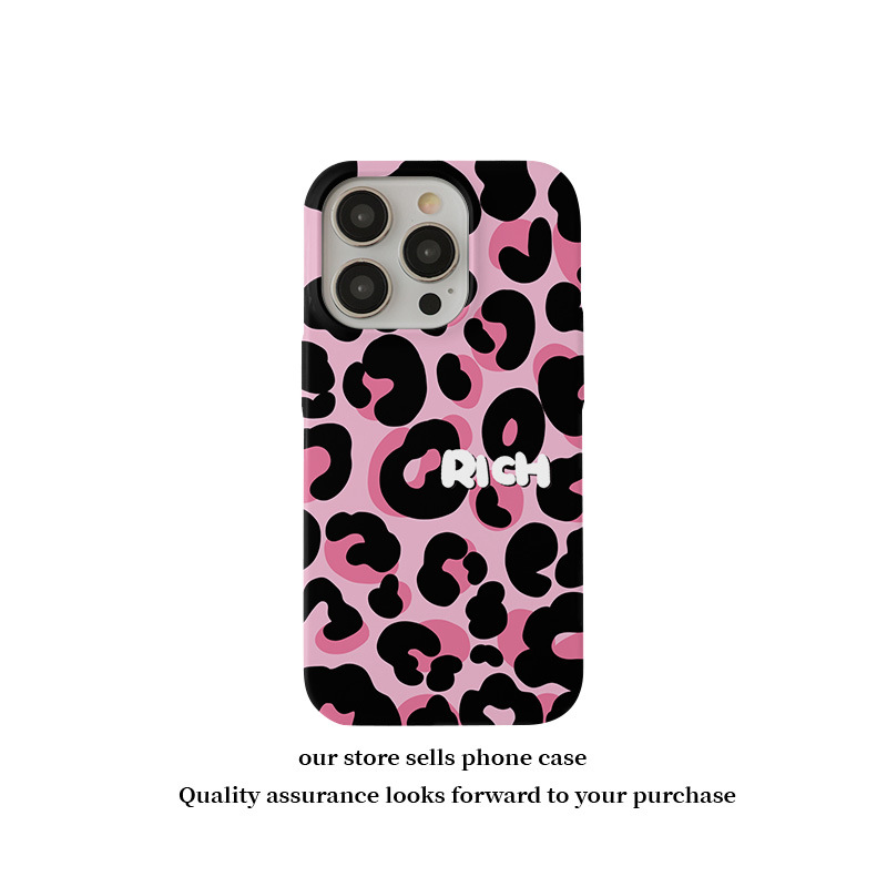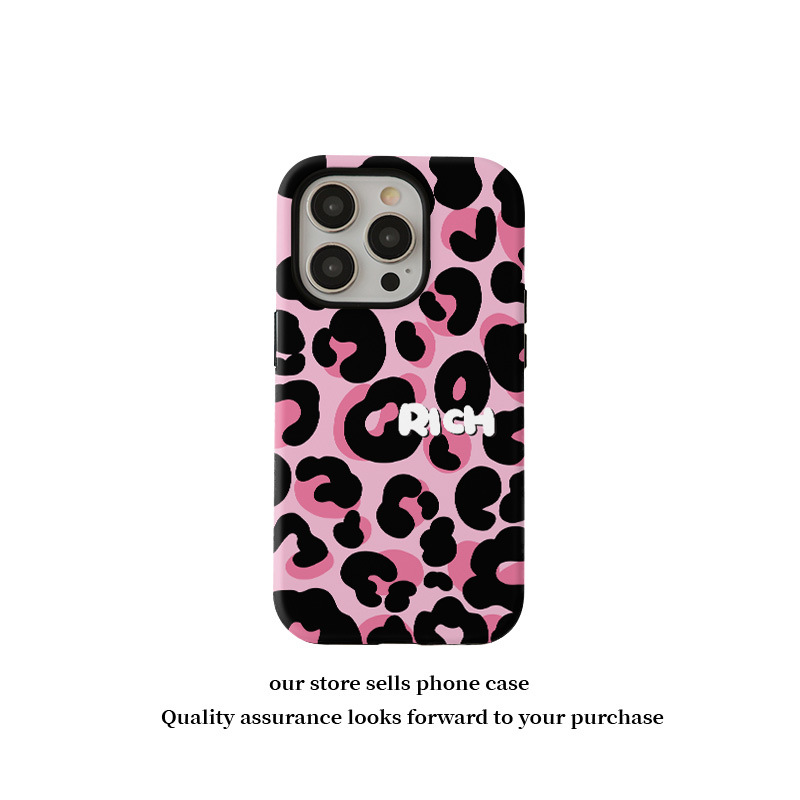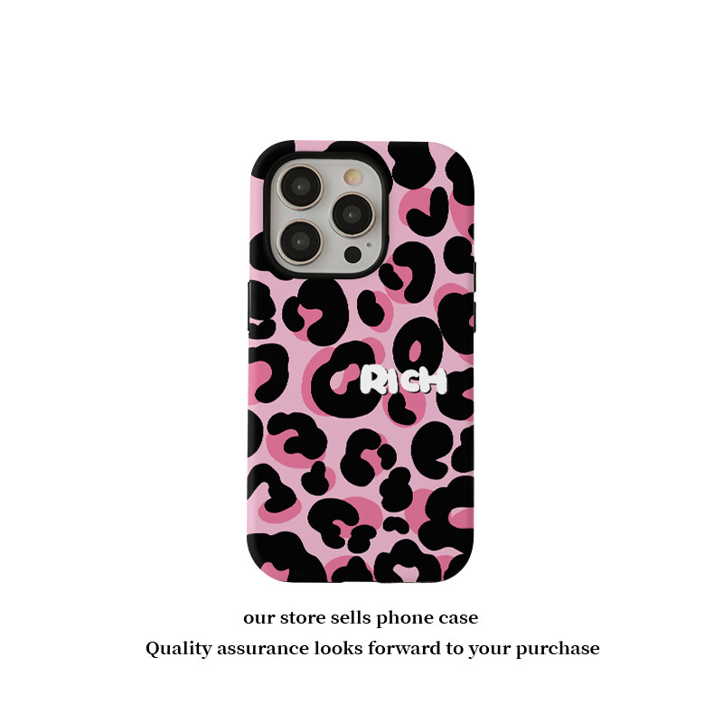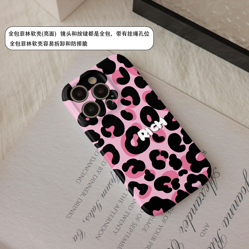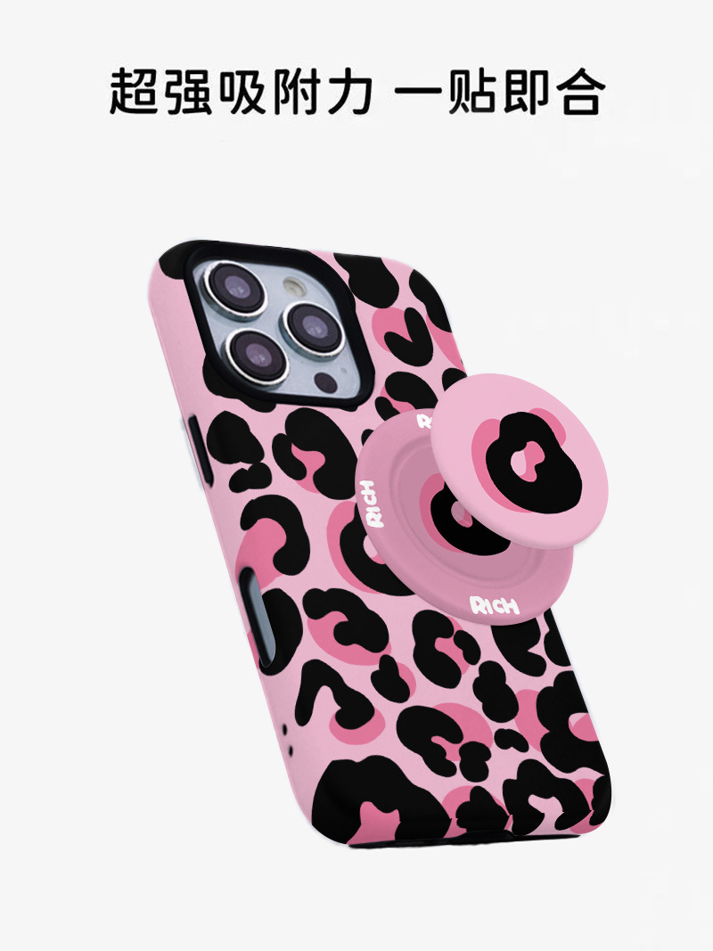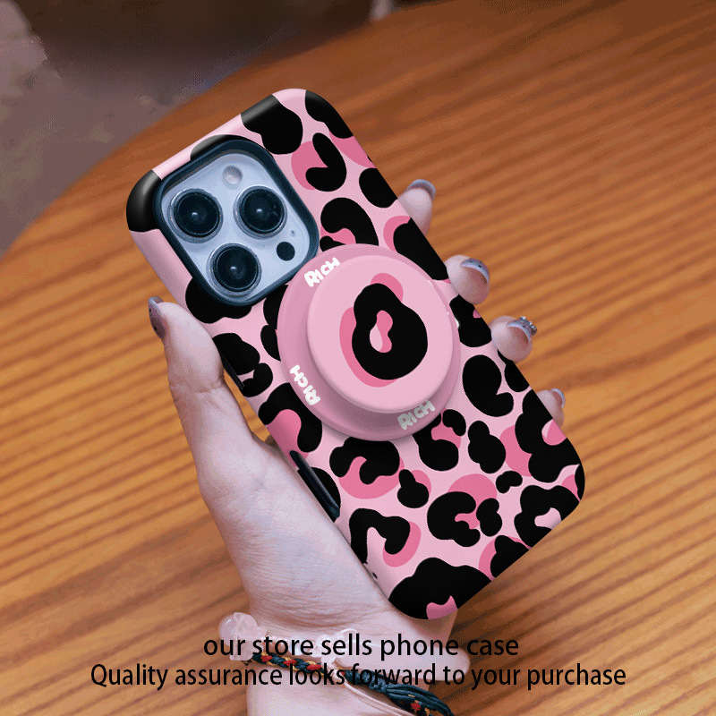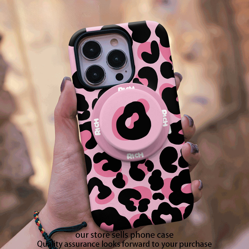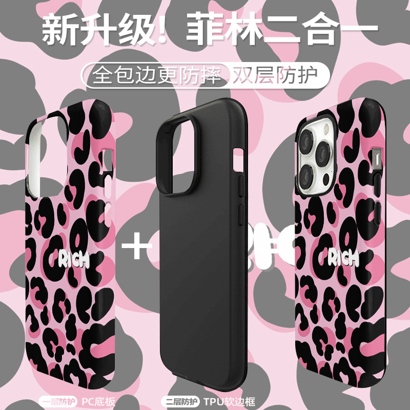 달콤하고 시원한 핑크 레오파드 무늬 자석 필름 2-in-1, 애플 17/16pro 휴대폰 케이스 14/13 방수 12 여성용스토어 가기