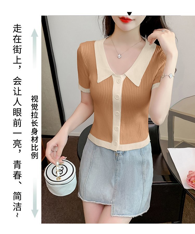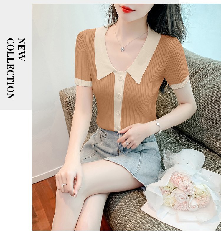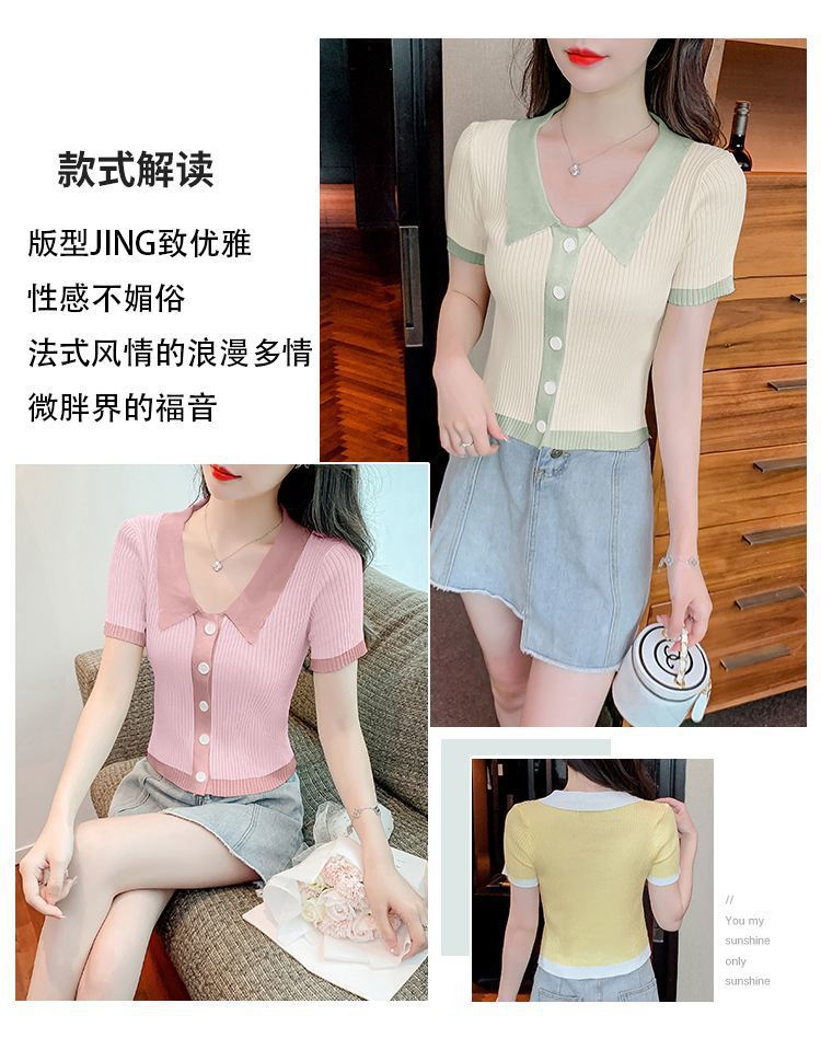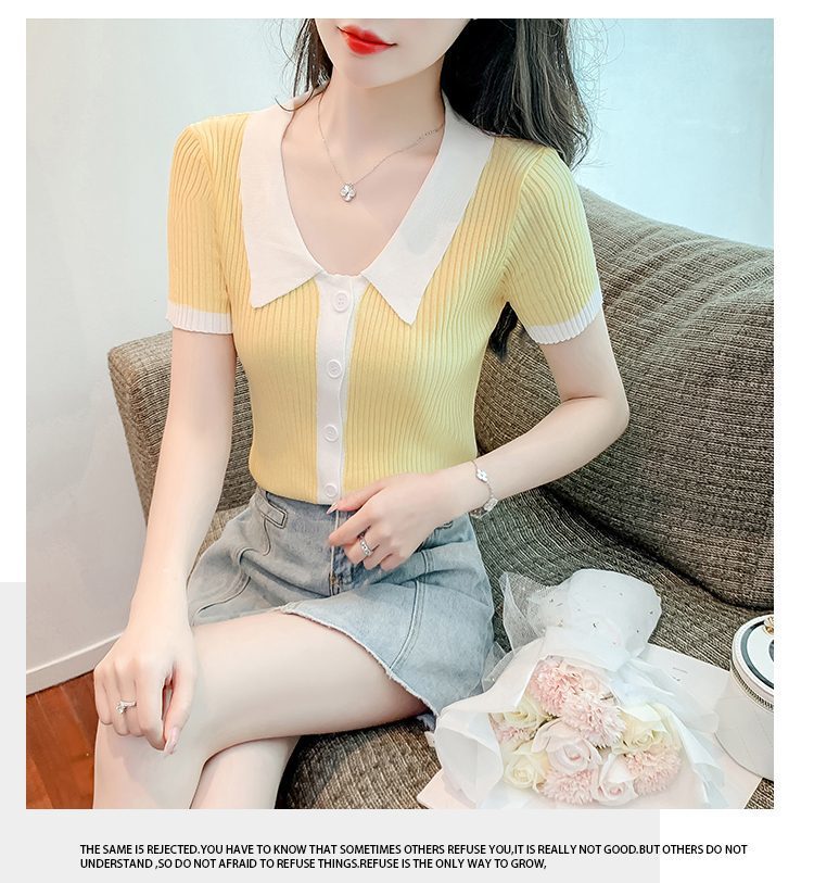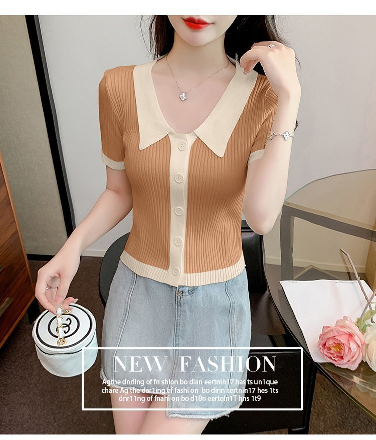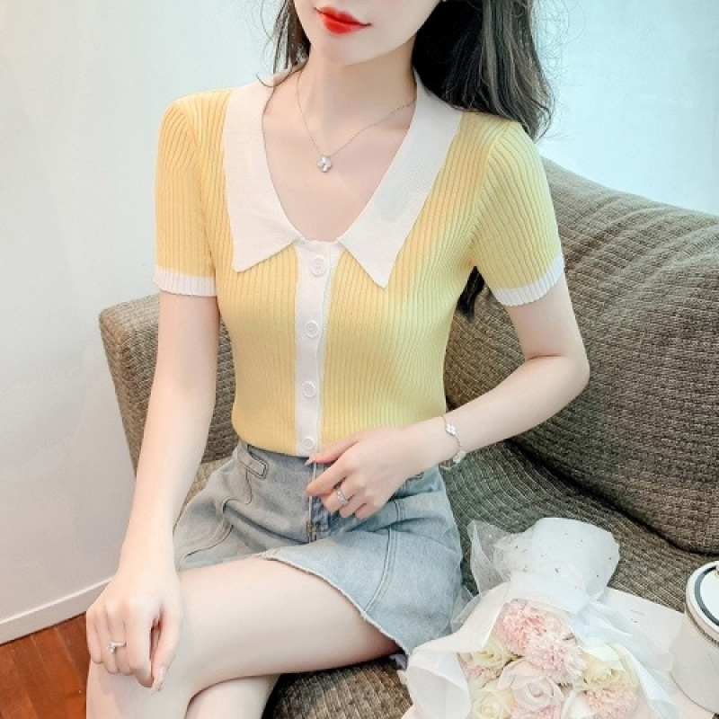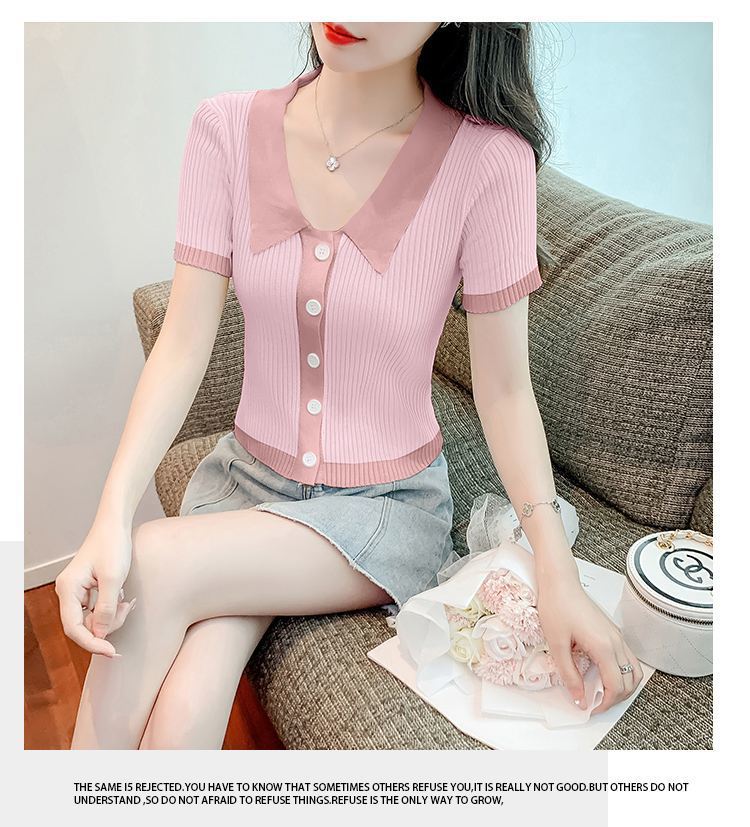 폴로 칼라 하프 슬리브 아이스 실크 스웨터 여성 여름 2025 년 새로운 짧은 소매베이스 카디건 슬림 반소매 티셔츠 탑스토어 가기