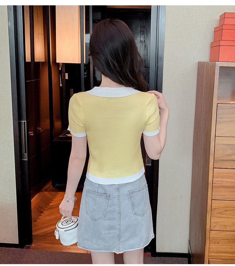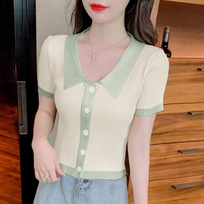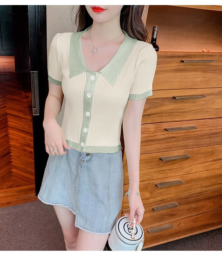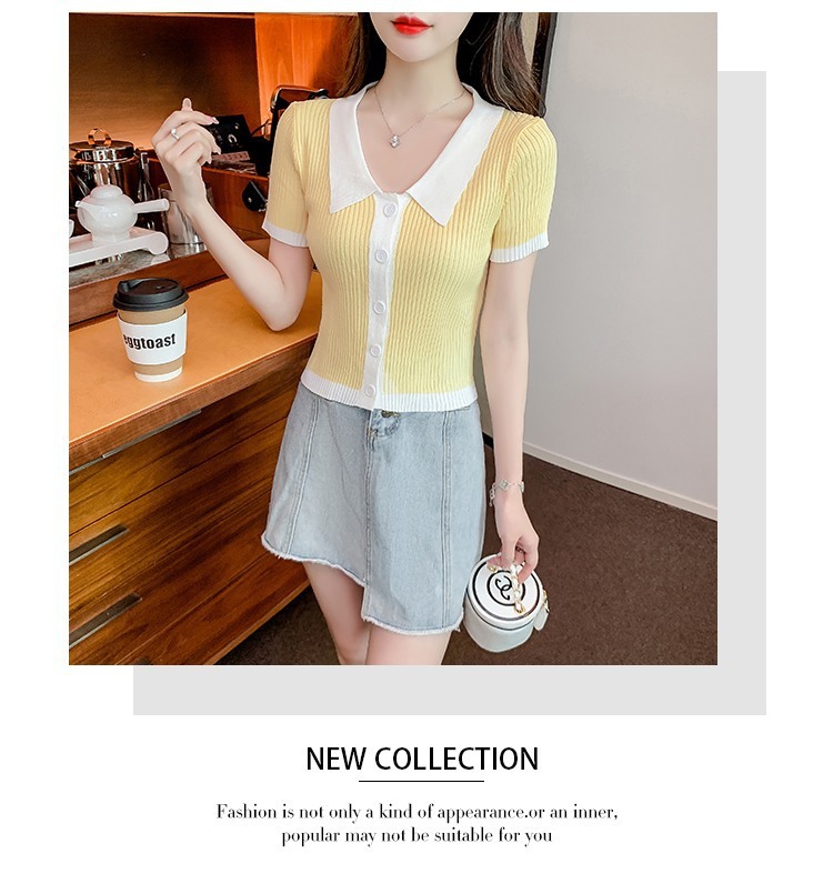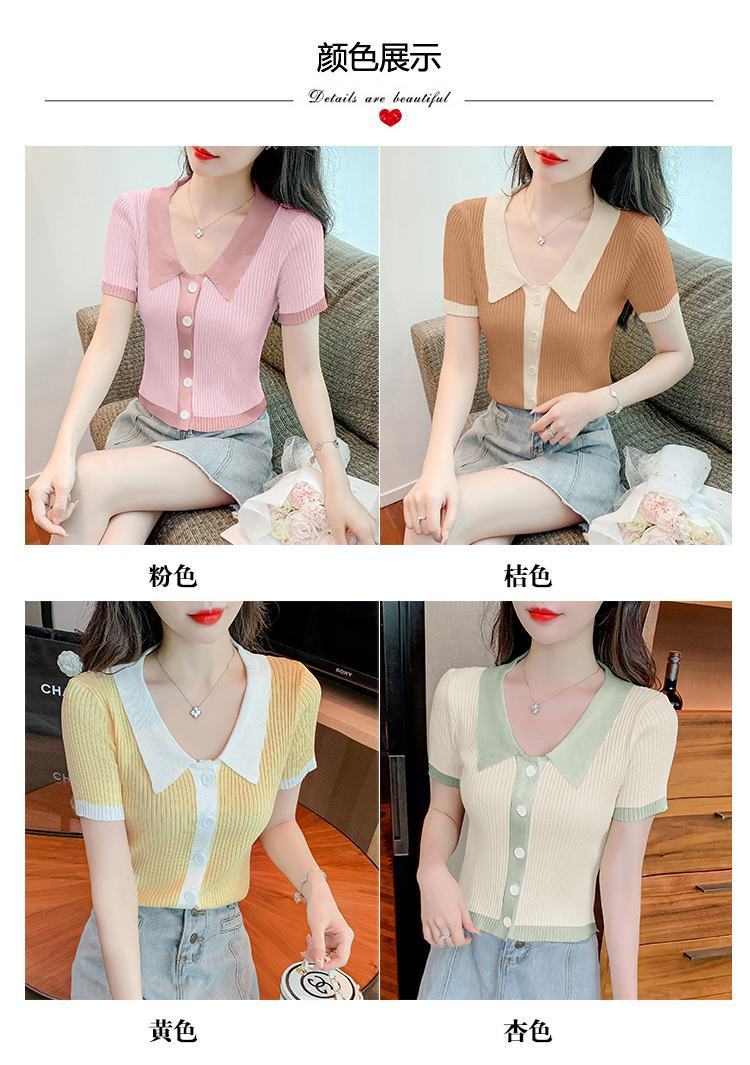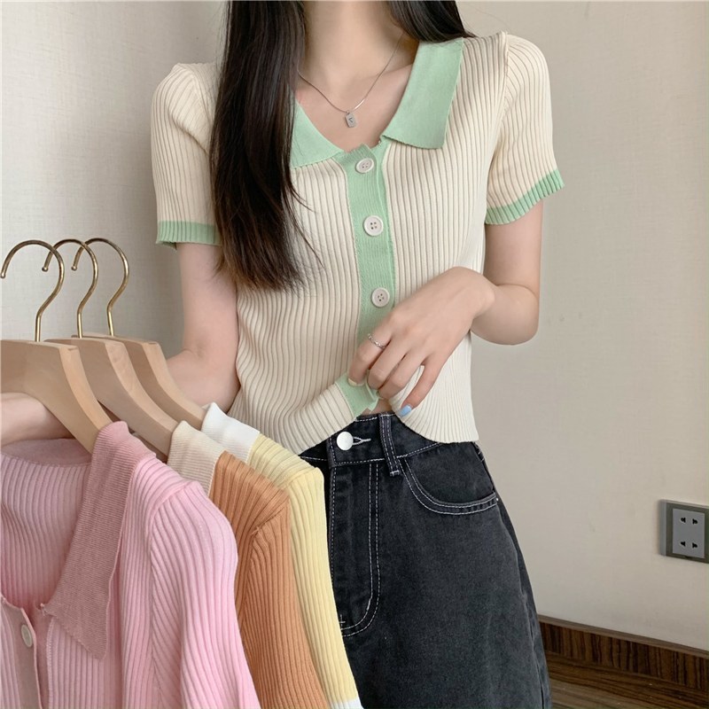 폴로 칼라 하프 슬리브 아이스 실크 스웨터 여성 여름 2025 년 새로운 짧은 소매베이스 카디건 슬림 반소매 티셔츠 탑스토어 가기