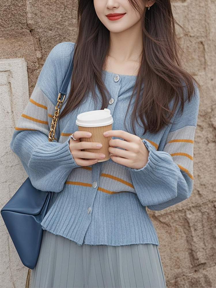 2025 봄 한국 최고 고급 유럽 스타일 독특하고 세련된 작은 군중 슈퍼 잘 생긴 블루 니트 셔츠스토어 가기