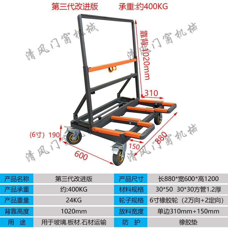 석재 유리 대형 4 륜 카트 휴대용 도어 및 창문 설치를 운반하는 새로운 유형의 개폐식 도어 및 창문 카트스토어 가기