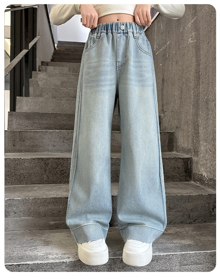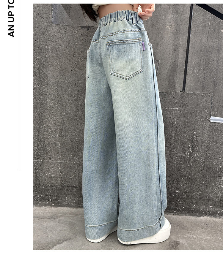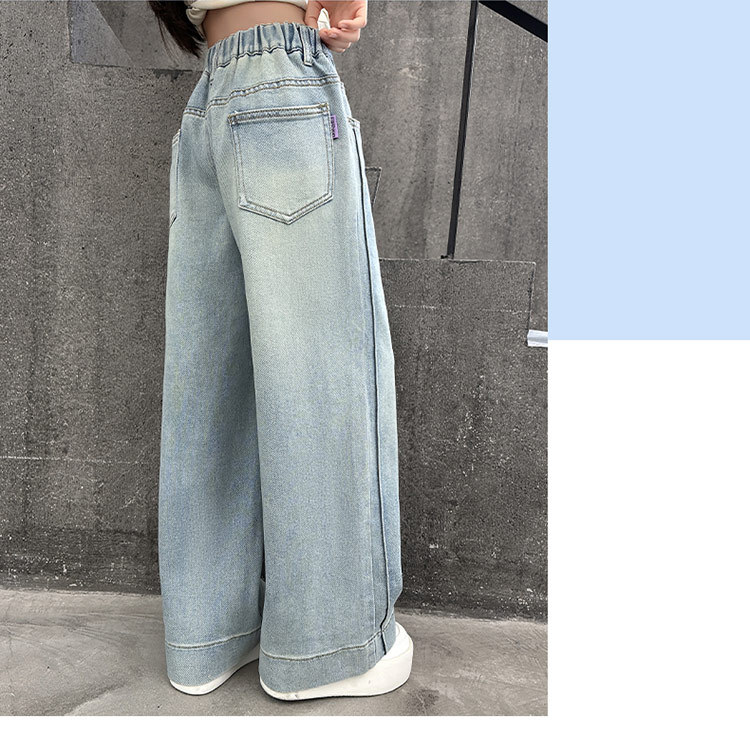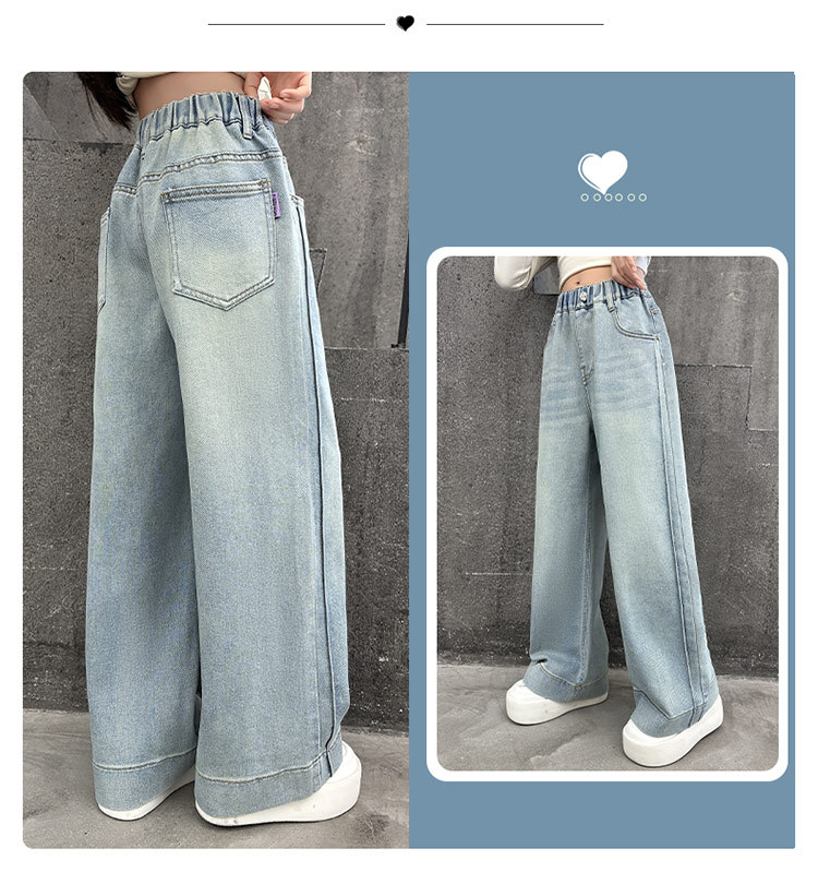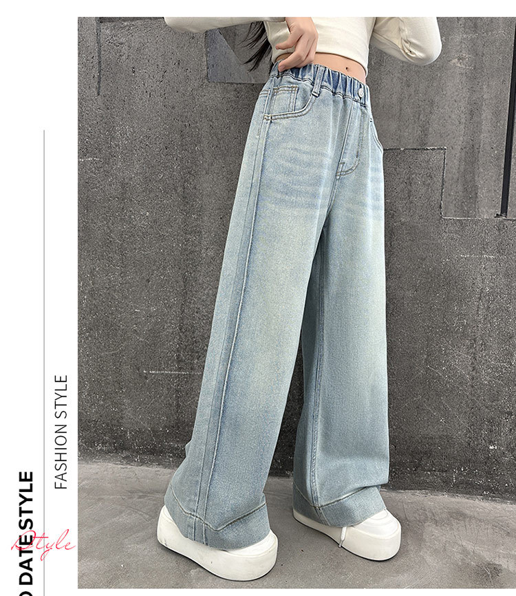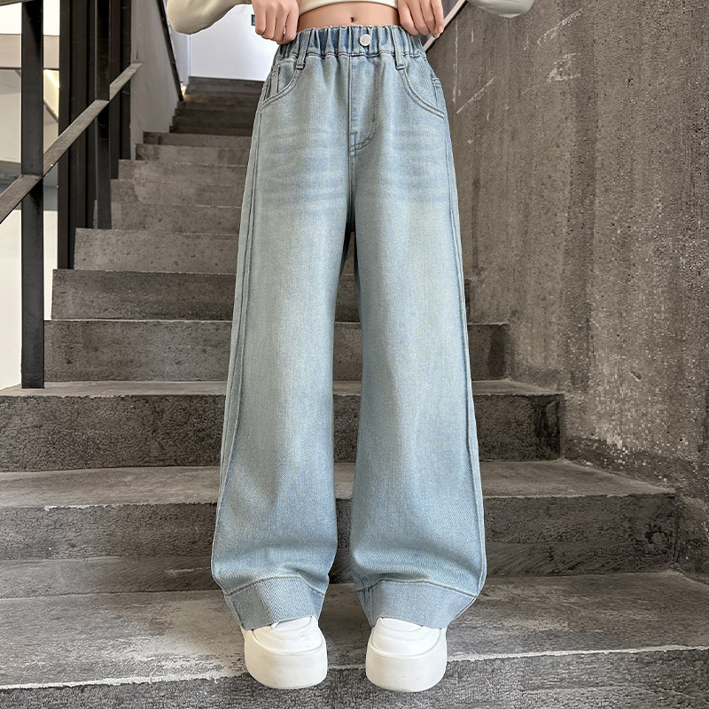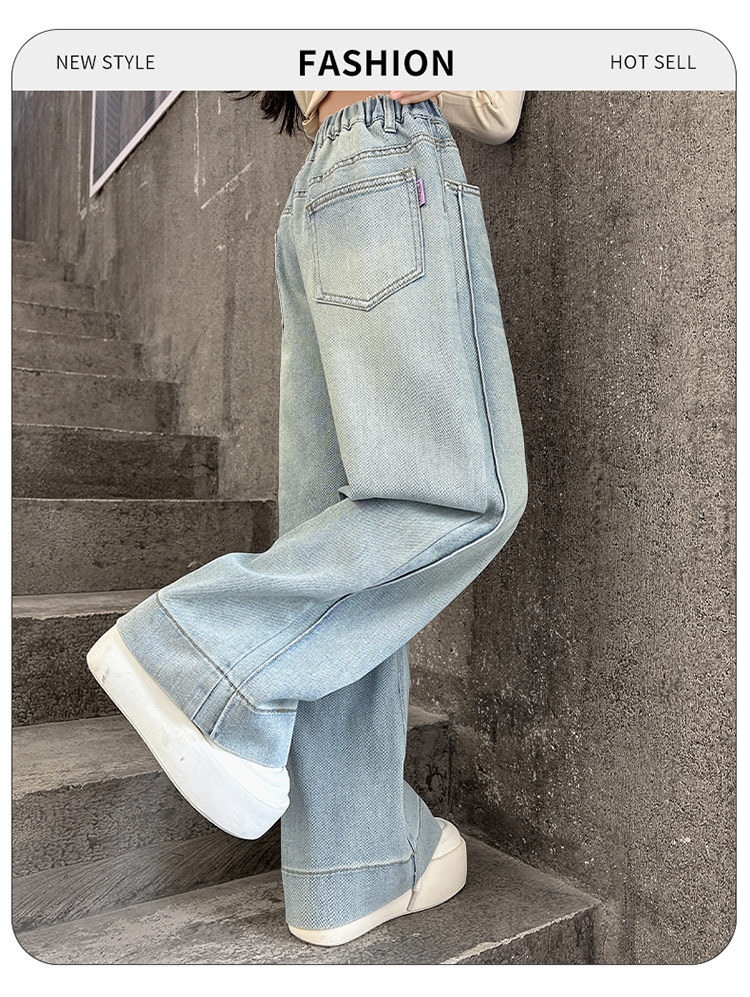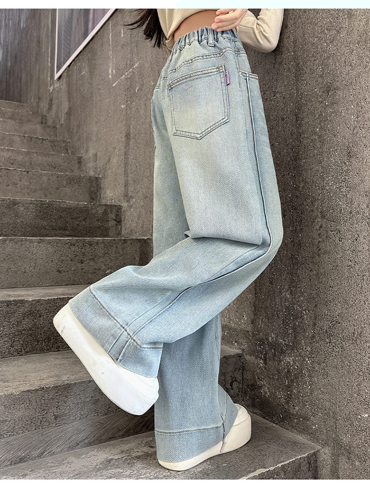 소녀 스트레이트 레그 청바지 봄과 가을 2025 새로운 봄 어린이 와이드 레그 팬츠 소녀 큰 어린이 바지 중학생스토어 가기