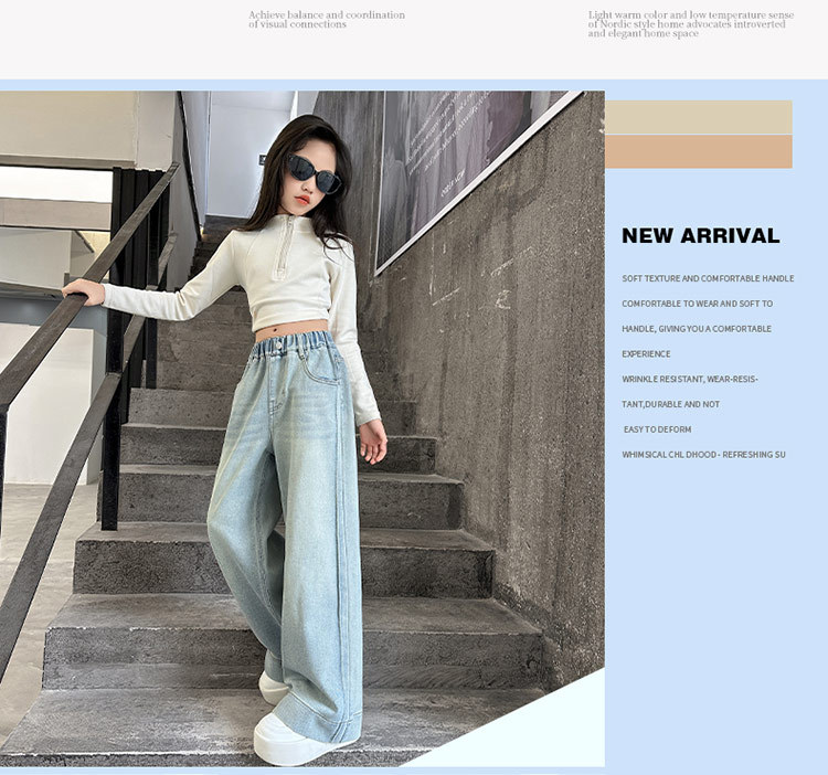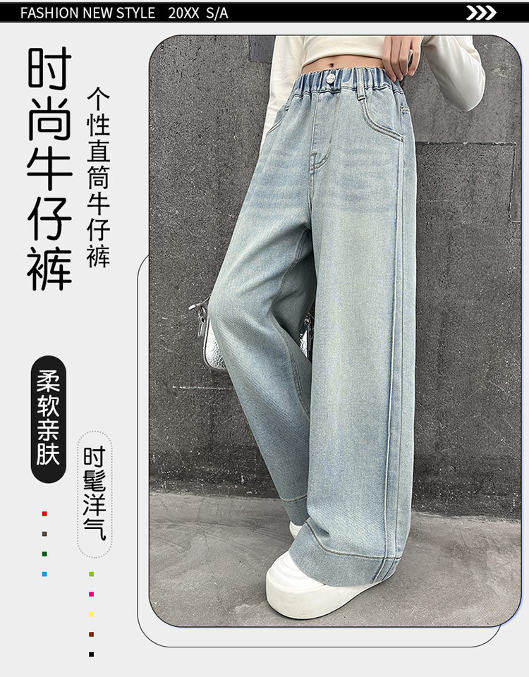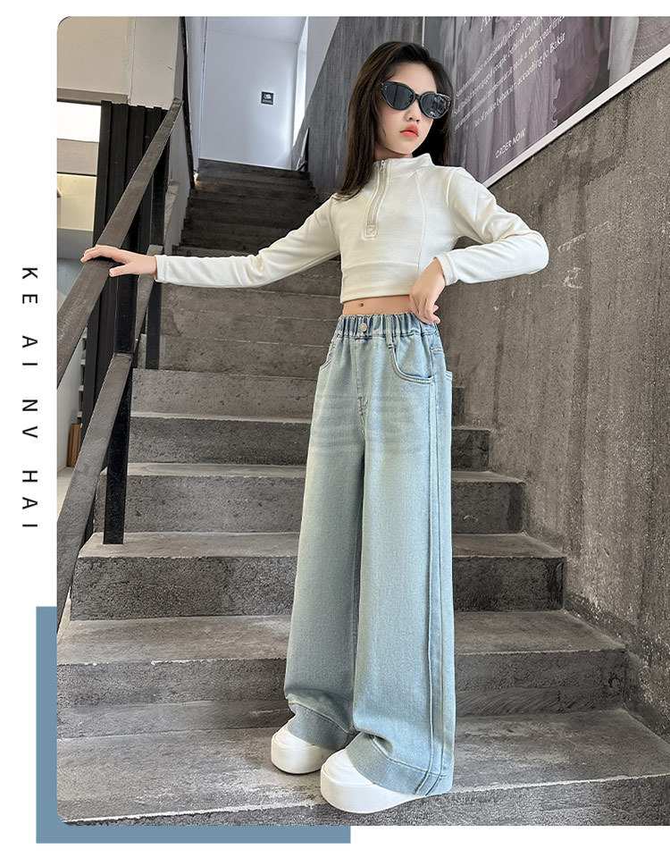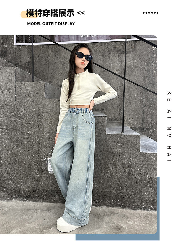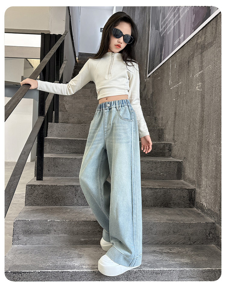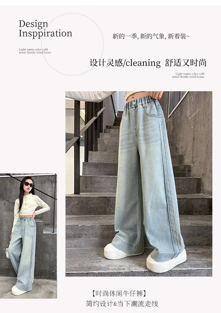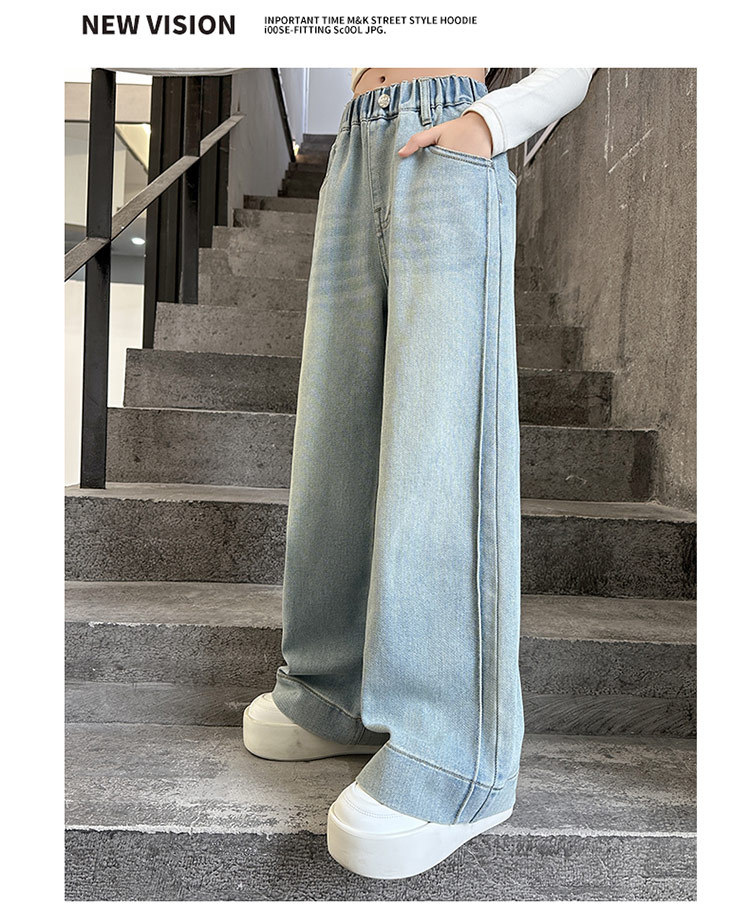 소녀 스트레이트 레그 청바지 봄과 가을 2025 새로운 봄 어린이 와이드 레그 팬츠 소녀 큰 어린이 바지 중학생스토어 가기