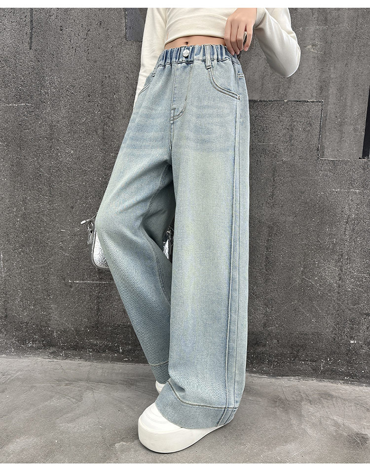 소녀 스트레이트 레그 청바지 봄과 가을 2025 새로운 봄 어린이 와이드 레그 팬츠 소녀 큰 어린이 바지 중학생