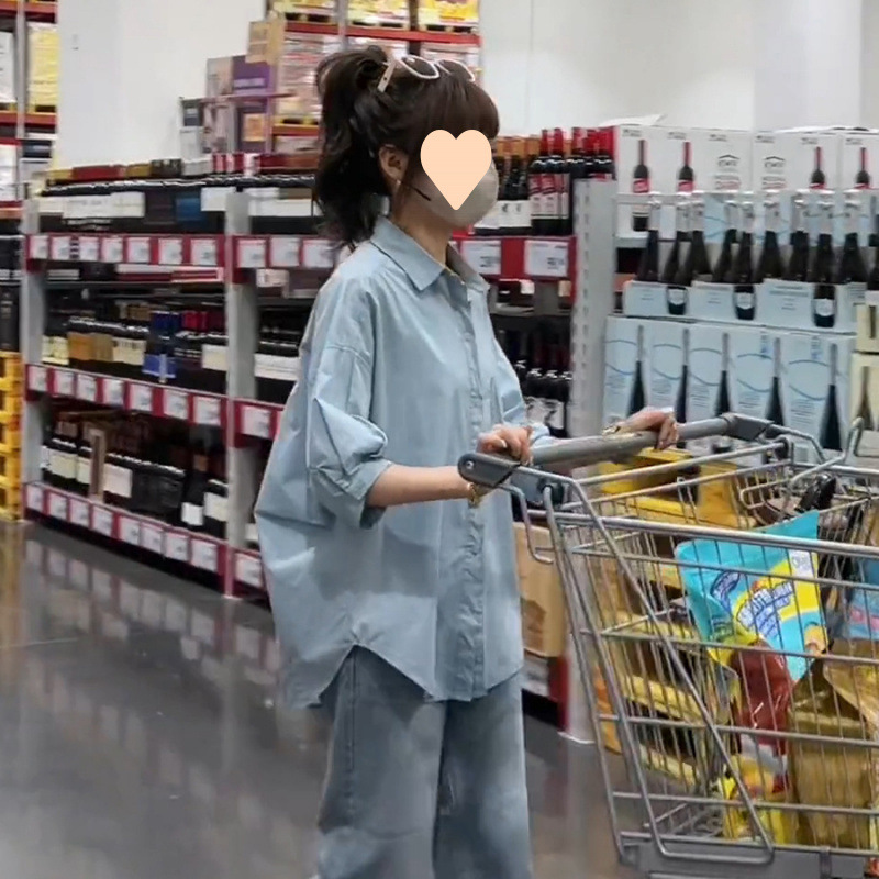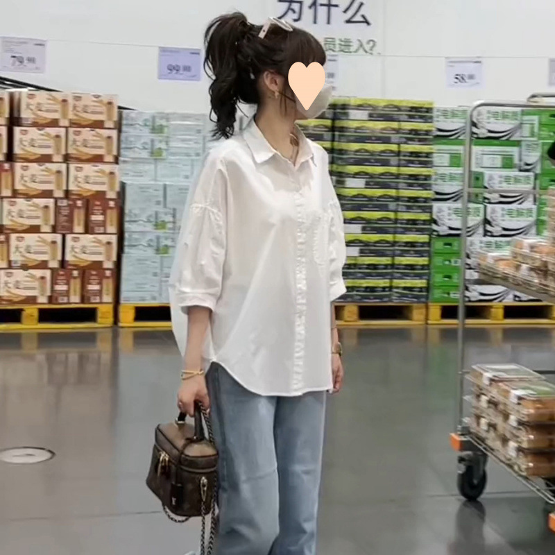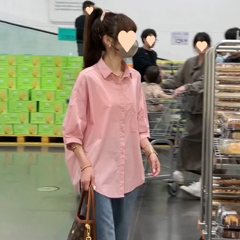 캐주얼 루즈 세븐 슬리브 셔츠 여성 탑 봄과 여름 새로운 패션 웨스턴 스타일 작은 셔츠 올 매치 미드 슬리브 셔츠스토어 가기