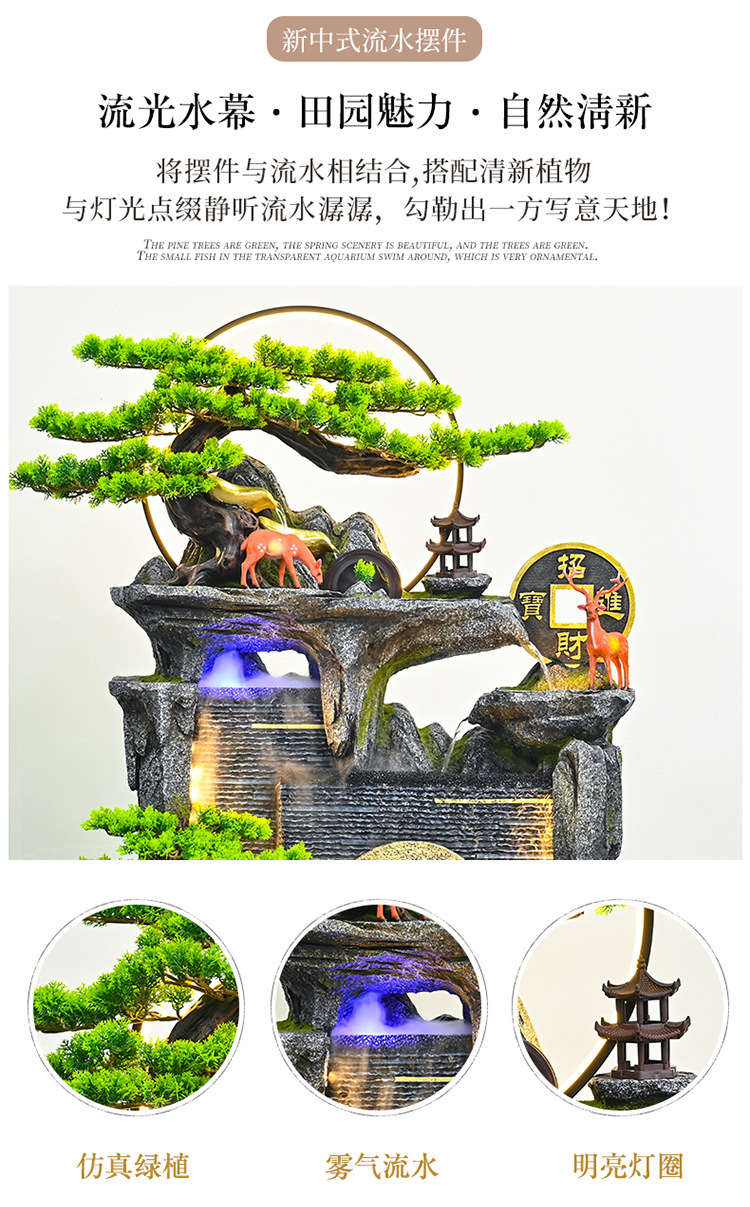 새로운 중국식 암석 흐르는 물 분수 어항 거실 사무실 실내 수경 가습기 운을 만드는 장식품 사업 오프닝 선물