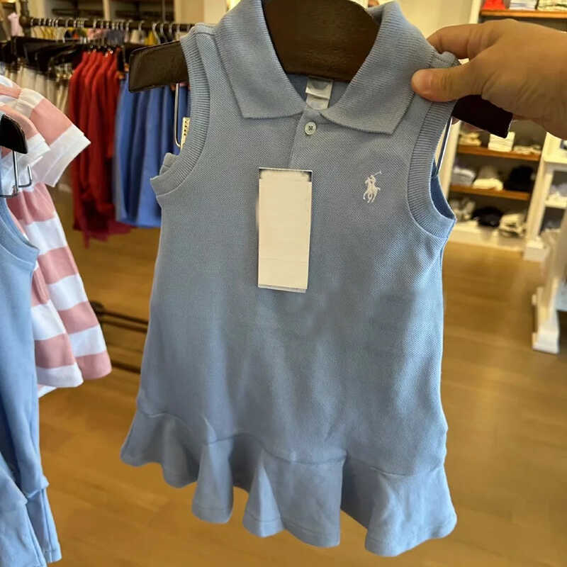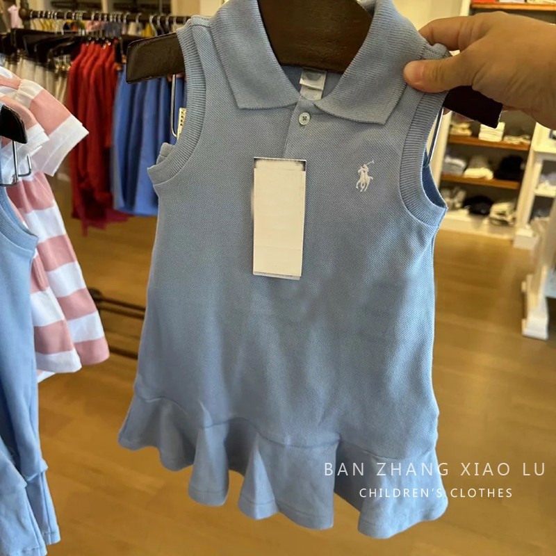라임 소녀의 여름 폴로 칼라 원피스 여름 새로운 어린이 대학 스타일 블루 옷깃 민소매 조끼 원피스스토어 가기
