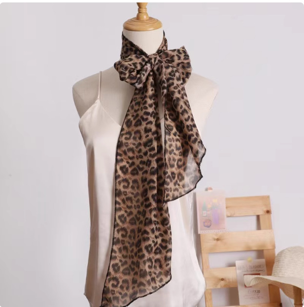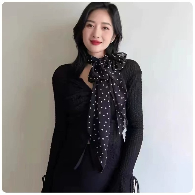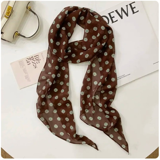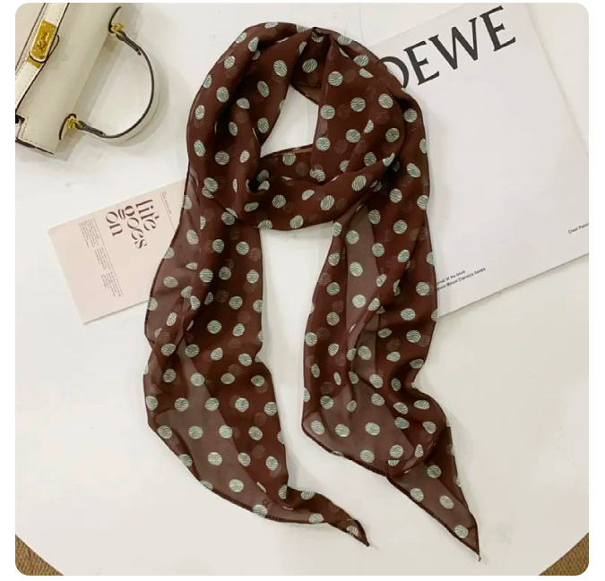다크 브라운 설문 조사 도트 실크 스카프 인쇄 고급 올 매치 액세서리 목 여성 2025 새로운 스타일 헤어 밴드 타이 롱 스카프