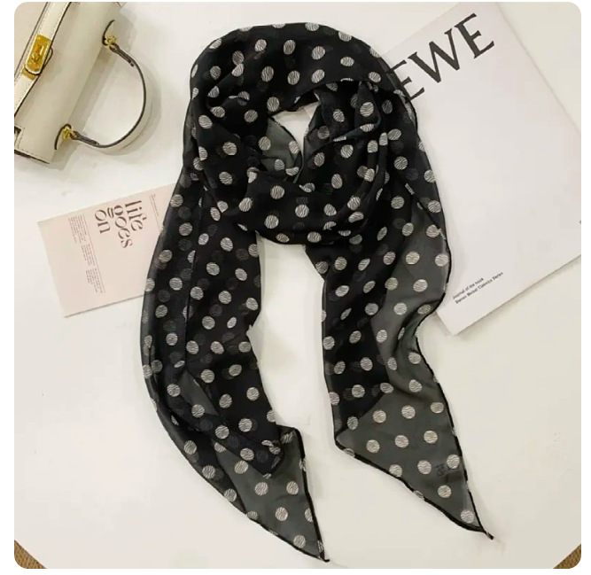 다크 브라운 설문 조사 도트 실크 스카프 인쇄 고급 올 매치 액세서리 목 여성 2025 새로운 스타일 헤어 밴드 타이 롱 스카프스토어 가기