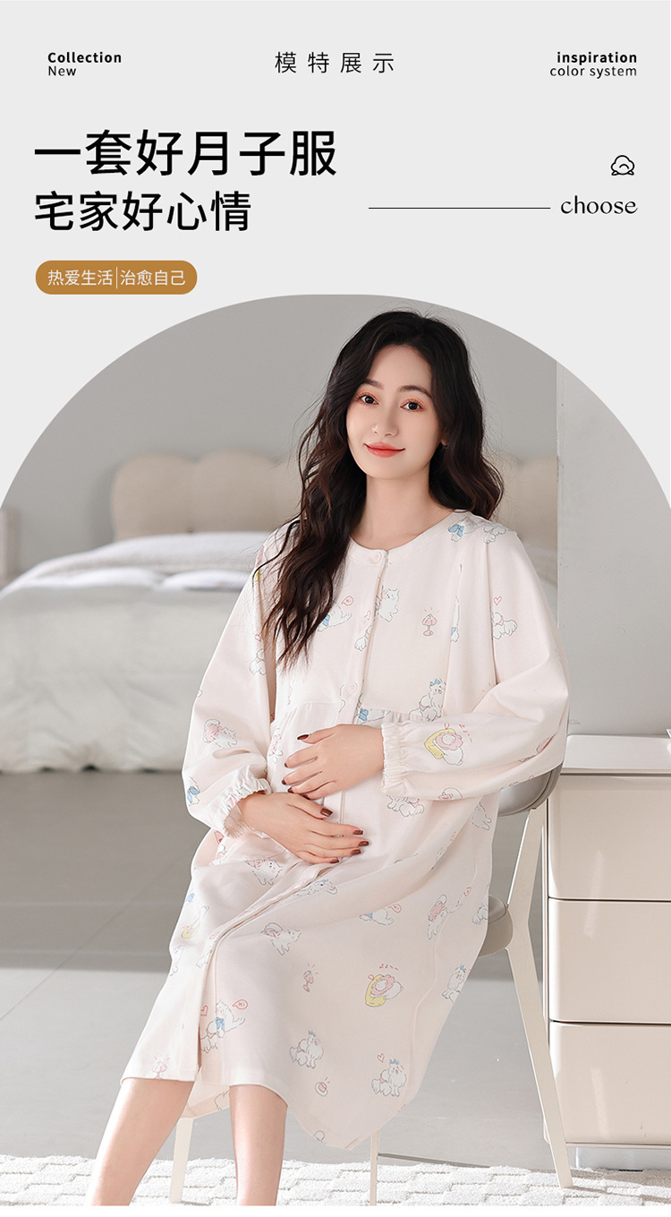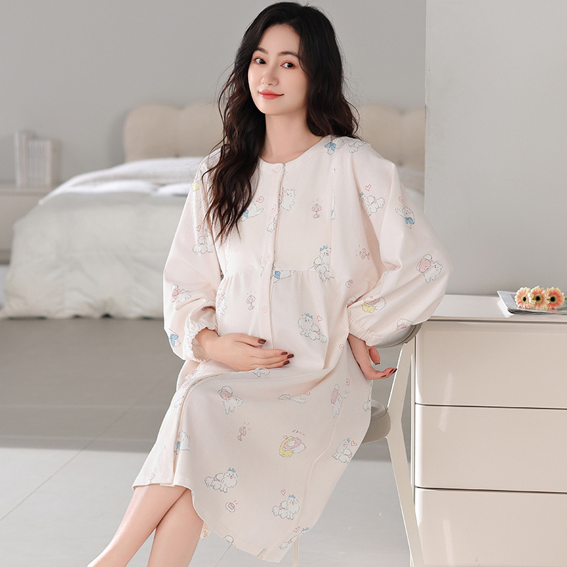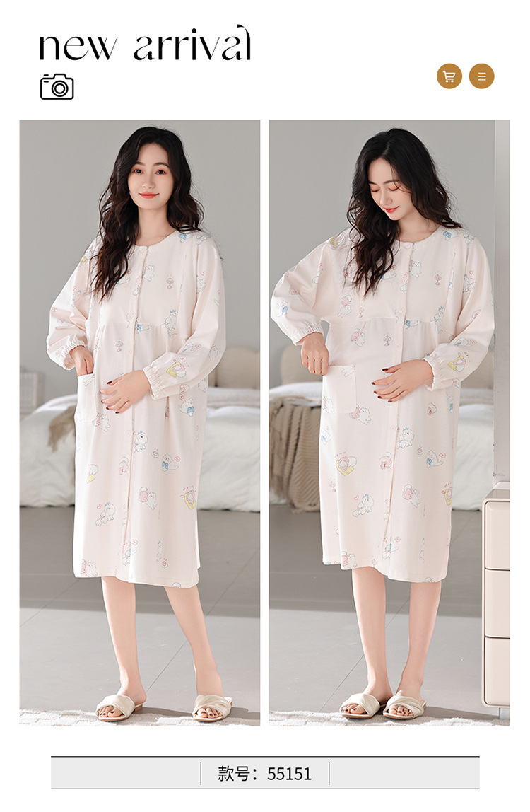 긴 소매 잠옷 순면 루나 여성의 봄과 여름 얇은 순면 임산부 산후 모유 수유 원피스 홈 옷스토어 가기