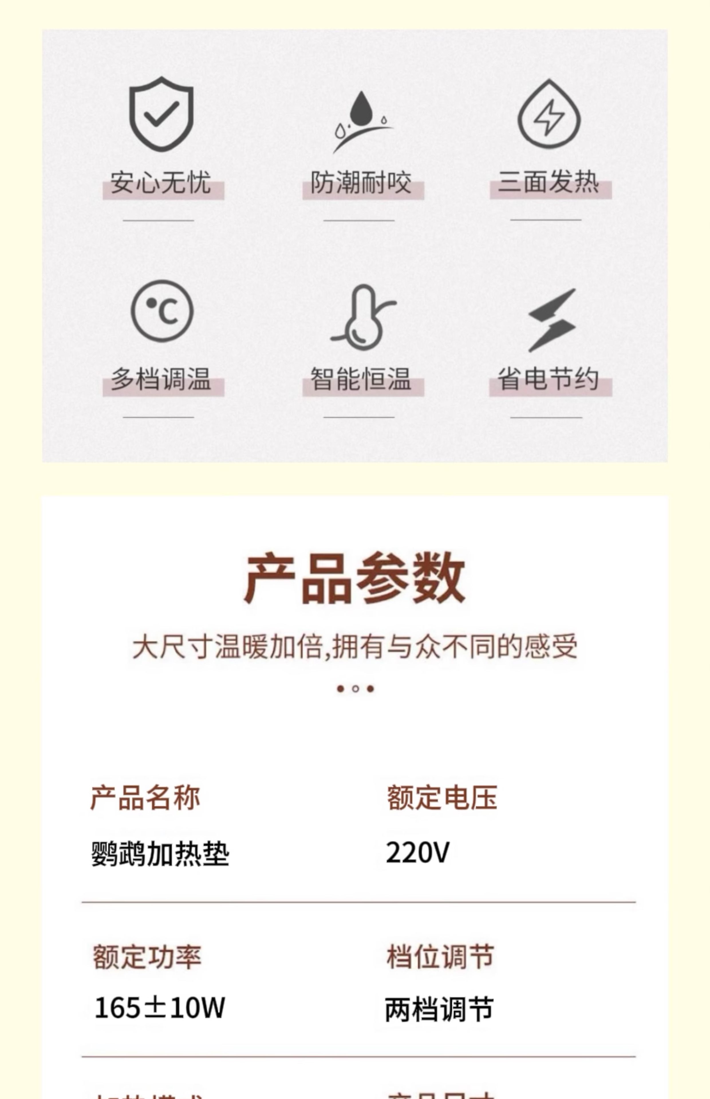 앵무새 겨울 인공물 겨울 열 보존 램프 난방 새장 겨울 일정한 온도 패드 따뜻한 전기 담요 난방 담요