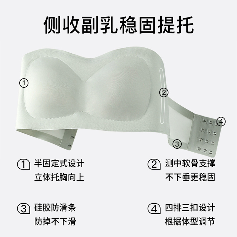 无痕冰丝防走光抹胸一片式隐形无胸垫一字围防滑无肩带打底内衣女