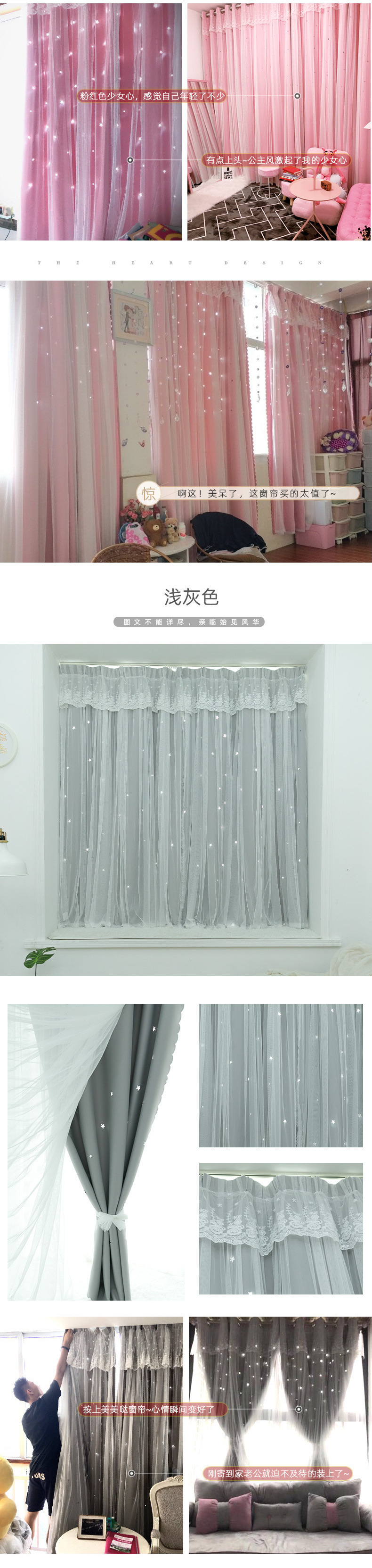 특별 온라인 연예인 완성 커튼 공주 스타일 음영 침실 빈 스타 플로팅 커튼 펀치 무료 설치