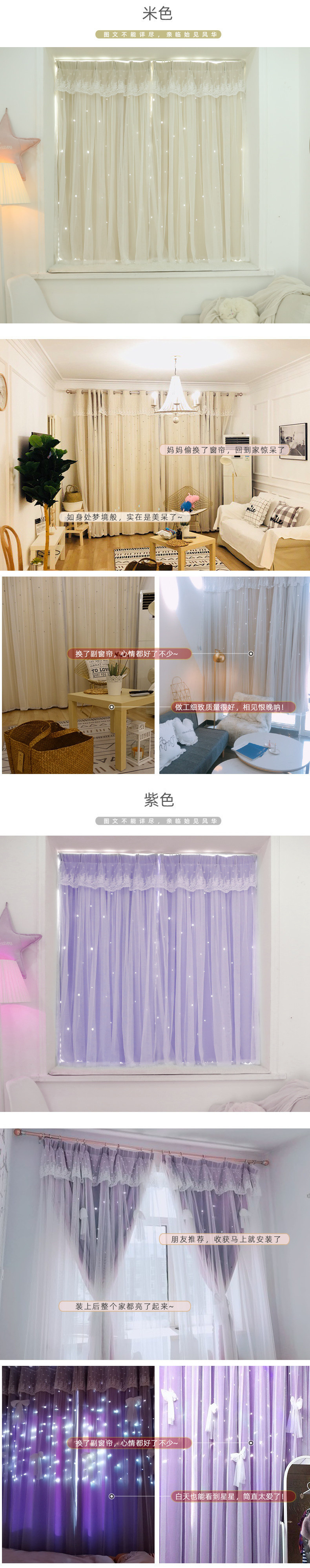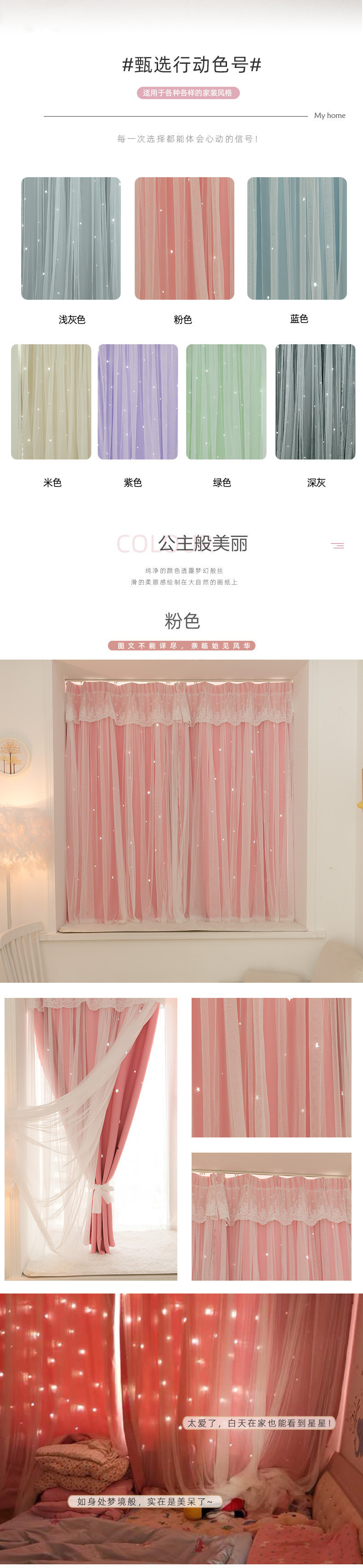 특별 온라인 연예인 완성 커튼 공주 스타일 음영 침실 빈 스타 플로팅 커튼 펀치 무료 설치스토어 가기