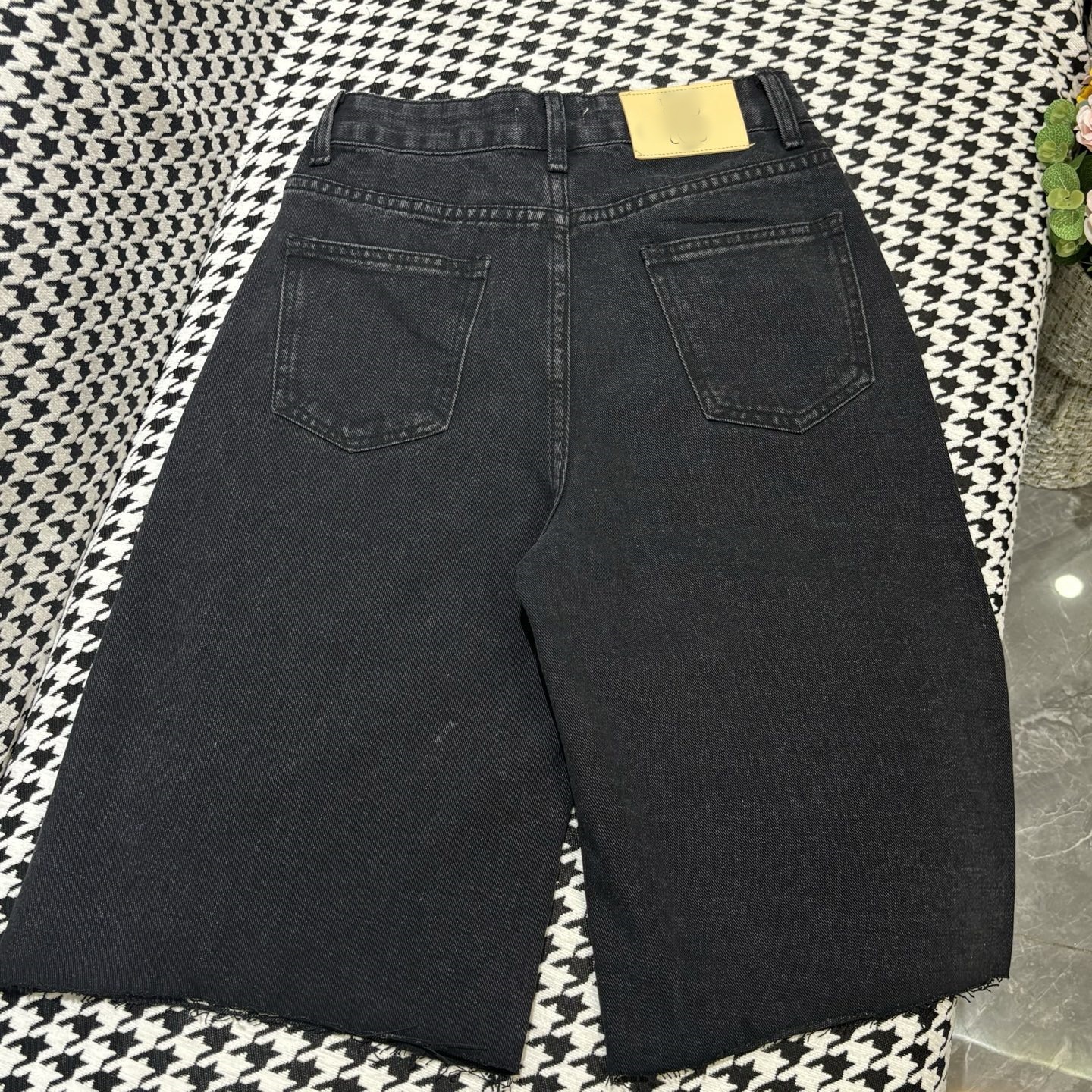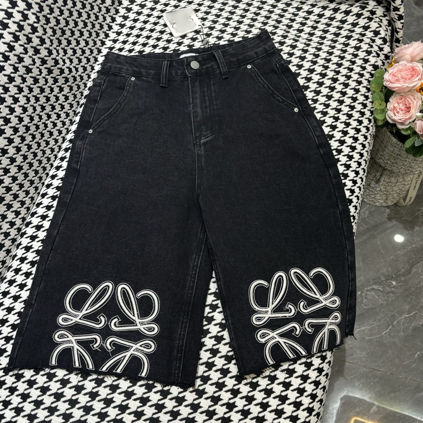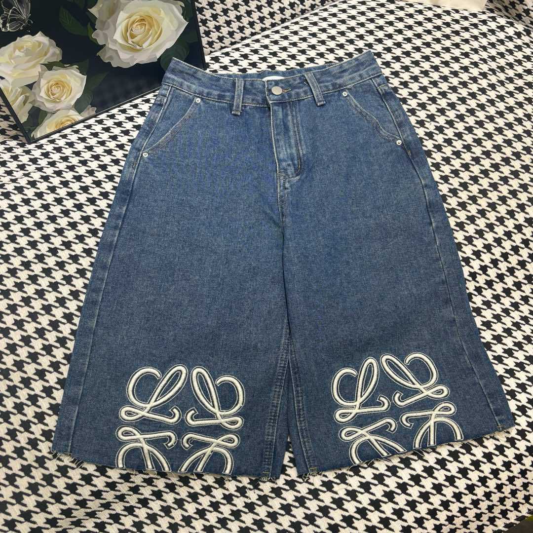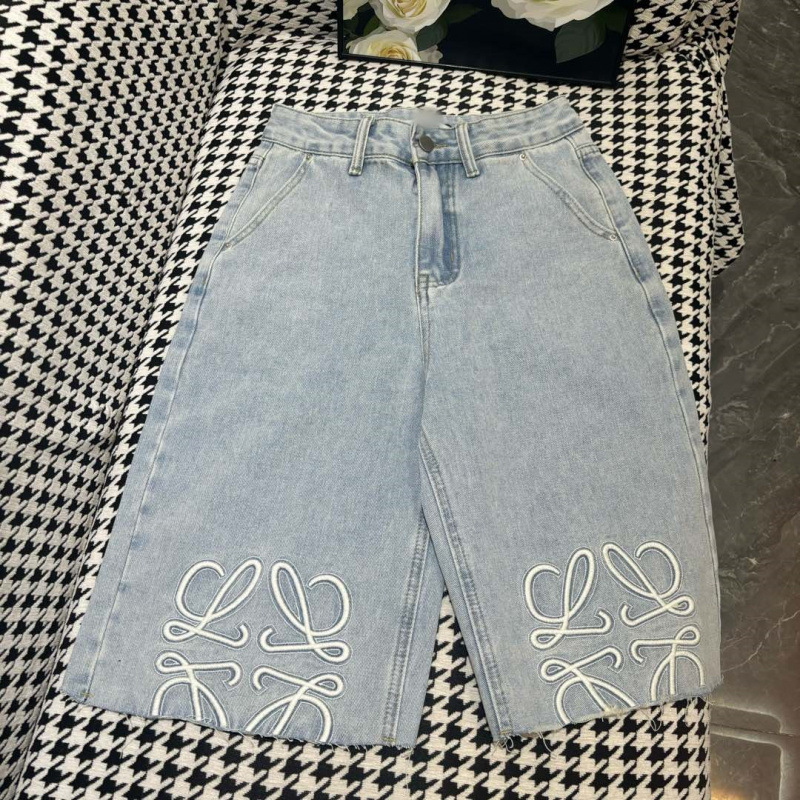 25 봄 신작 로고 자수 로우 엣지 하이 웨이스트 슬림 데님 5부 팬츠 여성용 반바지스토어 가기