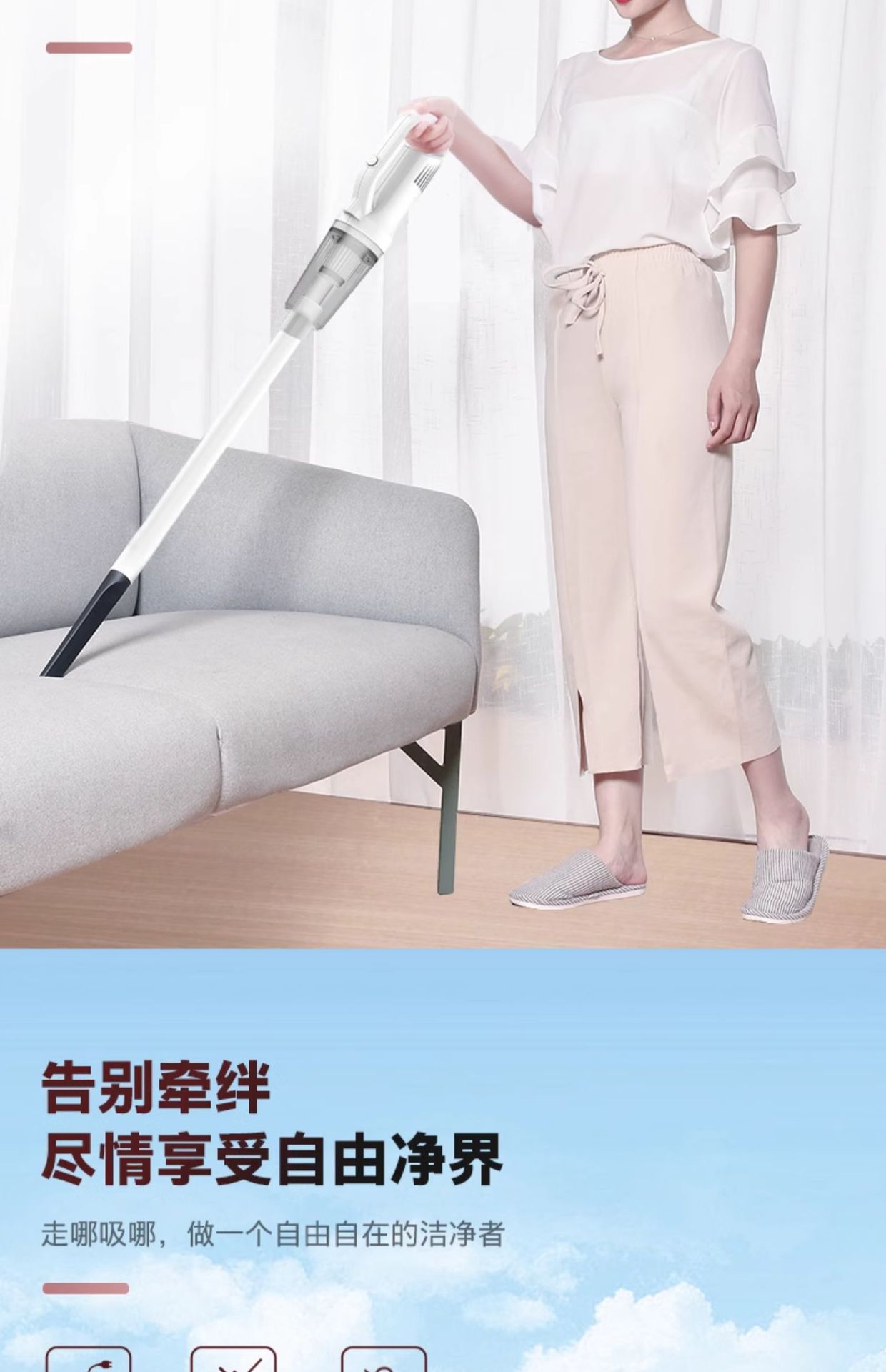• 흰색 무선 고흡입 7.4V [가정 및 차량용 겸용 + 전동 롤러 브러시 + 조명]