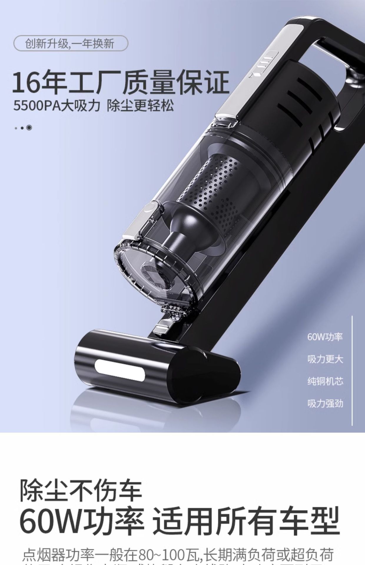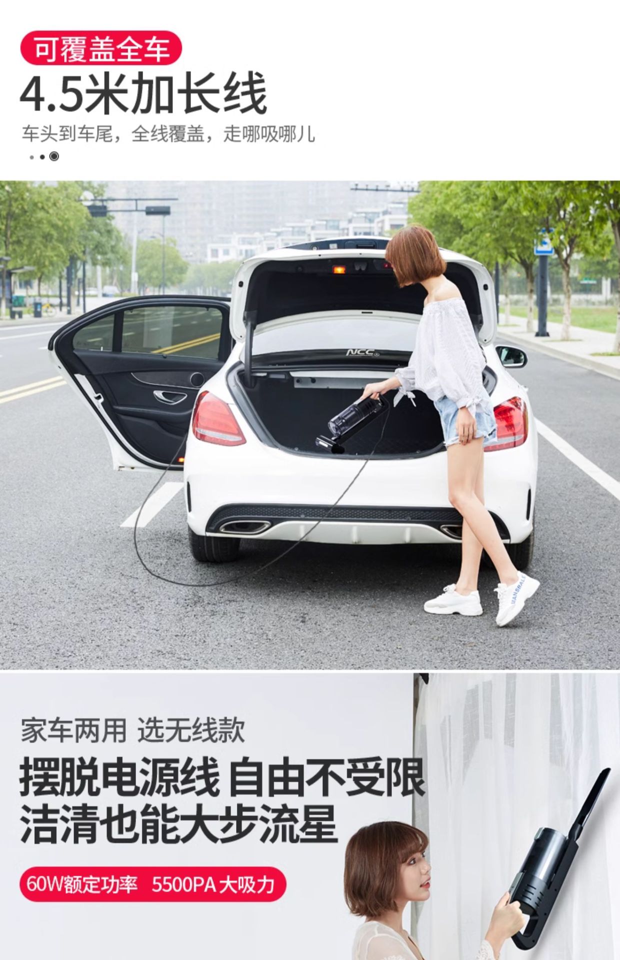 • 대형 흡입력 12V의 검정색 유선 모델 [차량용 + 전동 롤러 브러시 + 조명]
