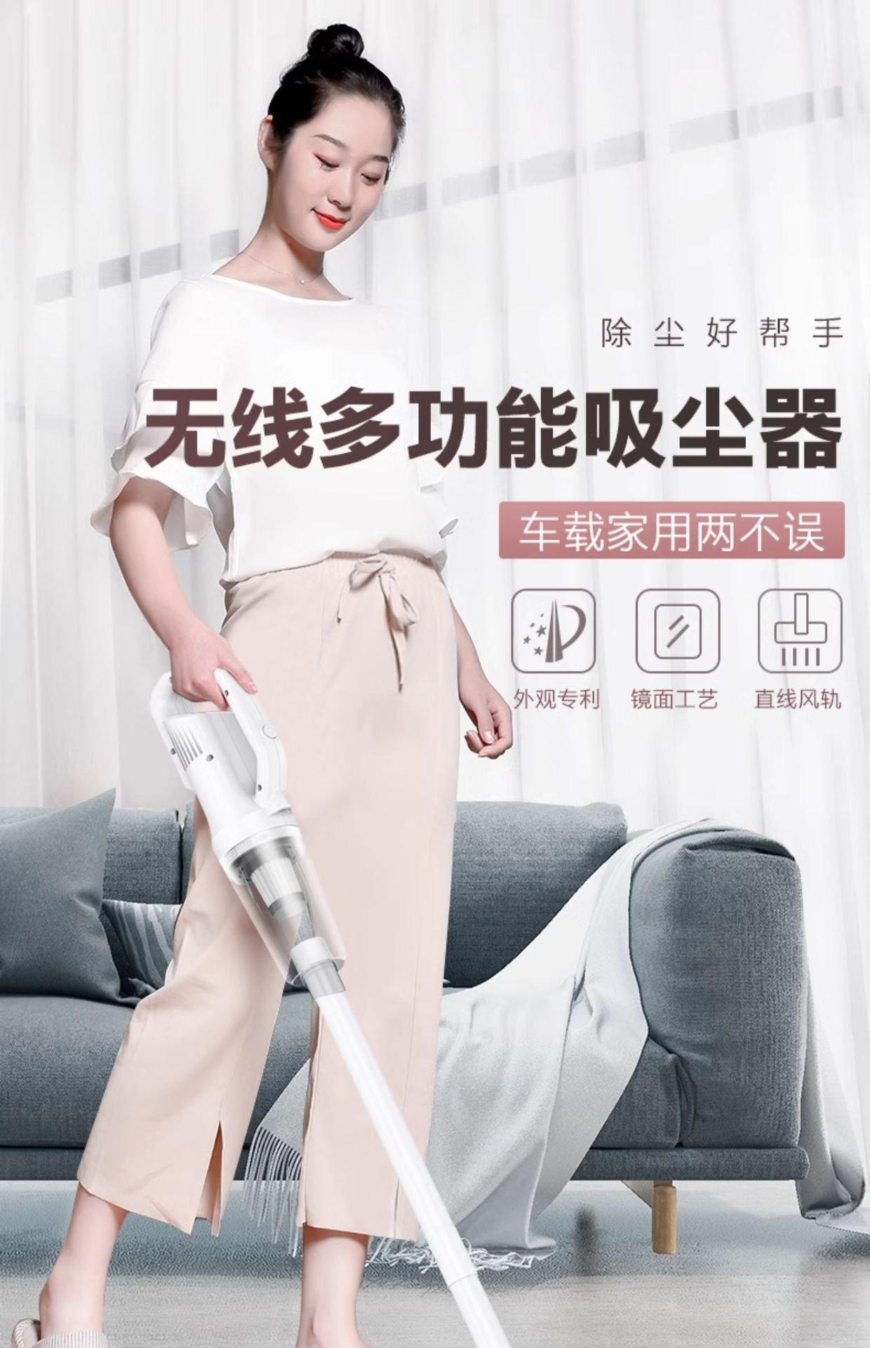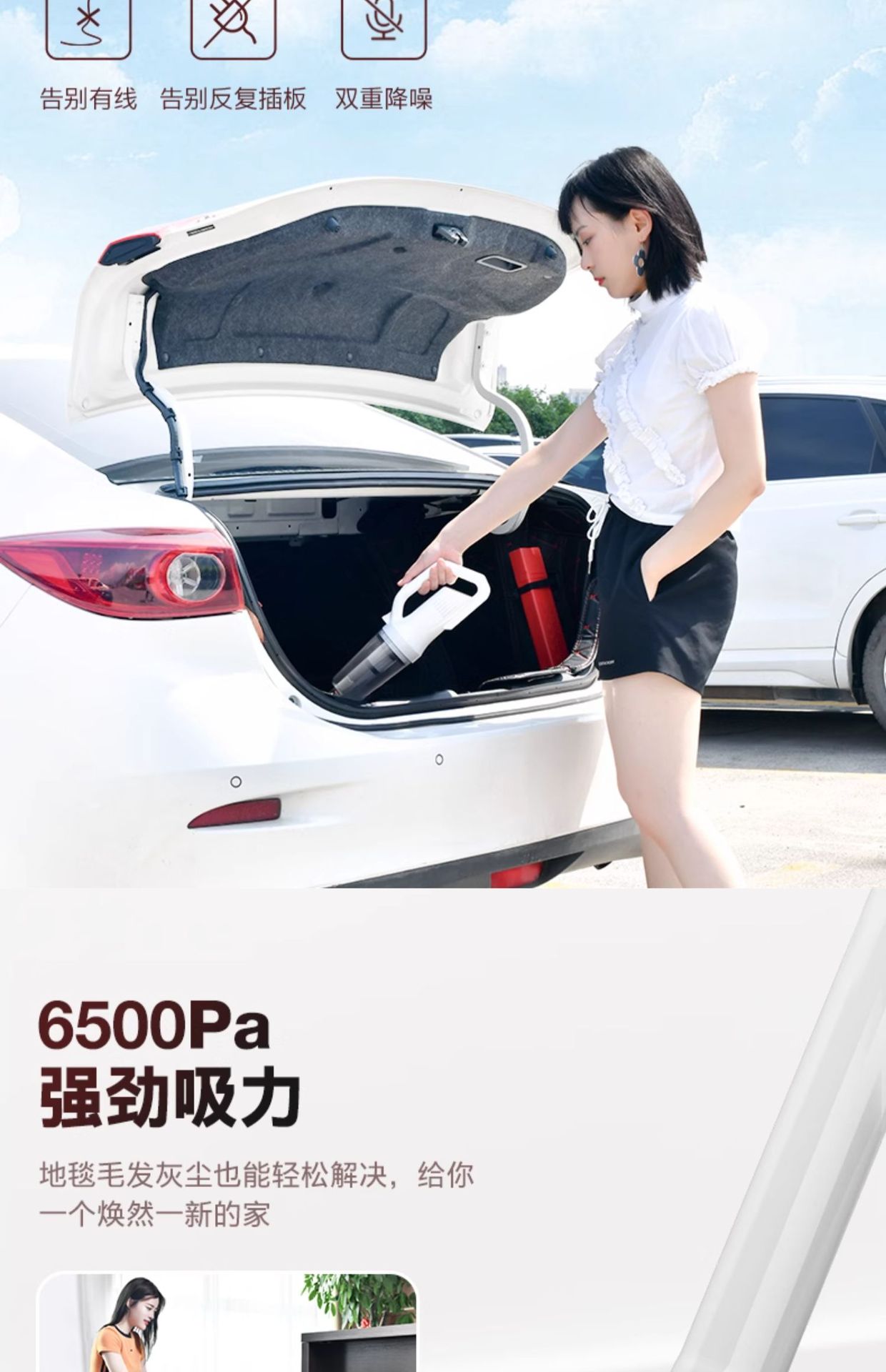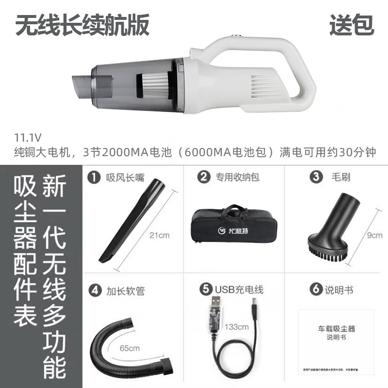 • 흰색 무선 고흡입 7.4V [가정 및 차량용 겸용 + 전동 롤러 브러시 + 보관 가방]