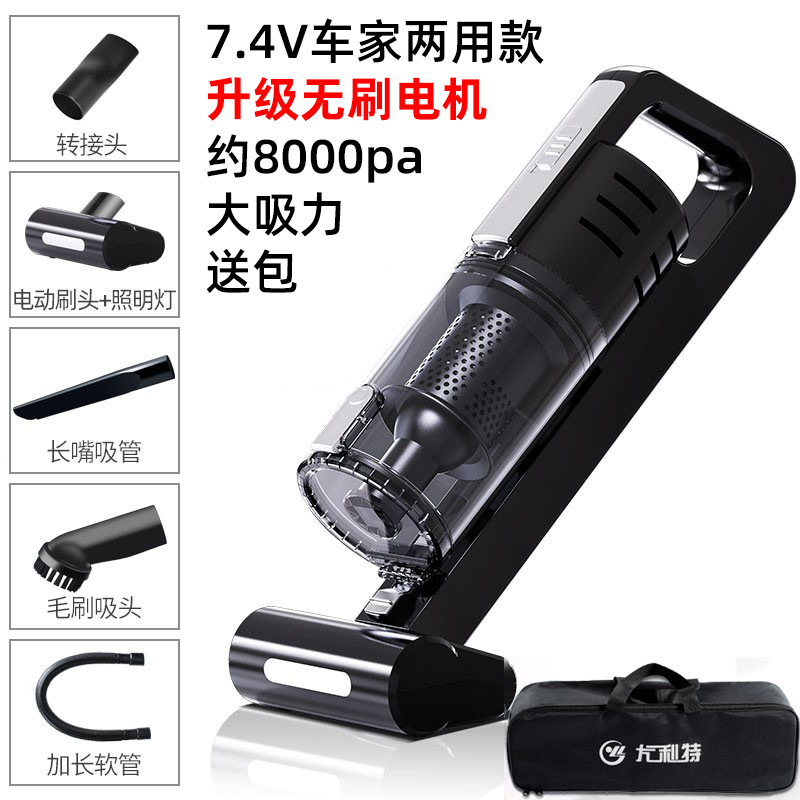 • 블랙 무선 고흡입력 7.4V [가정 및 차량용 겸용 + 전동 롤러 브러시 + 수납 가방]