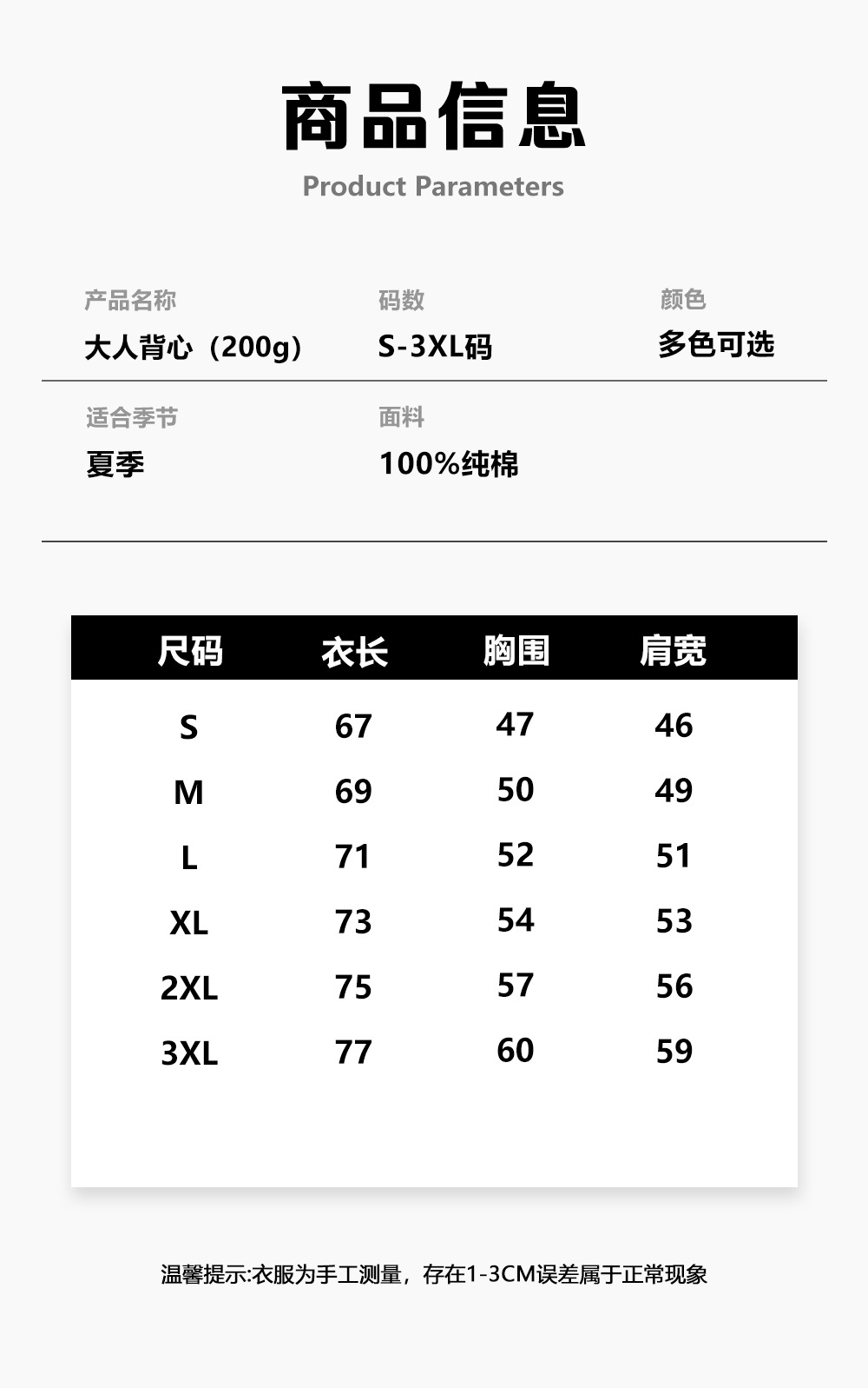 200g 순면 조명 버전 성인 조끼 남성과 여성의 3 면 스레드 커프스 민소매 단색 티셔츠 재고 도매스토어 가기