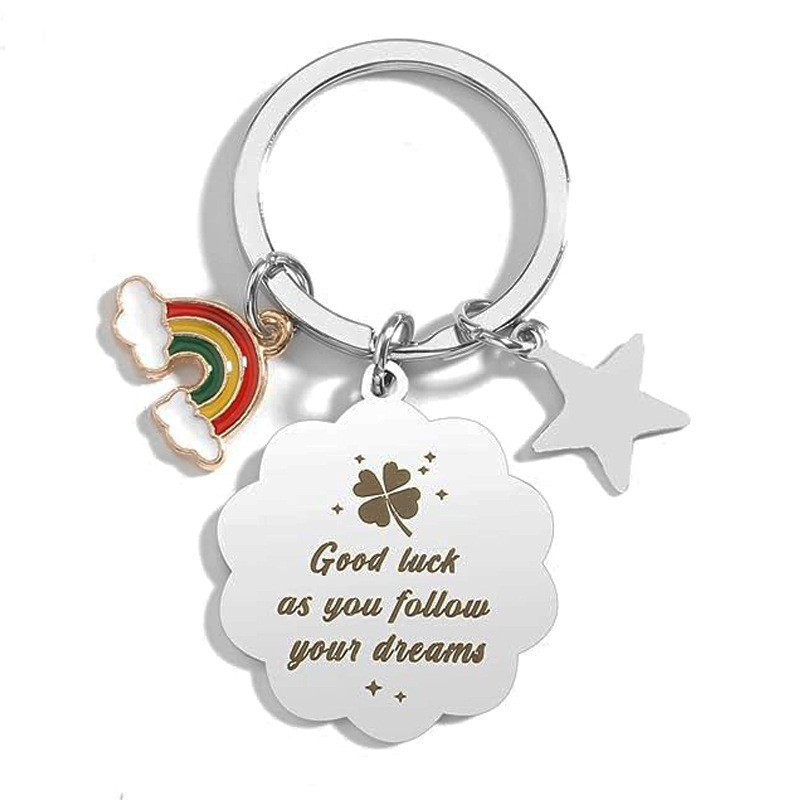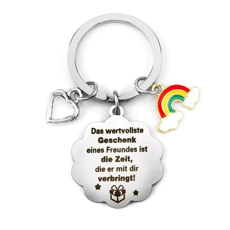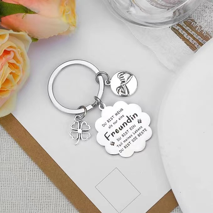 국경 간 아마존 가족 친구 추수 감사절 선물 스테인레스 스틸 키 체인 4 잎 클로버 레인보우 럭키 독일