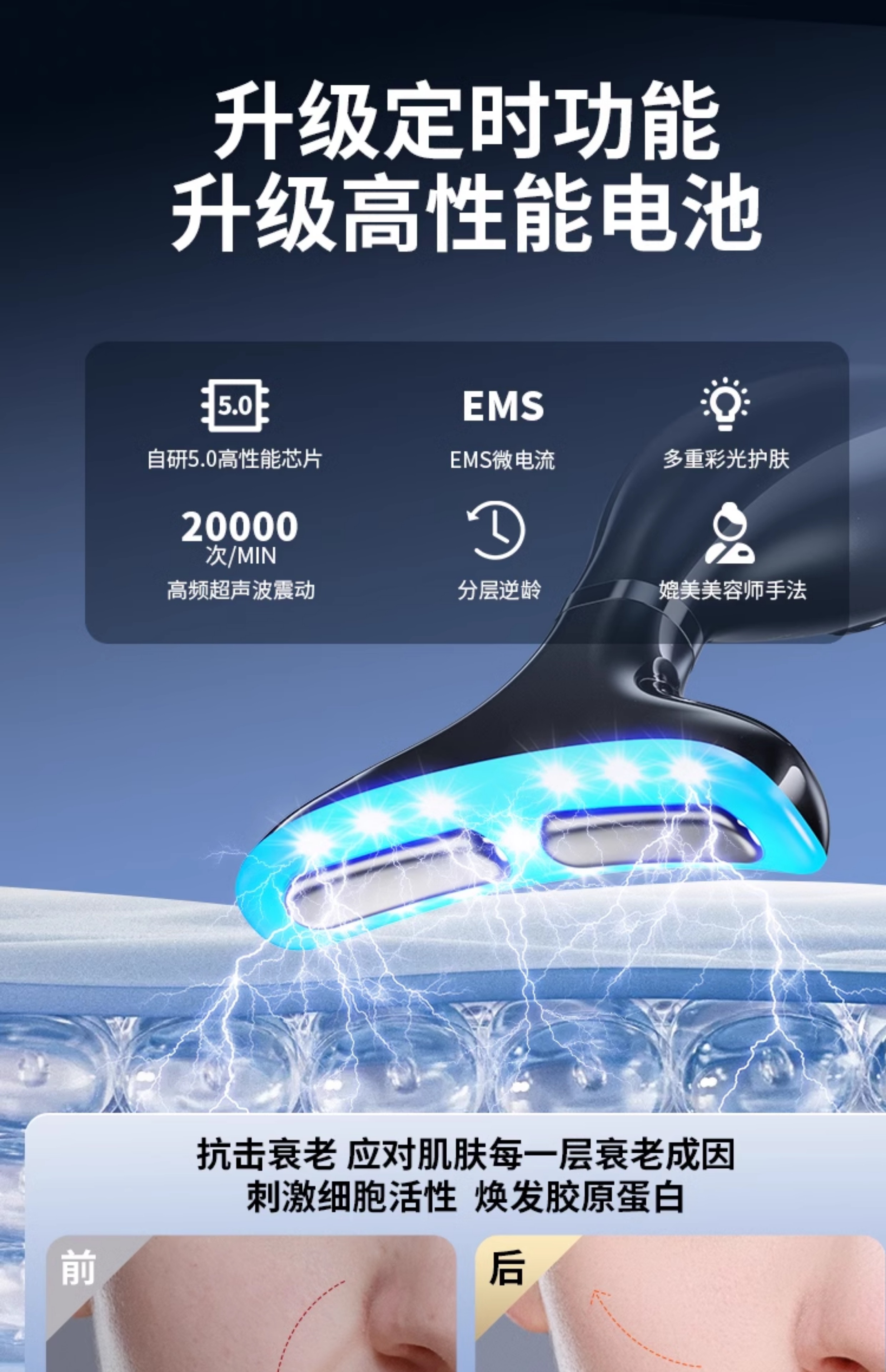 • 플래그십 블랙 + EMS 리프팅 및 퍼밍 + 진동 내보내기 + 가열 도입 + 다채로운 빛 피부 회춘