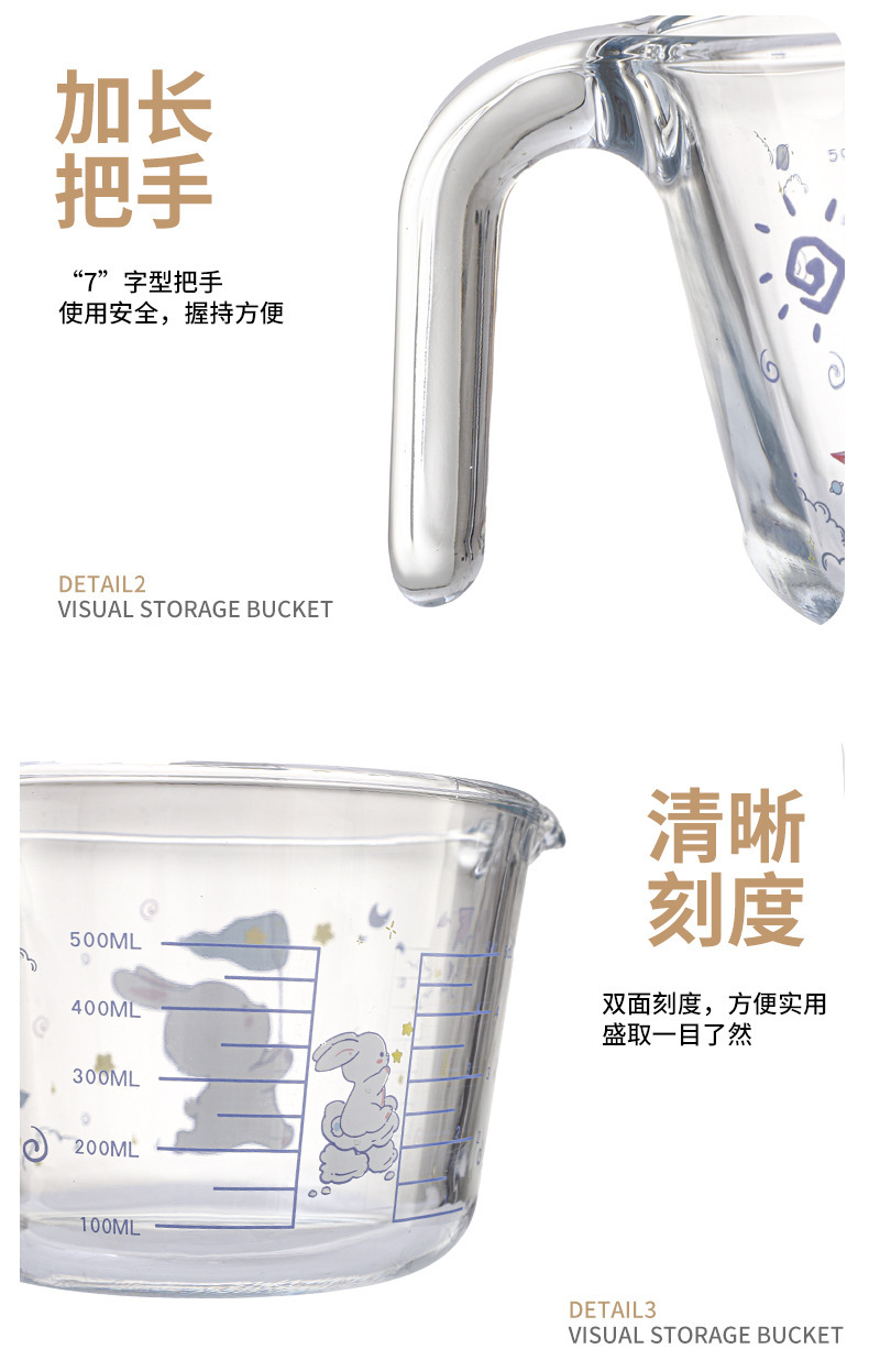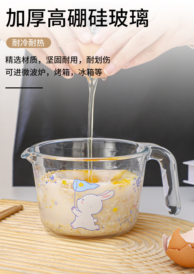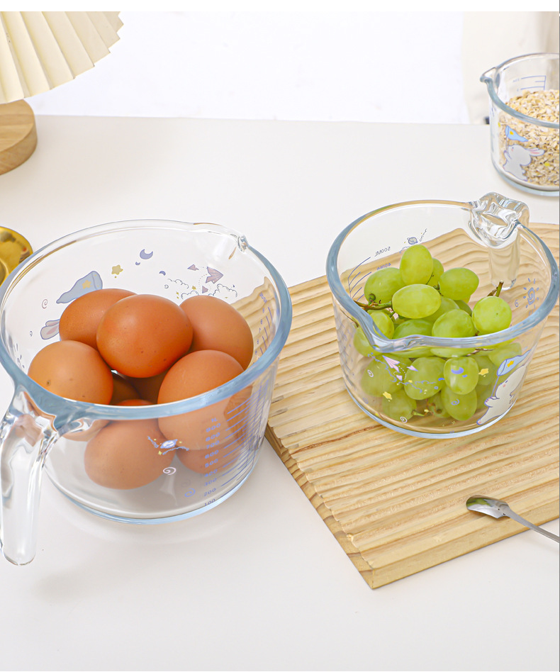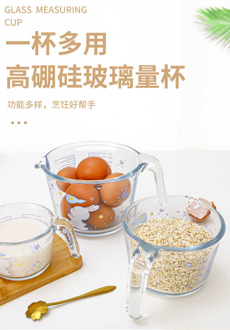 새로운 투명 유리 측정 컵 제품 가정용 대용량 두꺼운 고온 스케일 베이킹 컵 측정 숟가락 도매