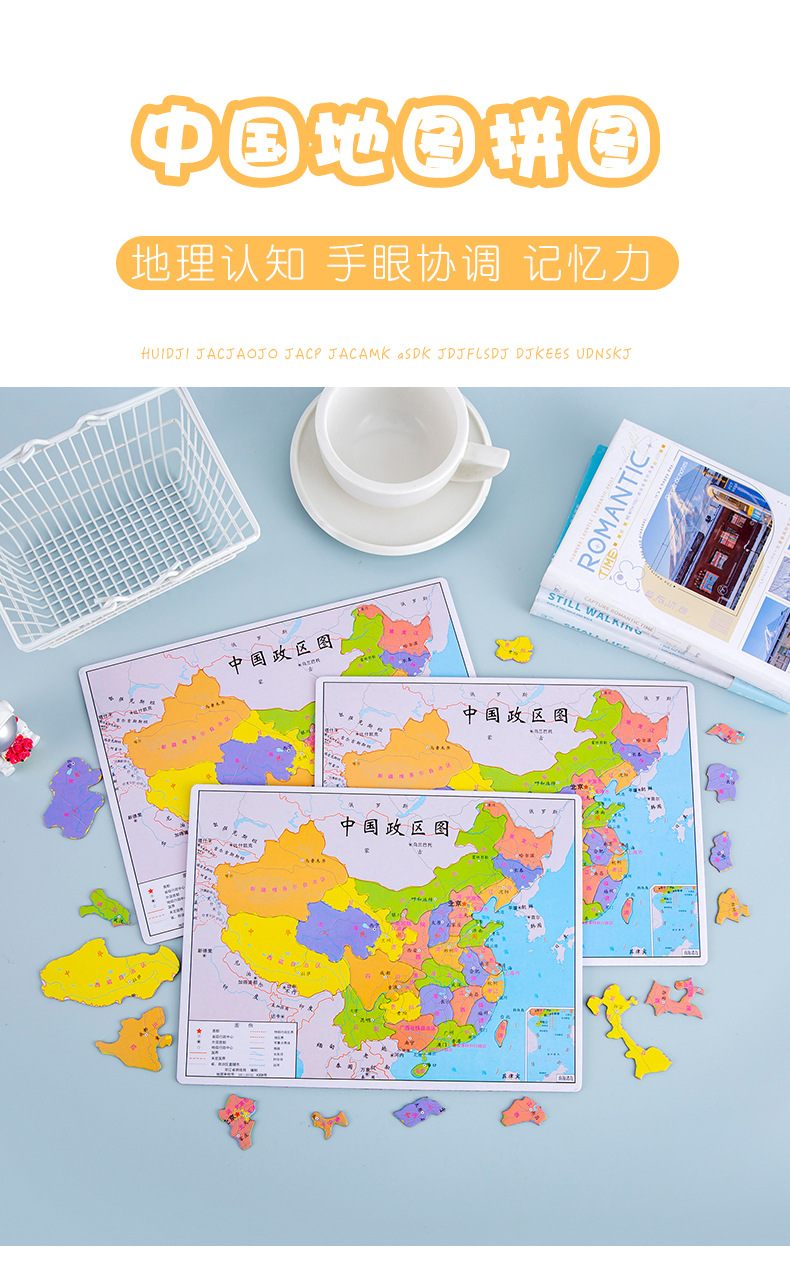 중국지도 직소 퍼즐 초등학교 학생을위한 어린이 종이 직소 퍼즐 인지 유치원 조기 교육 퍼즐 중국 행정 구역 직소 퍼즐스토어 가기