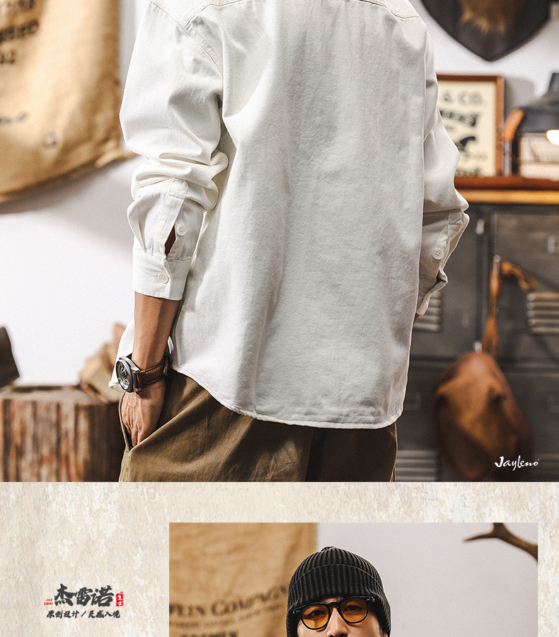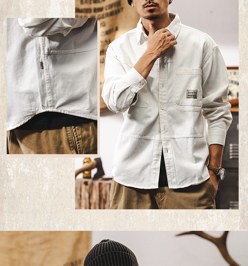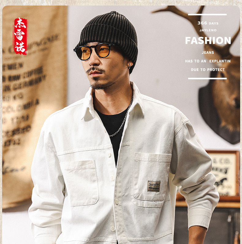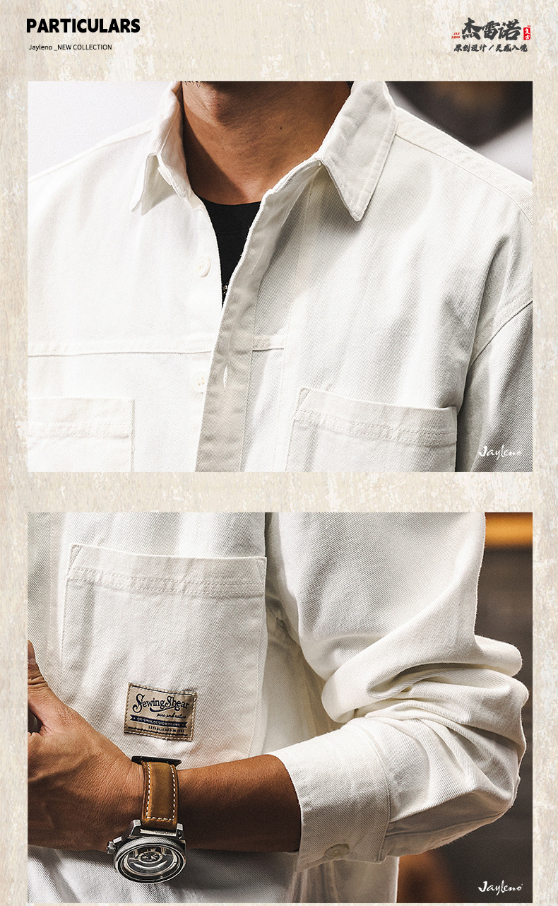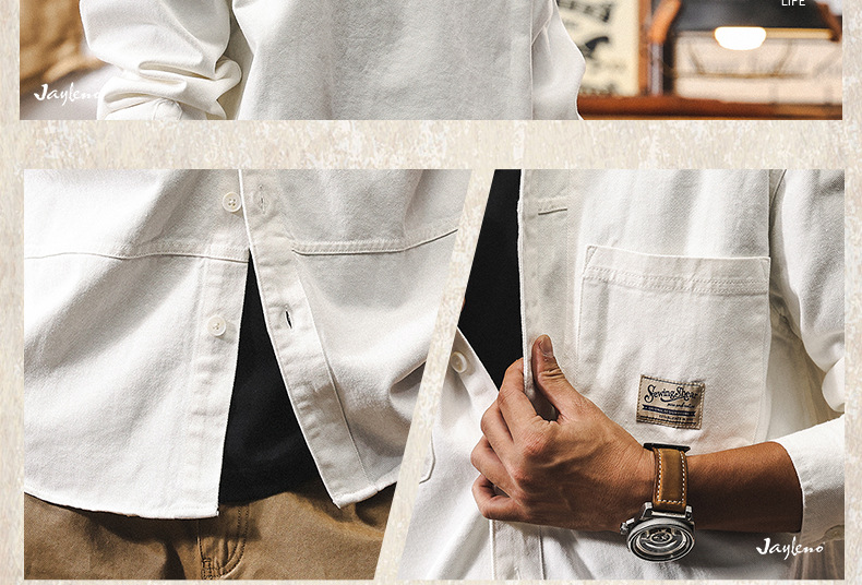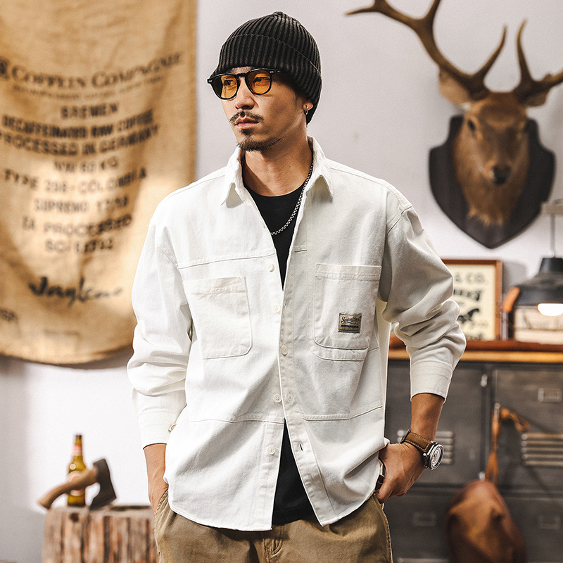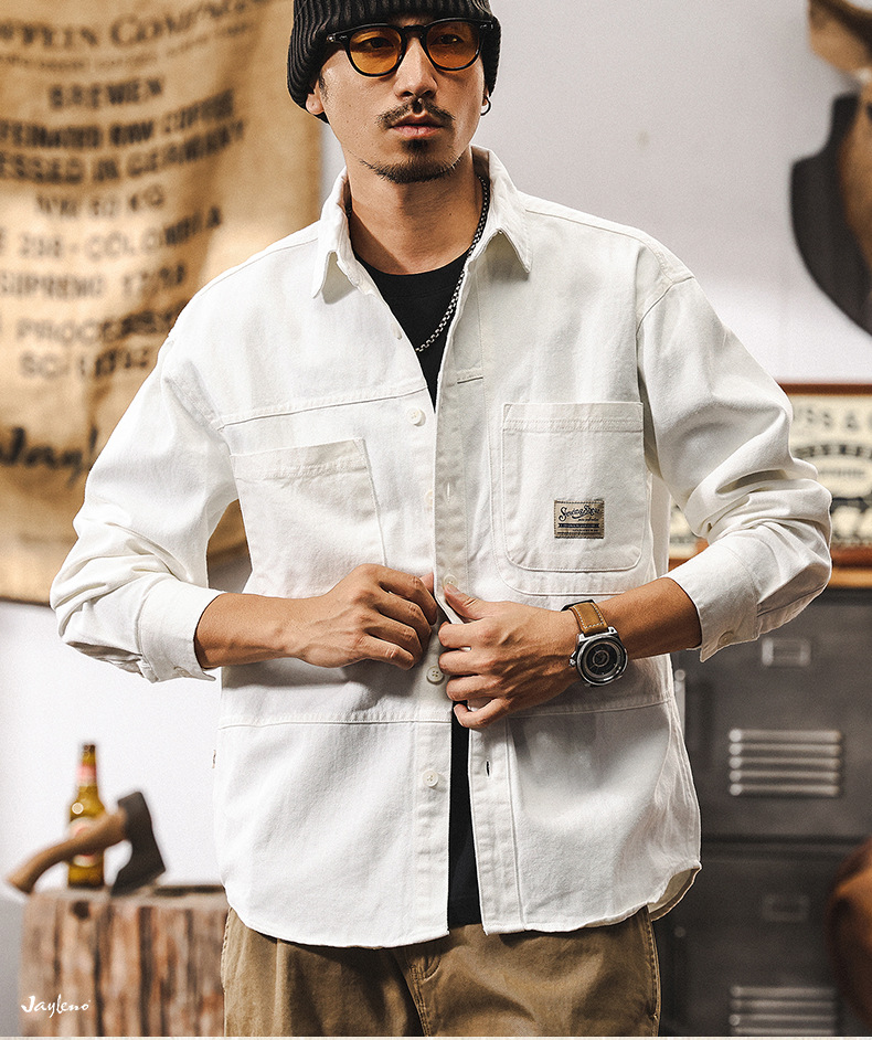 화이트 크록 셔츠 남자 봄 재킷 남자 2025 새로운 미국 복고풍 유행 브랜드 느슨한 캐주얼 긴 소매 셔츠스토어 가기
