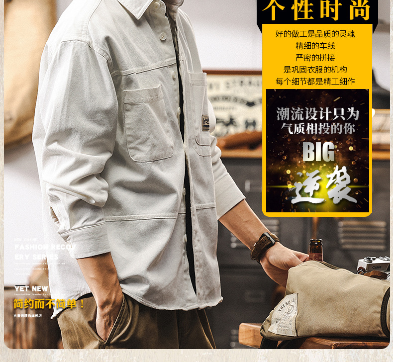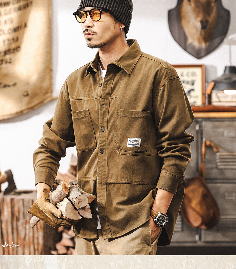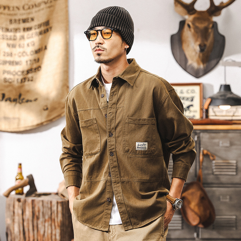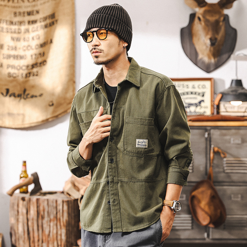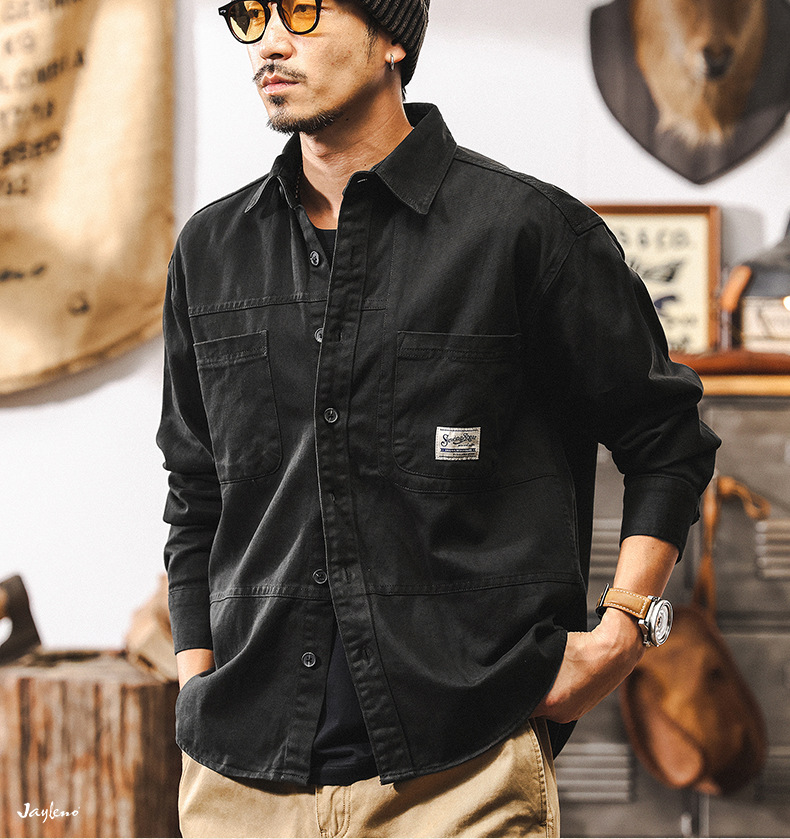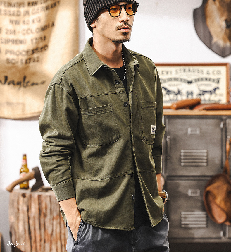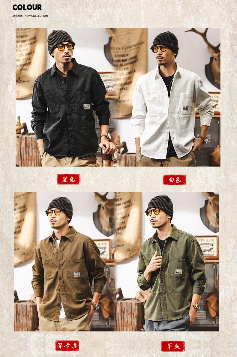 화이트 크록 셔츠 남자 봄 재킷 남자 2025 새로운 미국 복고풍 유행 브랜드 느슨한 캐주얼 긴 소매 셔츠스토어 가기