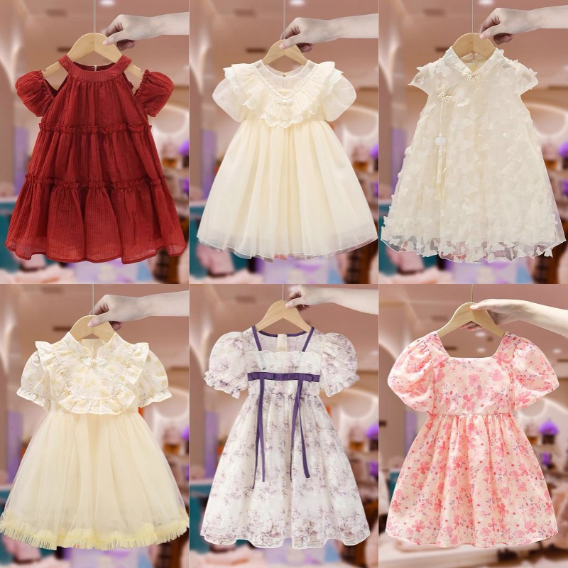 여자 여름 원피스 2025 어린이 새 스타일 메쉬 스커트 어린이 여름 스커트 소녀의 폰치아 공주 스커트스토어 가기