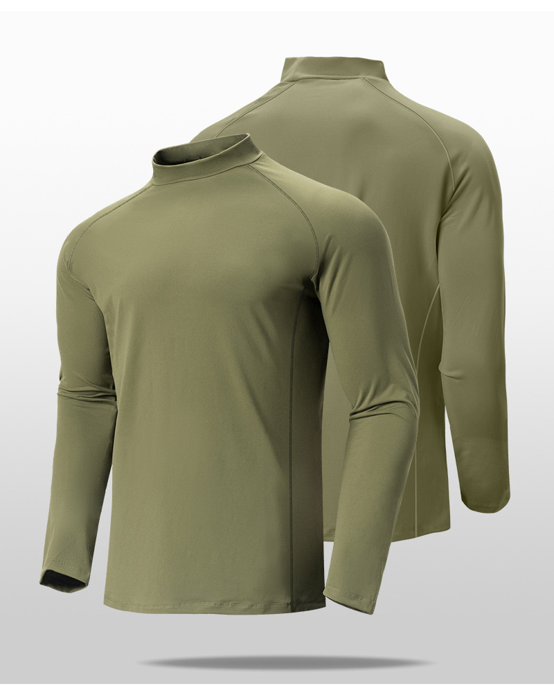 2025 남자 봄 새로운 경량 빠른 건조 바닥 셔츠 스포츠 빠른 건조 스탠드 칼라 긴 소매 옷 내부 상단