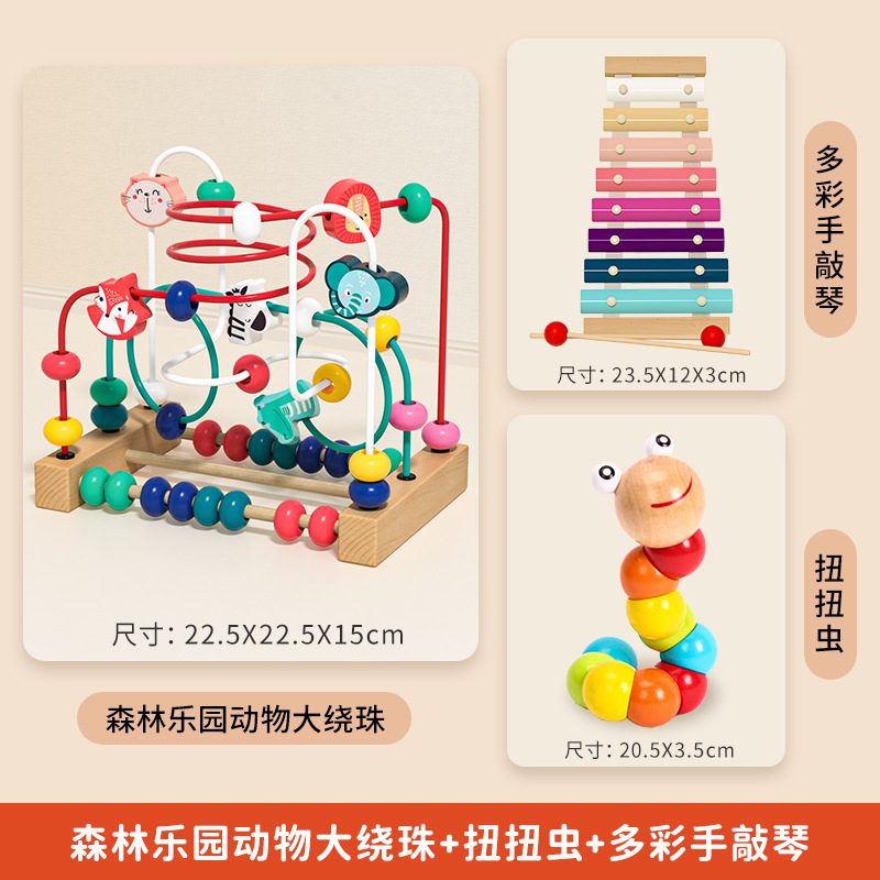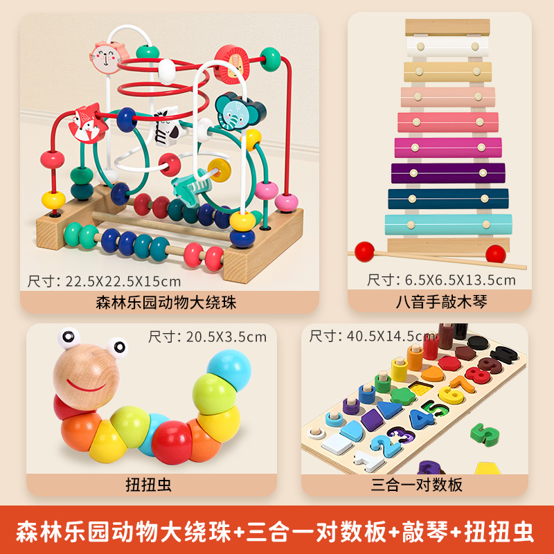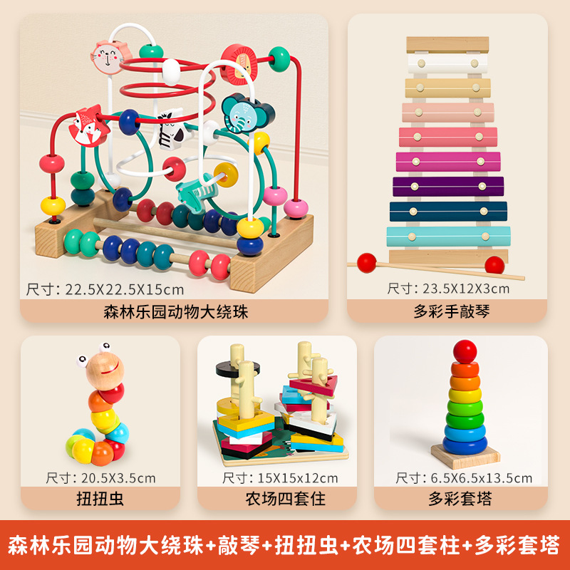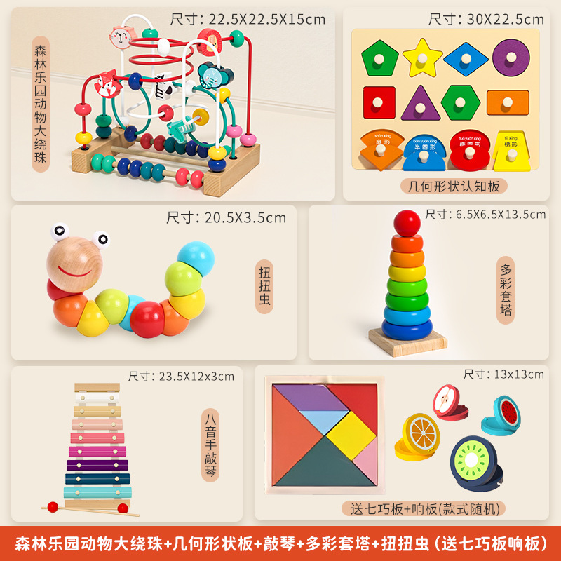 • 숲의 천국 동물 큰 구슬 + 기하학적 모양 보드 + 피아노 두드리기 + 화려한 탑 + 뒤틀린 곤충 (무료 칠교놀이 캐스터네츠)