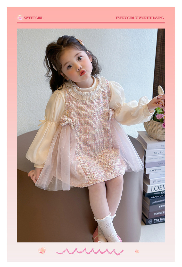 소녀 원피스 봄 2025 새로운 스타일 어린이 긴 소매 샤넬 베스 원피스 아기 소녀 공주 원피스스토어 가기