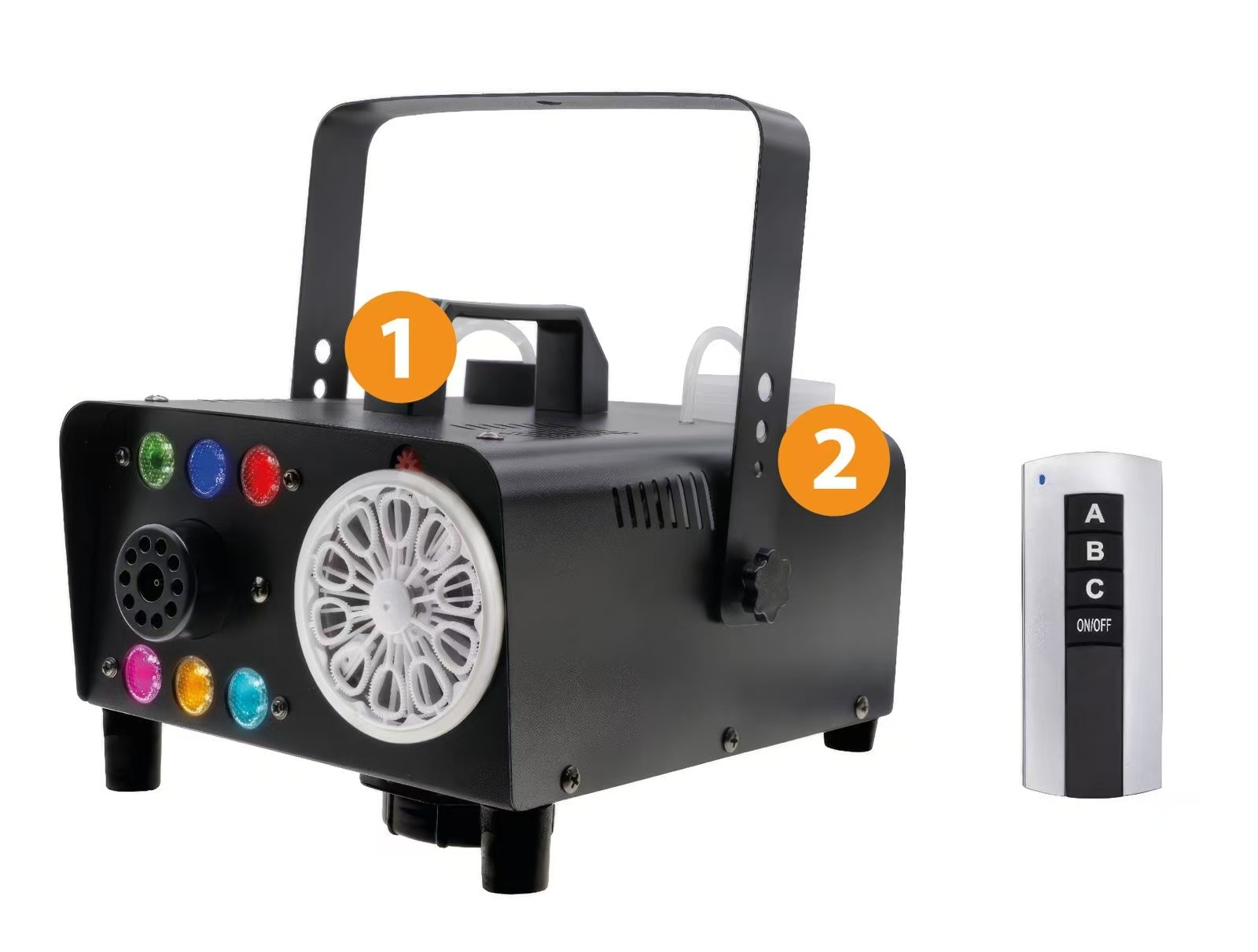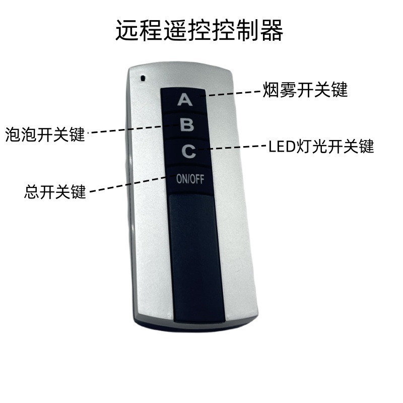 控制方式:无线遥控款,机器自带手动喷烟 喷泡泡功能