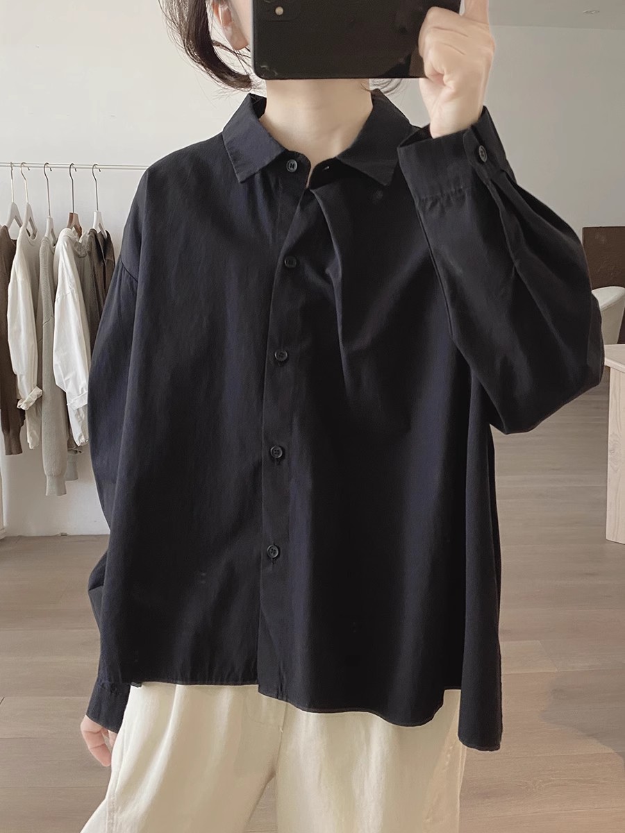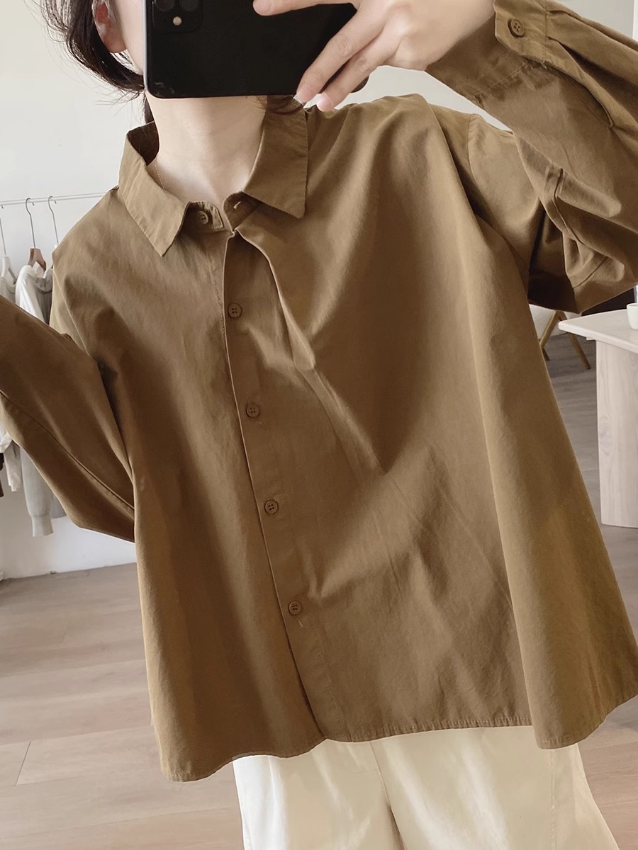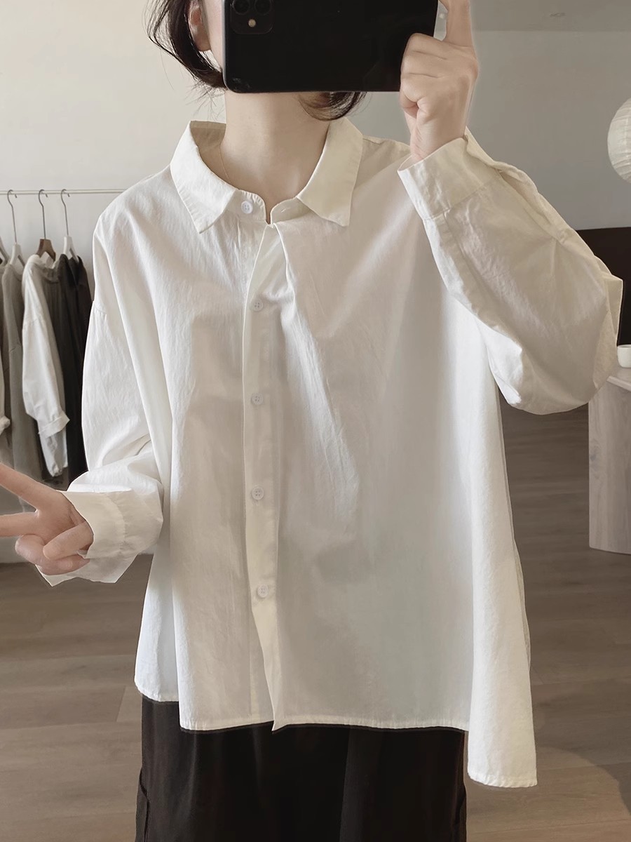 2025 봄과 가을 새로운 셔츠 여성의 느슨한 플러스 사이즈 슬리밍 간단한 틈새 디자인 감각 연령 감소 기본 탑스토어 가기