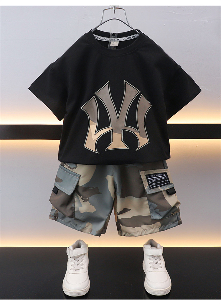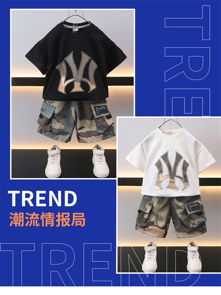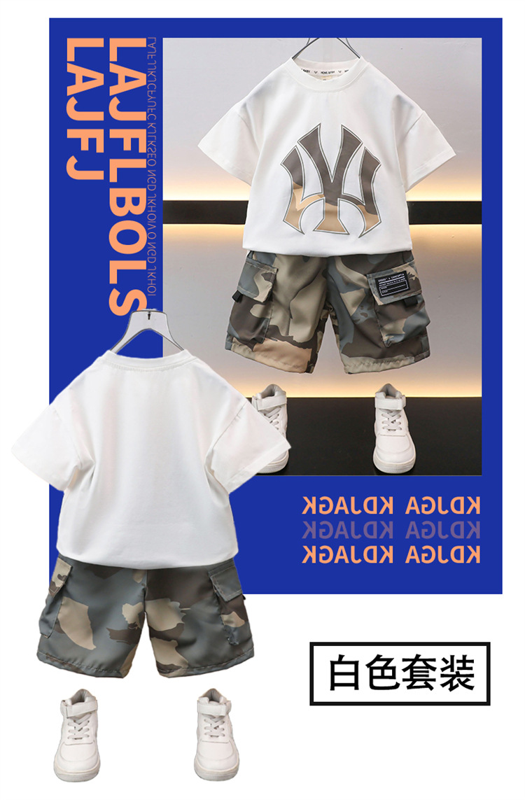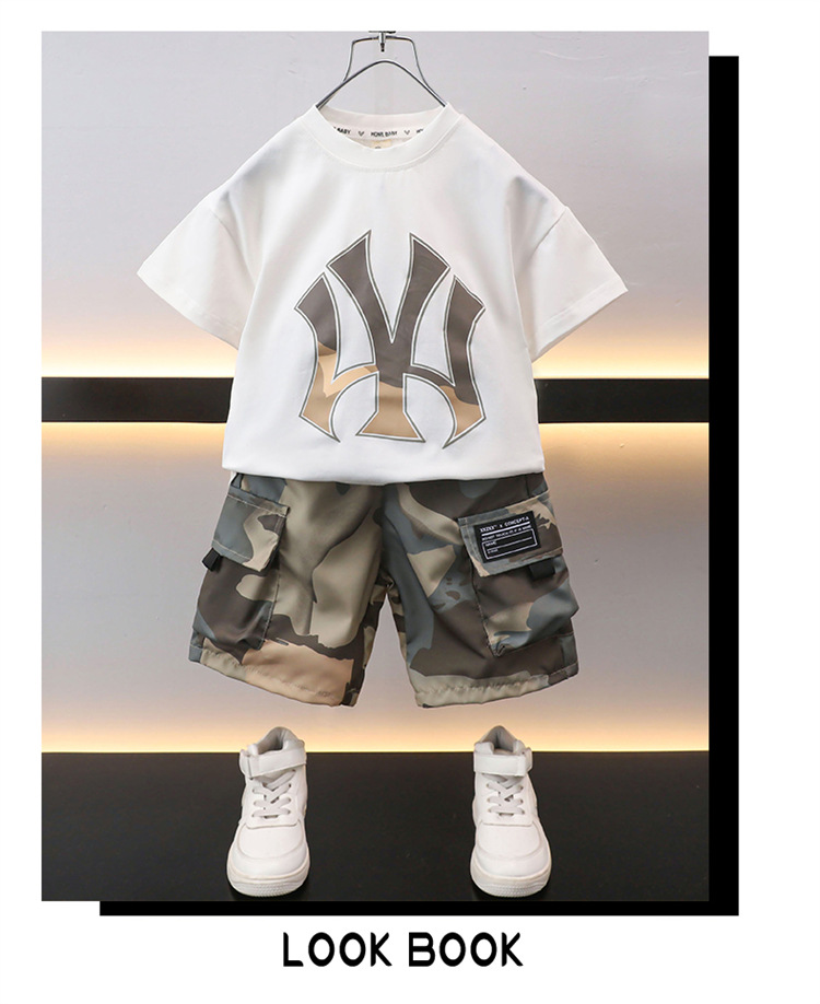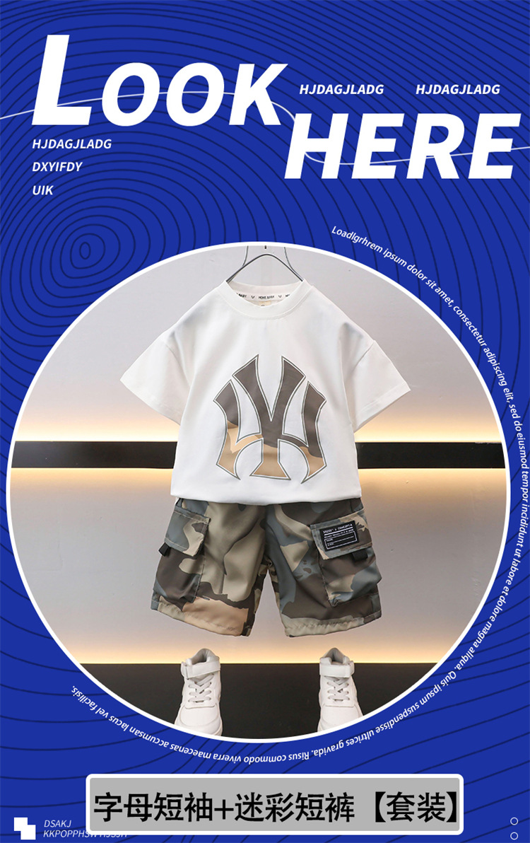 남자들의 여름 반팔 티셔츠 위장 바지 투피스 2025 새로운 핸섬 스포츠 느슨한 세트 트렌디스토어 가기