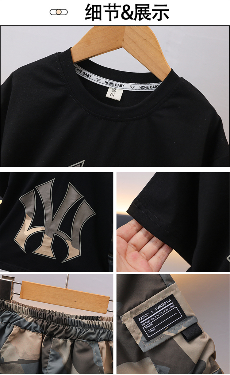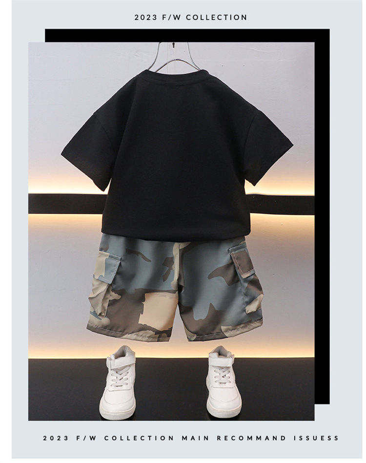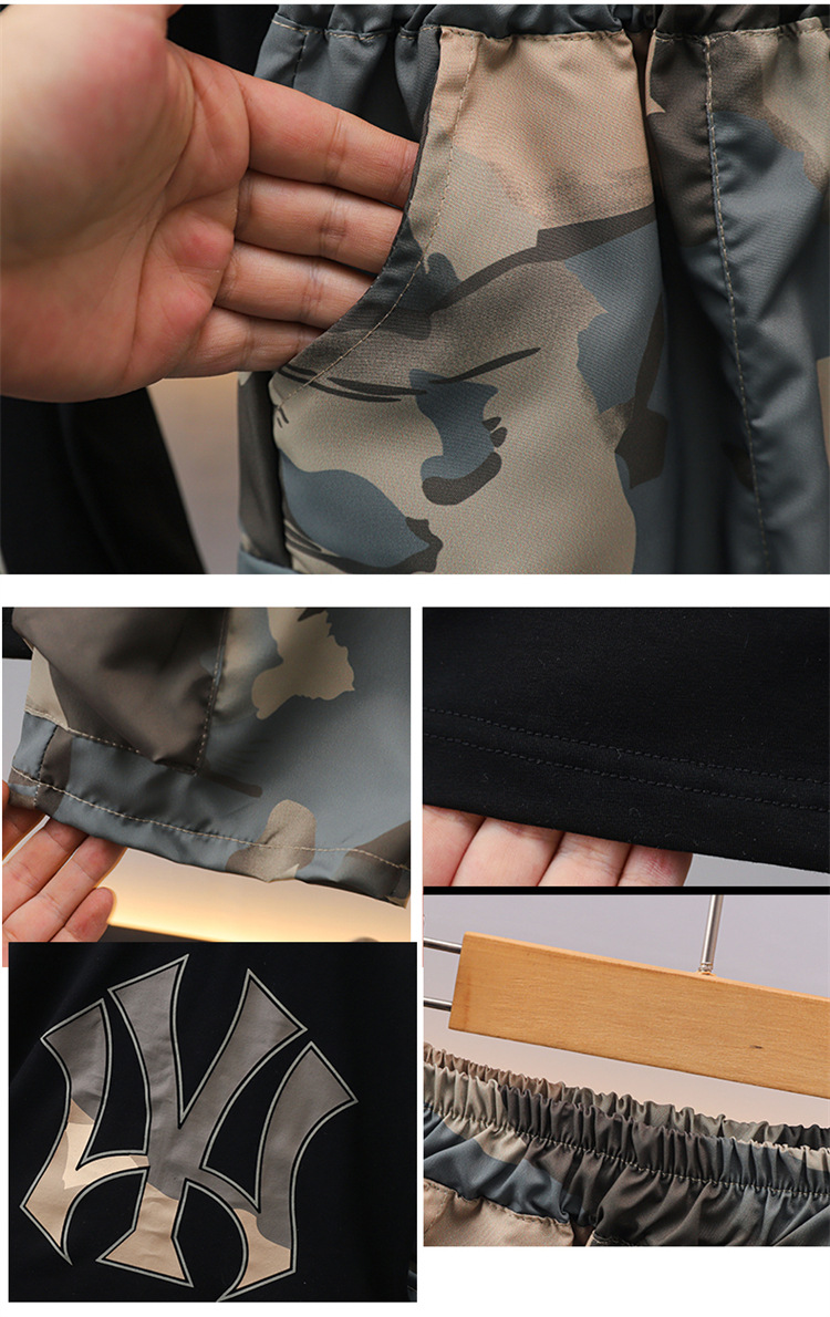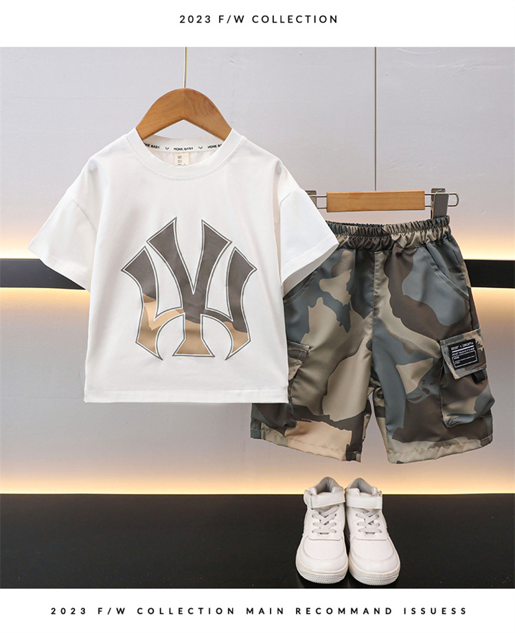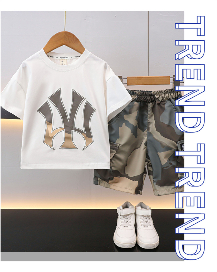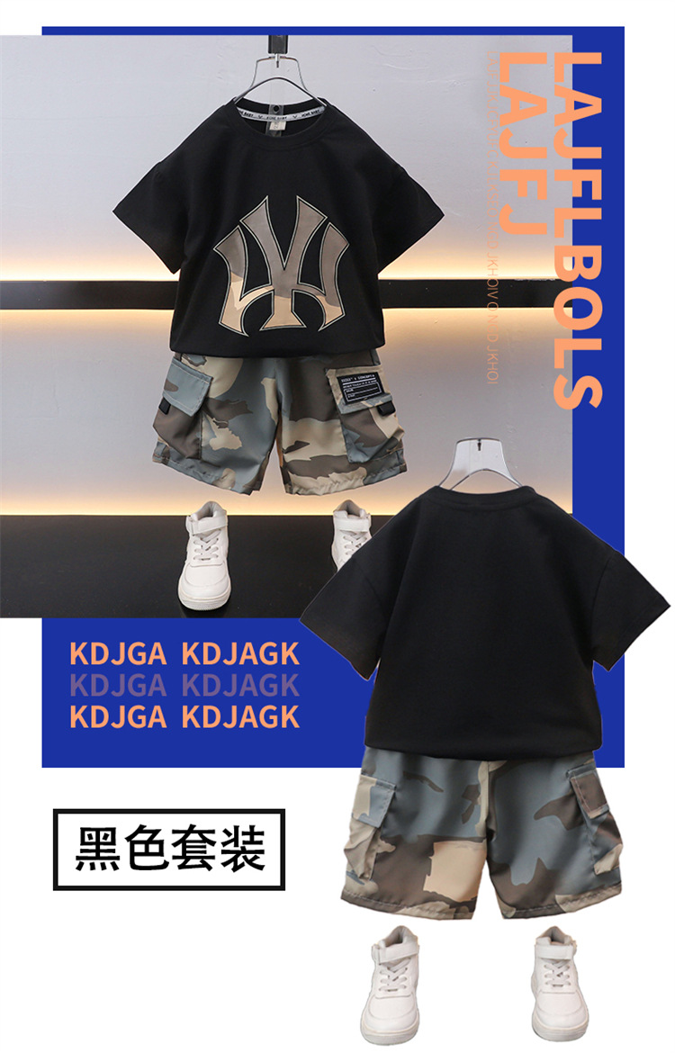 남자들의 여름 반팔 티셔츠 위장 바지 투피스 2025 새로운 핸섬 스포츠 느슨한 세트 트렌디스토어 가기