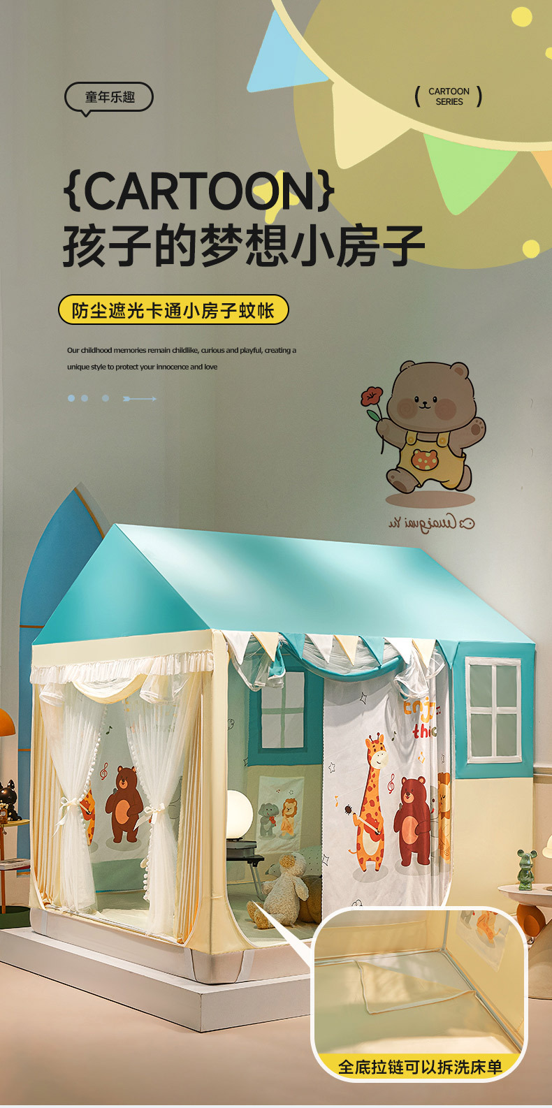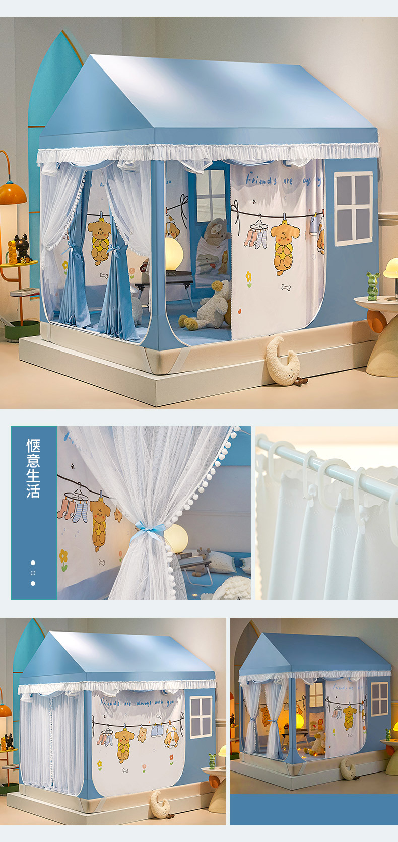 침대 텐트 실내 모기장 가구 2025 새로운 공주 소녀 안티 가을 어린이 작은 집 침대 커튼 유르트스토어 가기