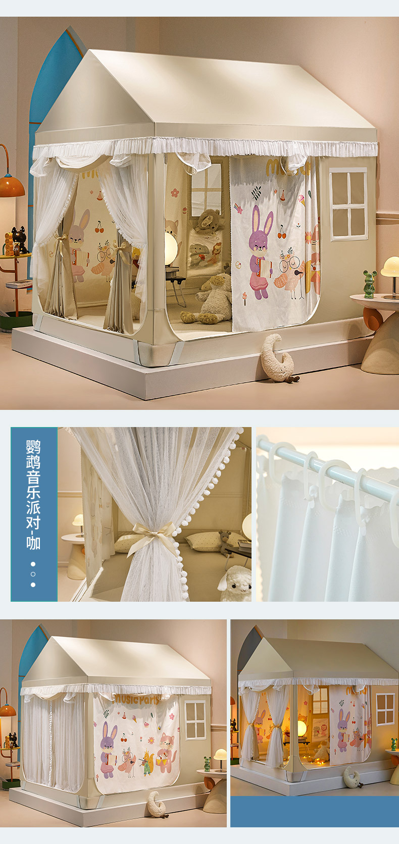 침대 텐트 실내 모기장 가구 2025 새로운 공주 소녀 안티 가을 어린이 작은 집 침대 커튼 유르트