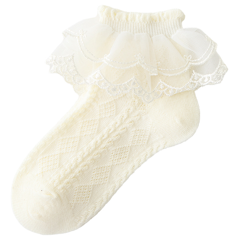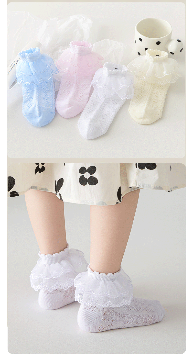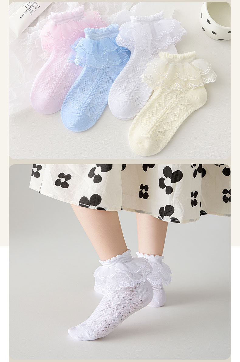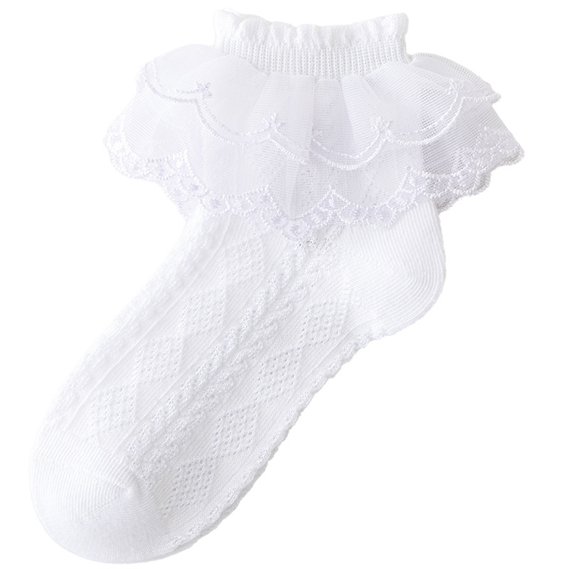 어린이 라틴 댄스 양말 소녀 댄스 양말 레이스 레이스 얇은 공주 양말 순수 면 봄과 가을 화이트 레이스 여름 소녀