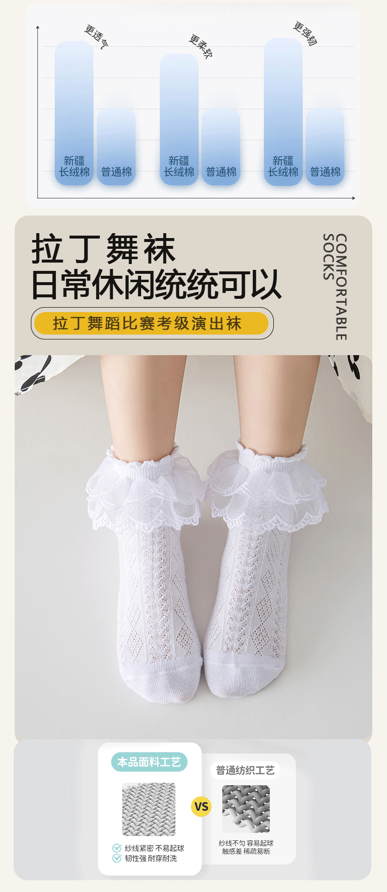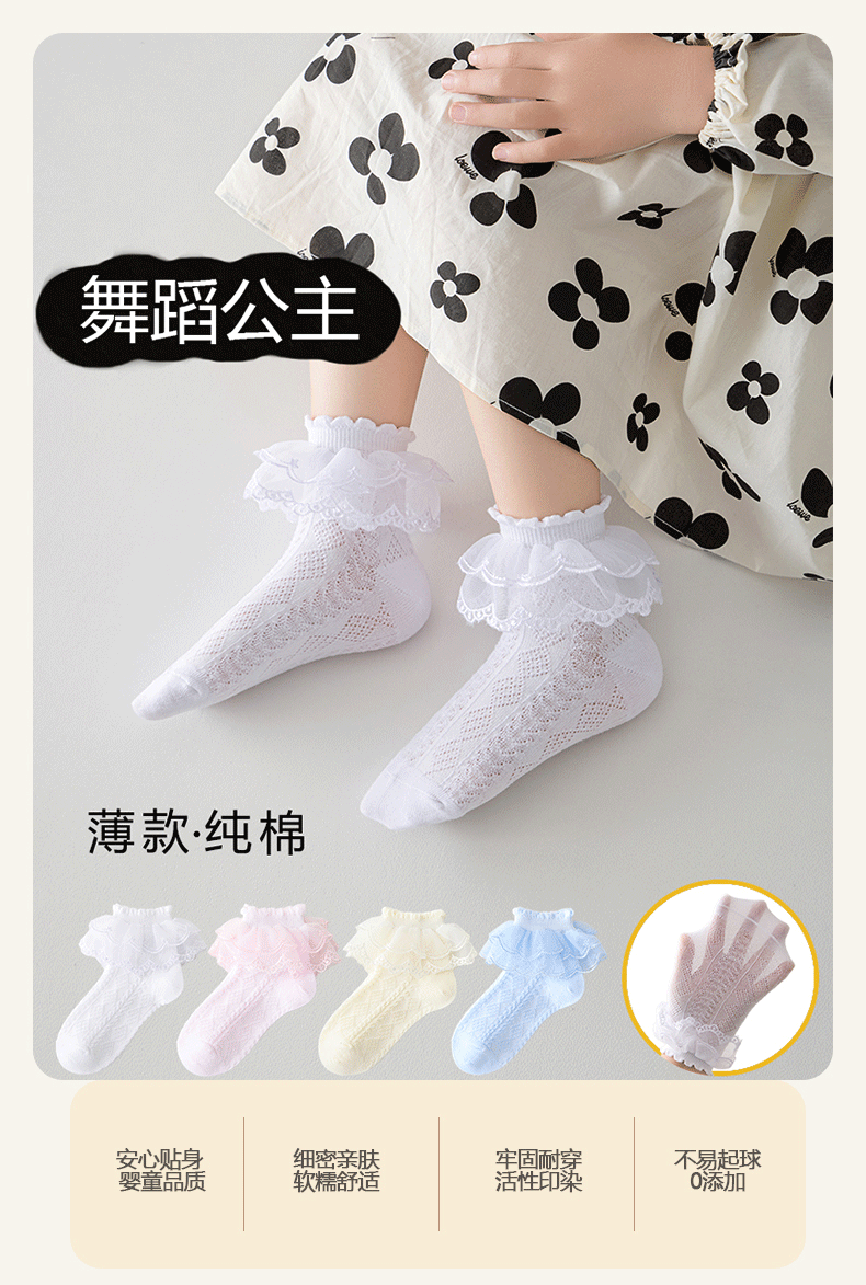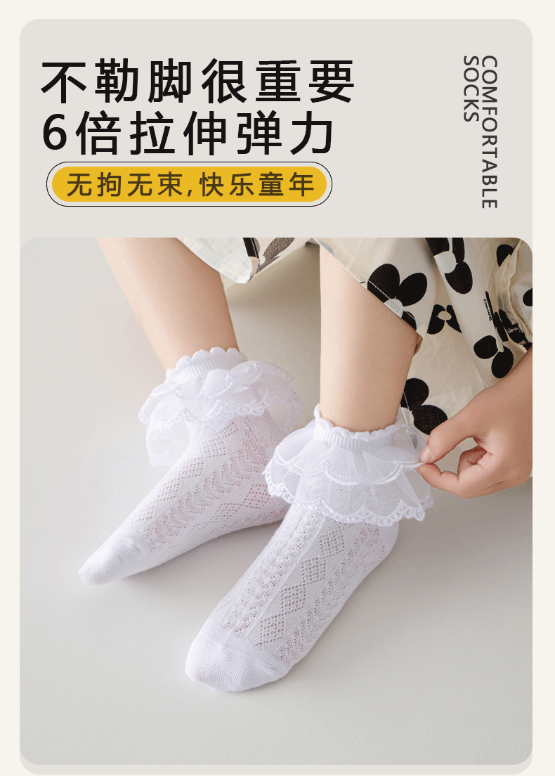 어린이 라틴 댄스 양말 소녀 댄스 양말 레이스 레이스 얇은 공주 양말 순수 면 봄과 가을 화이트 레이스 여름 소녀