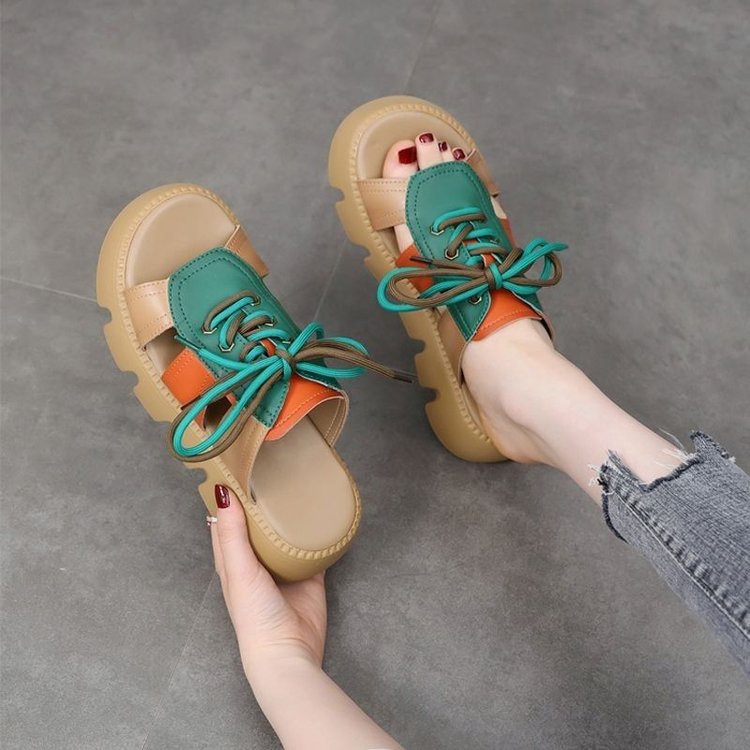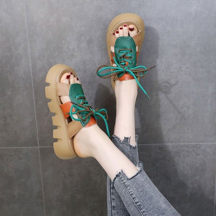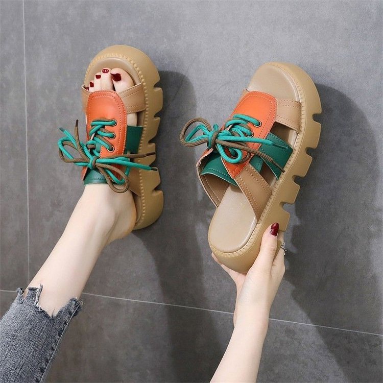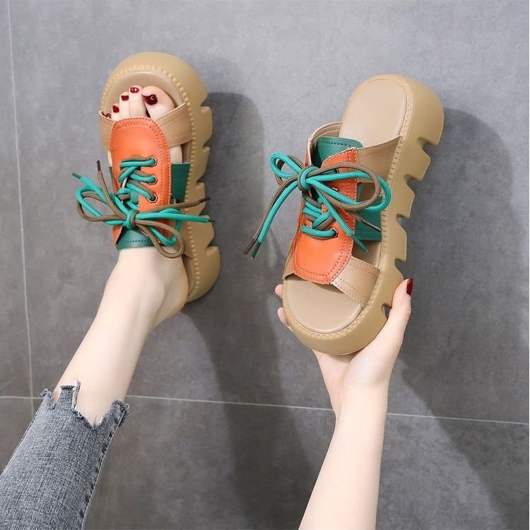 여성용 겉옷 용 두꺼운 밑창 샌들 2025 여름 새로운 스타일 머핀 높이 증가 부드러운 밑창 비 슬립 통기성 오픈 토 여성용 샌들
