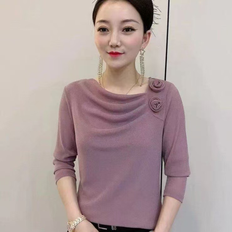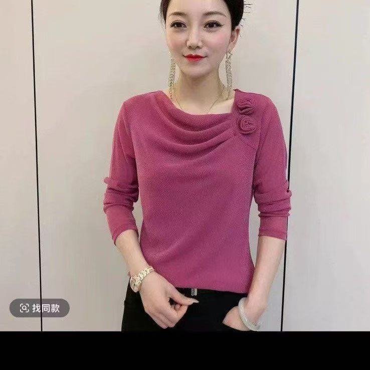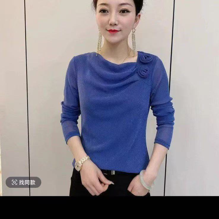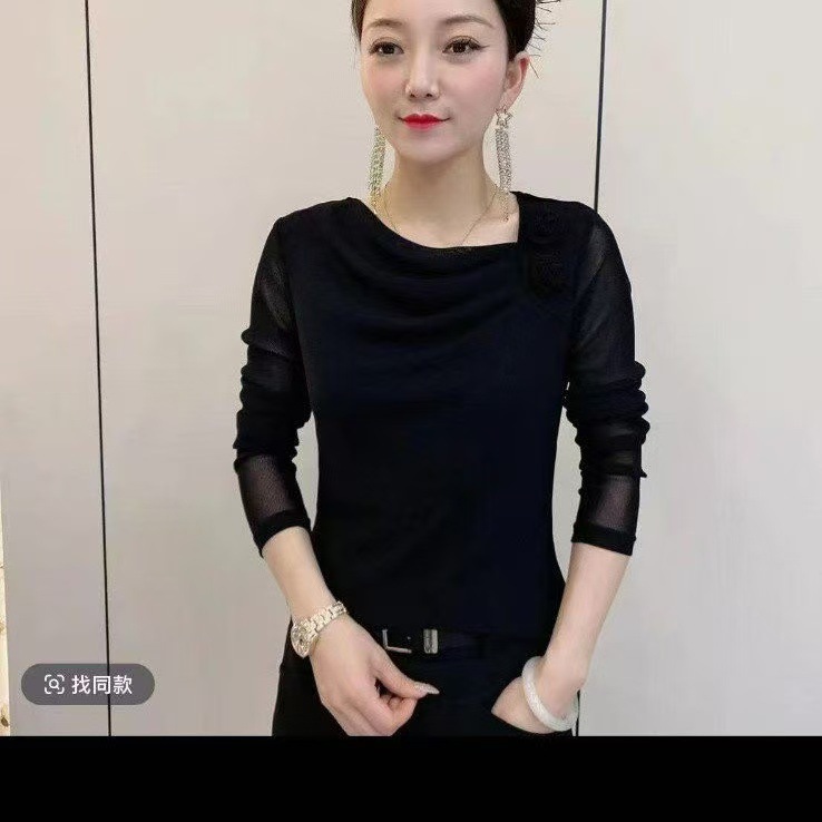 두 개의 꽃 더미 칼라 메쉬 작은 셔츠 여성의 단색 조커 슬림 기질 티셔츠 외국 스타일베이스 셔츠스토어 가기
