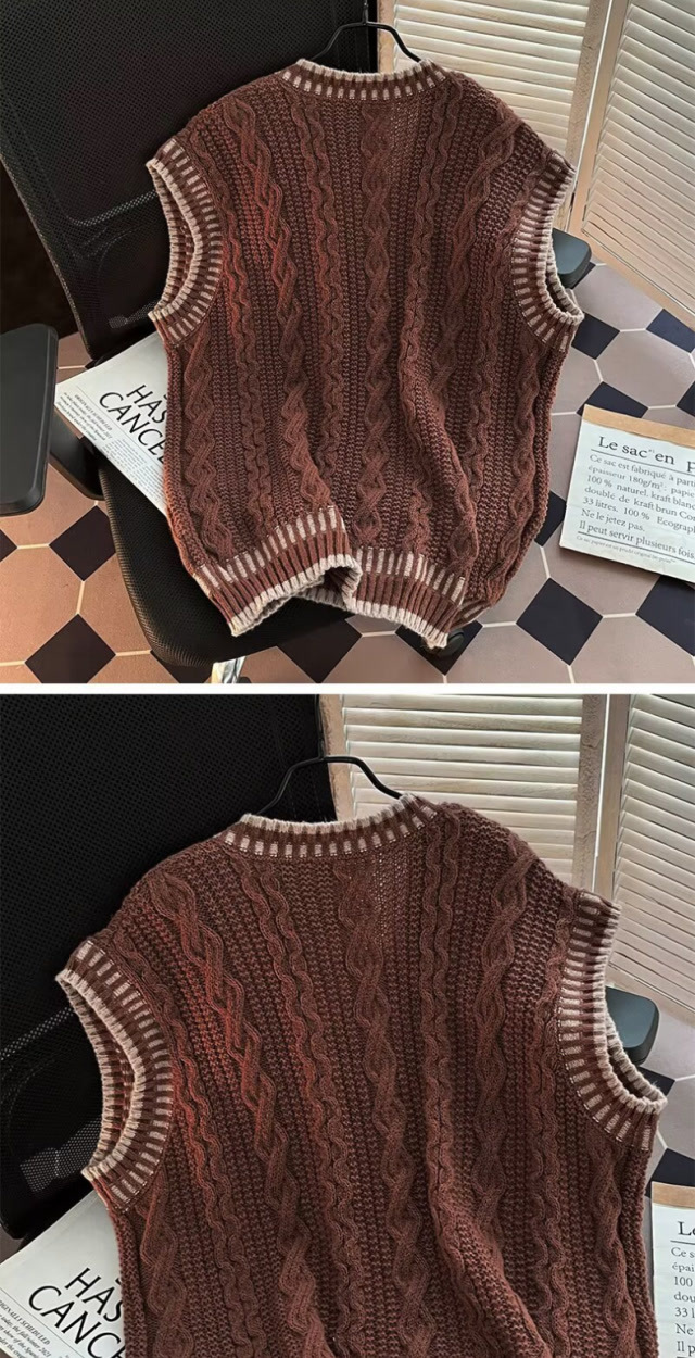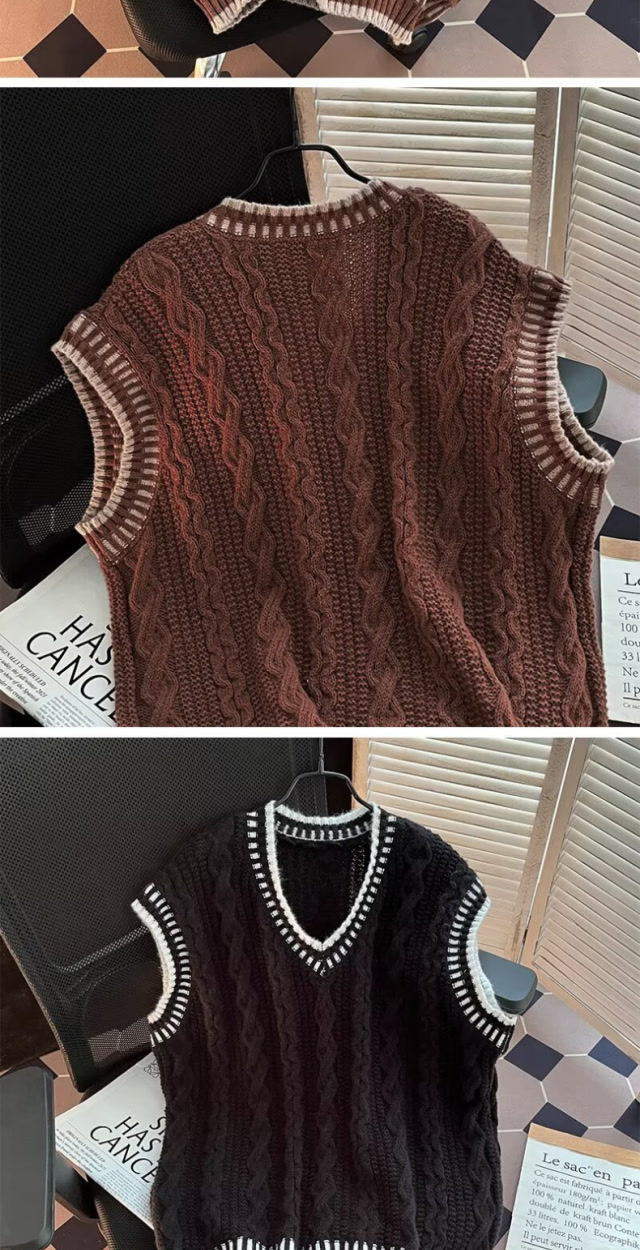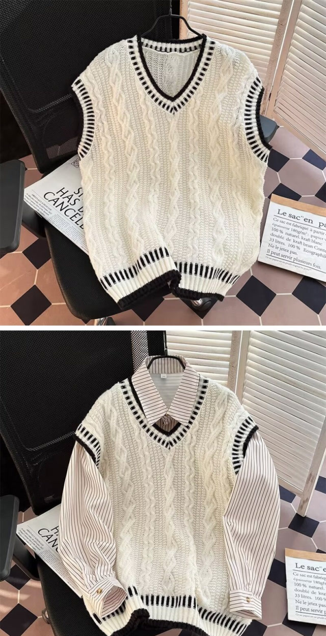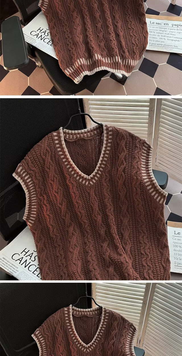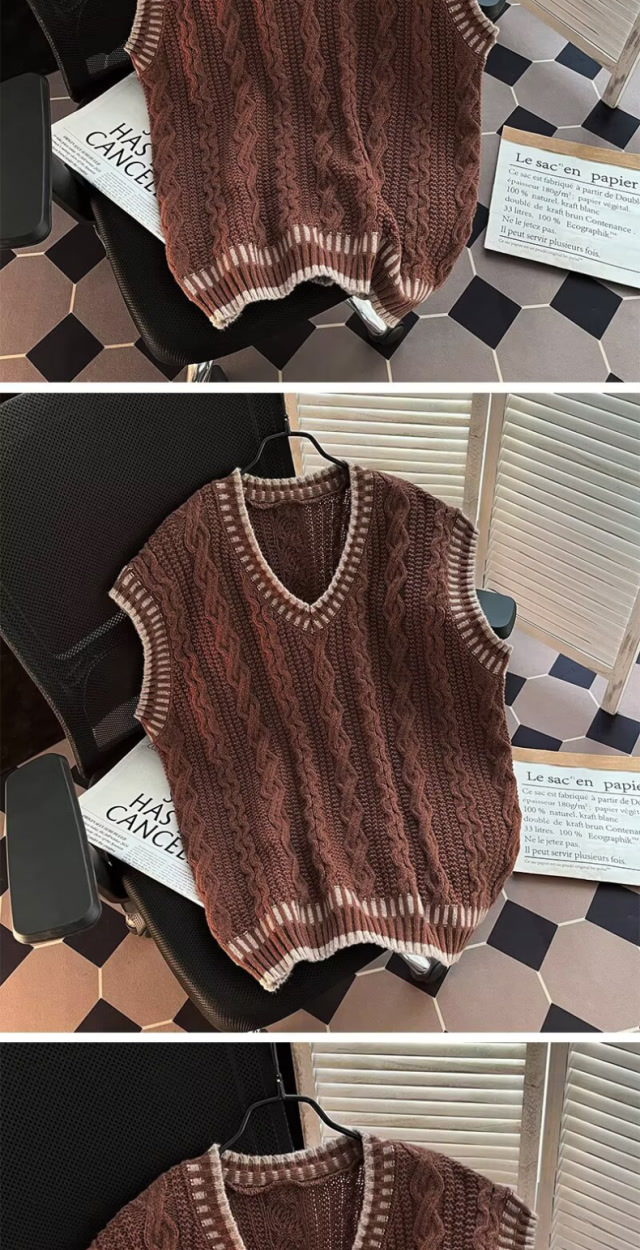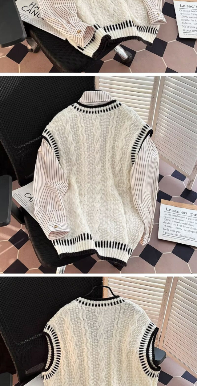 가을과 겨울 대학 윈드 트위스트 스웨터 남성용 캐주얼 V 넥 조끼 니트 스웨터 한국 스타일 패셔너블 루즈 코트스토어 가기