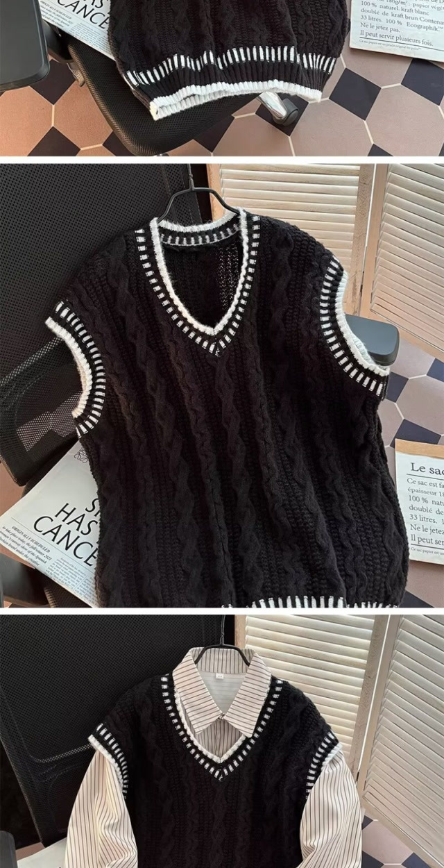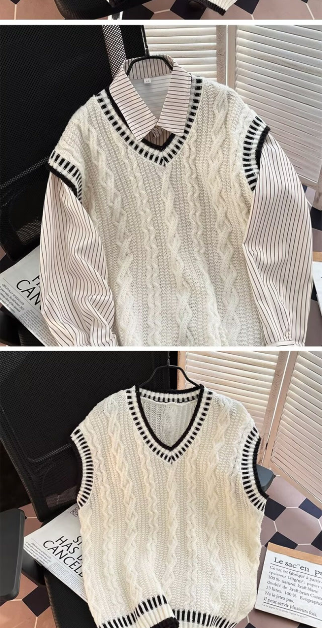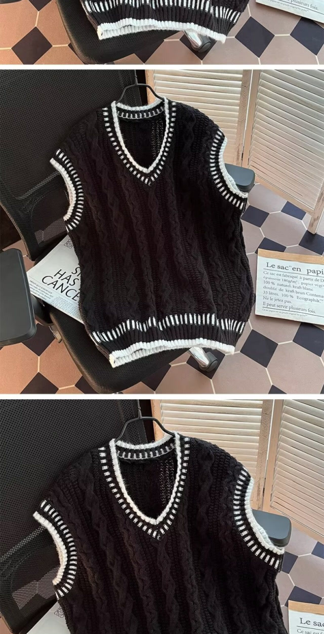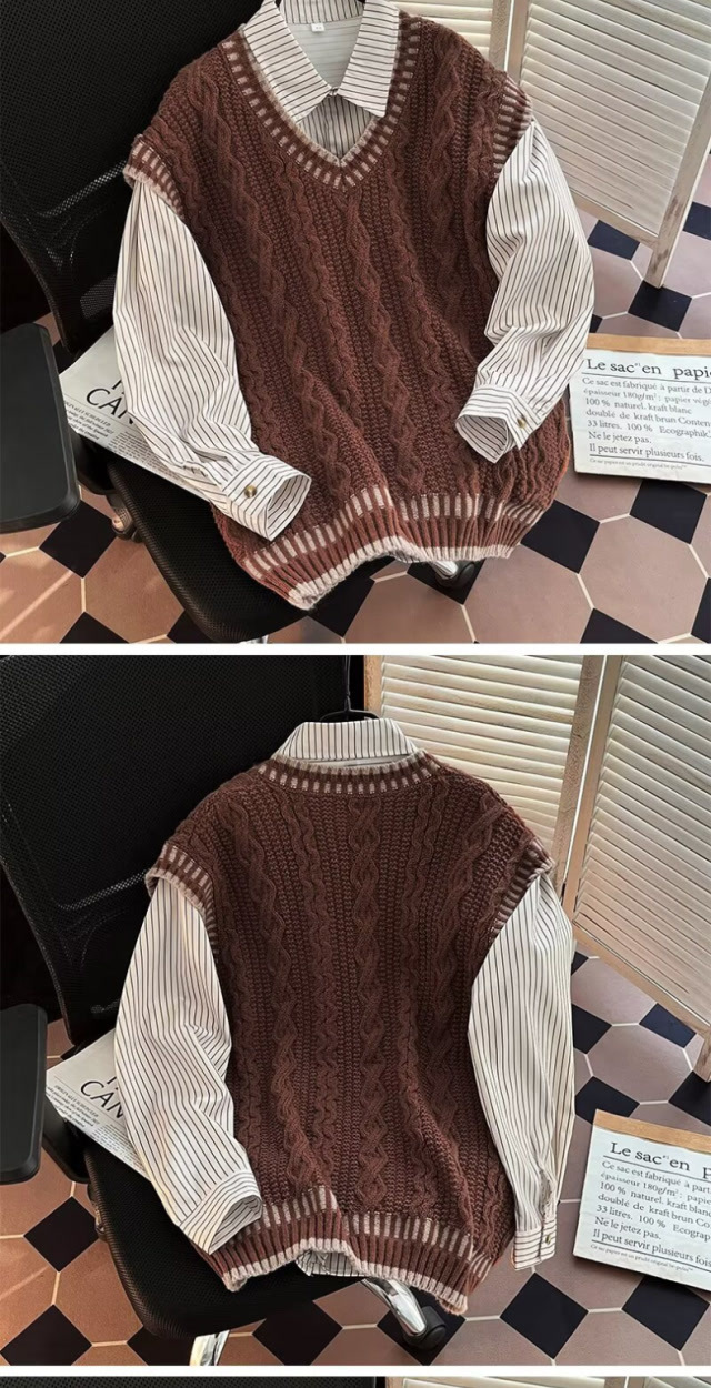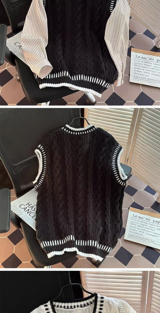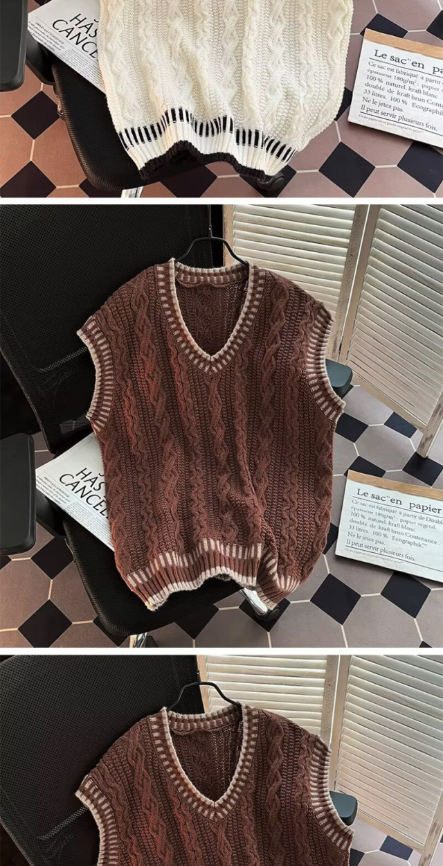 가을과 겨울 대학 윈드 트위스트 스웨터 남성용 캐주얼 V 넥 조끼 니트 스웨터 한국 스타일 패셔너블 루즈 코트스토어 가기