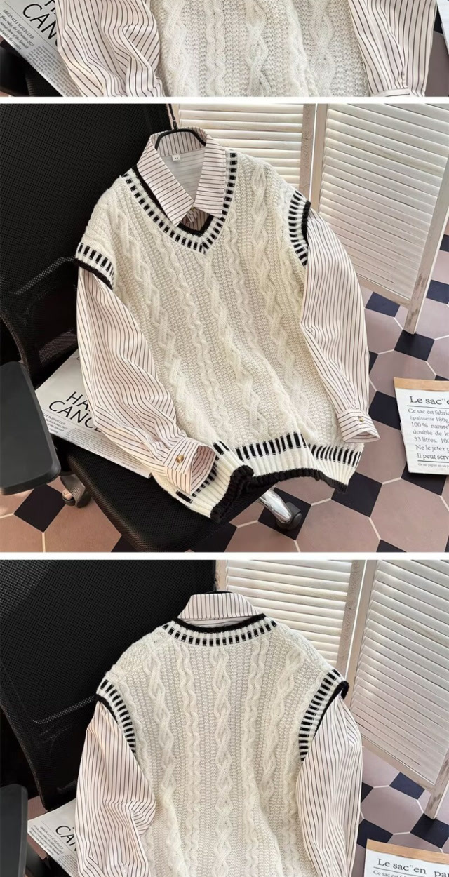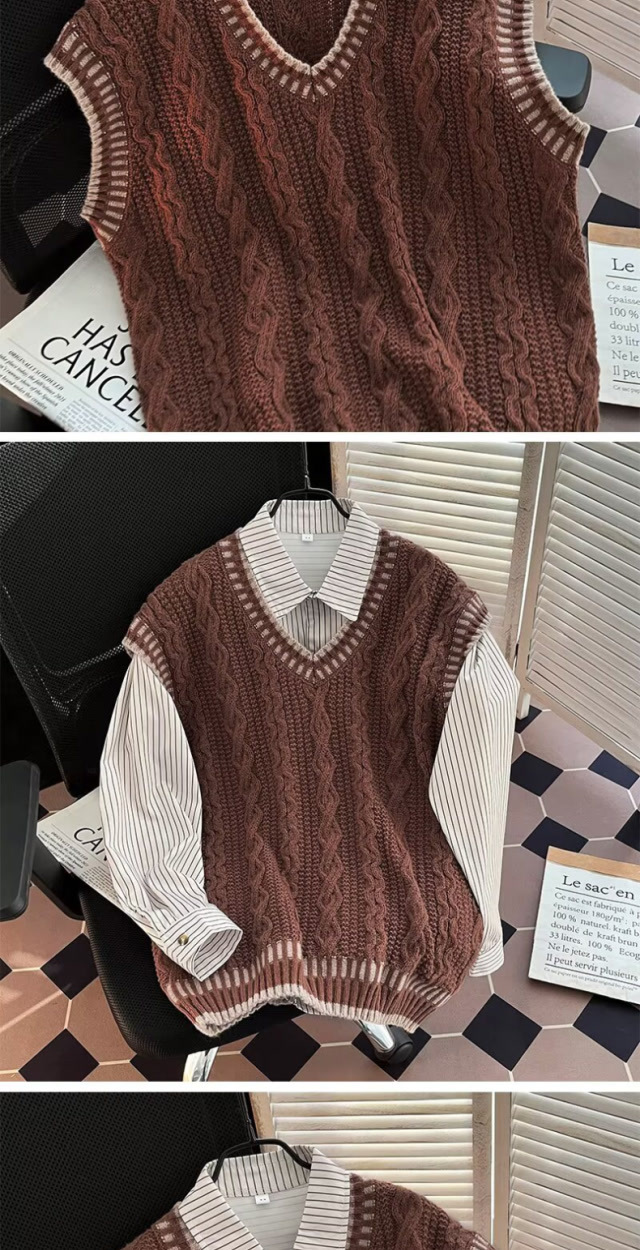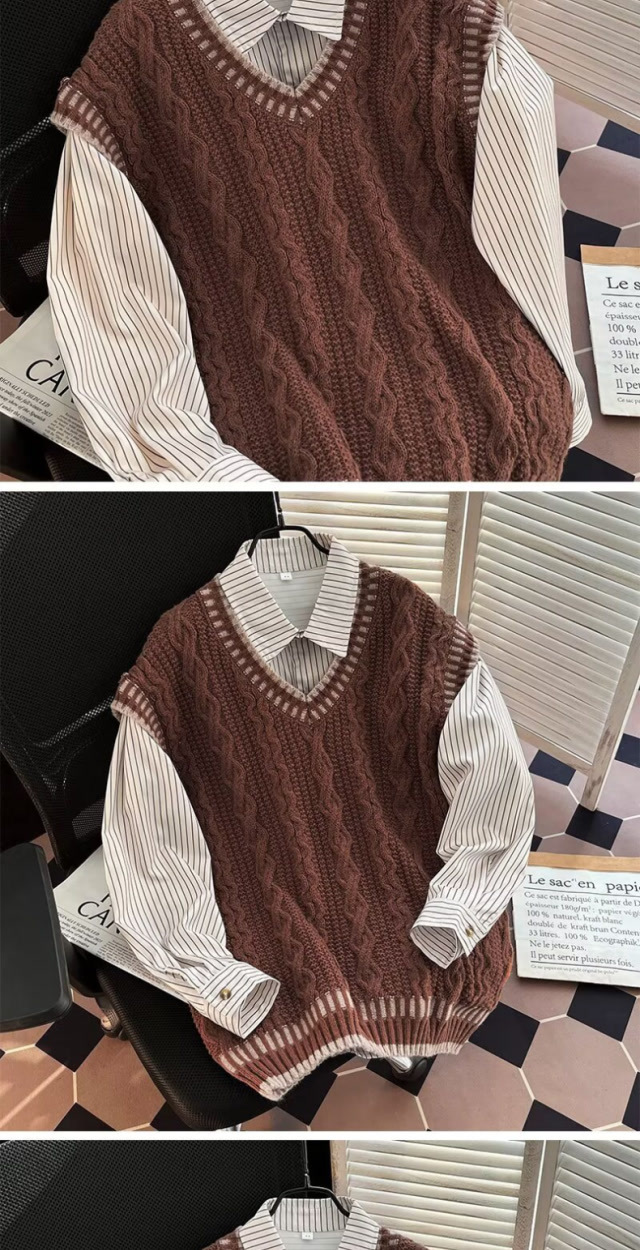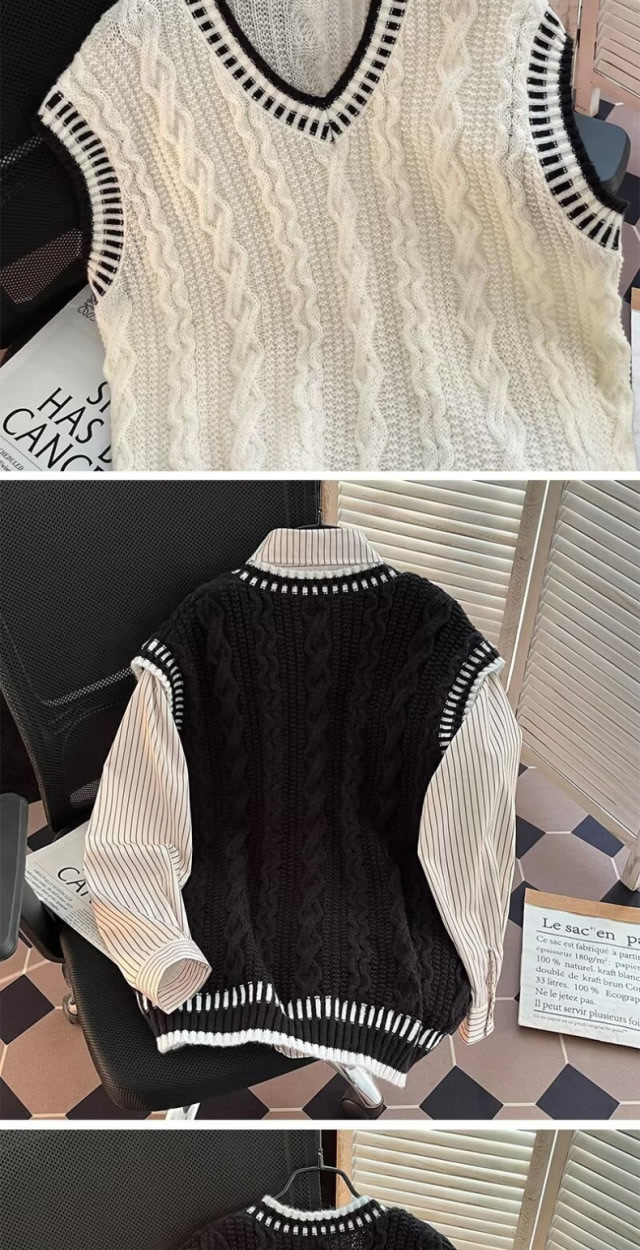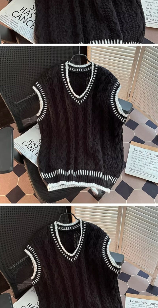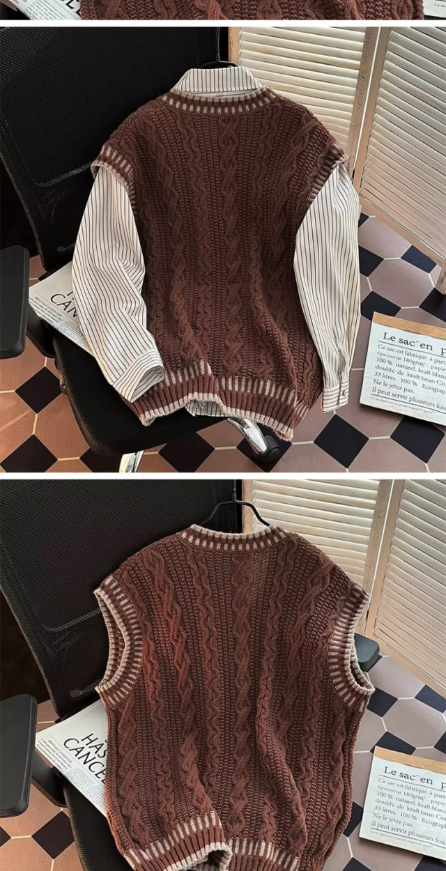 가을과 겨울 대학 윈드 트위스트 스웨터 남성용 캐주얼 V 넥 조끼 니트 스웨터 한국 스타일 패셔너블 루즈 코트스토어 가기