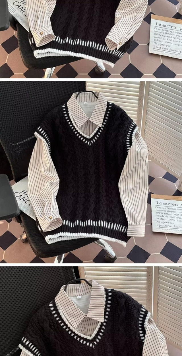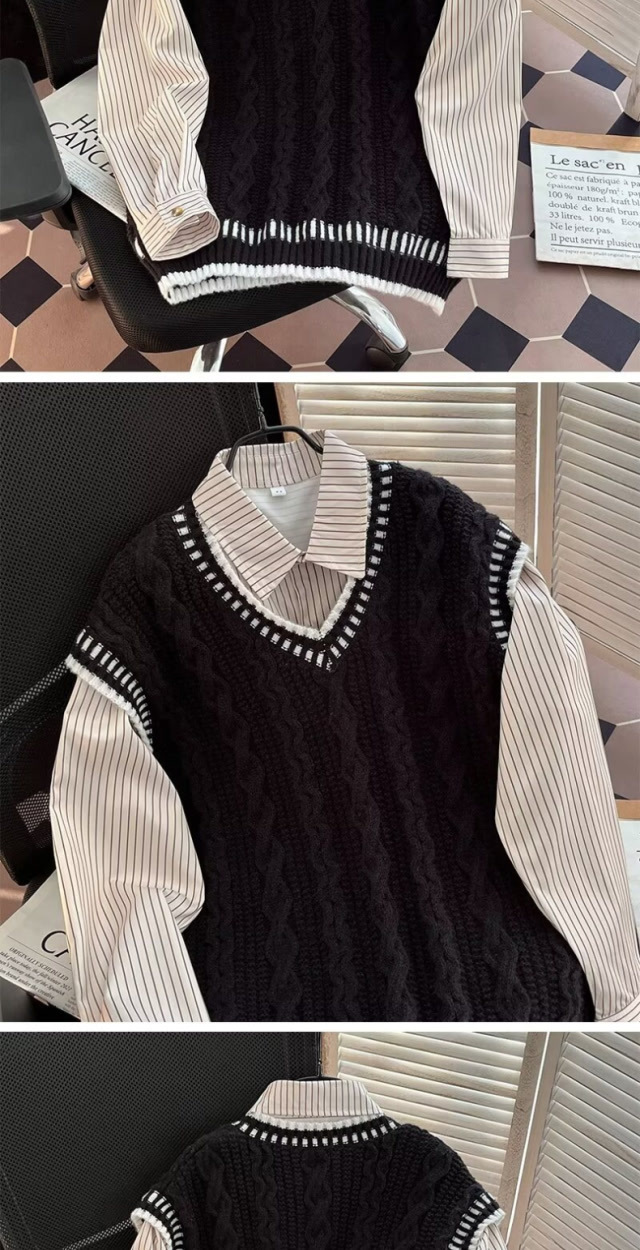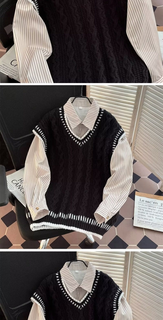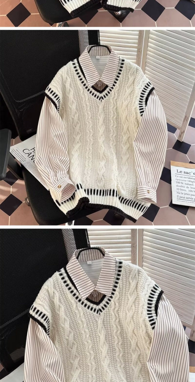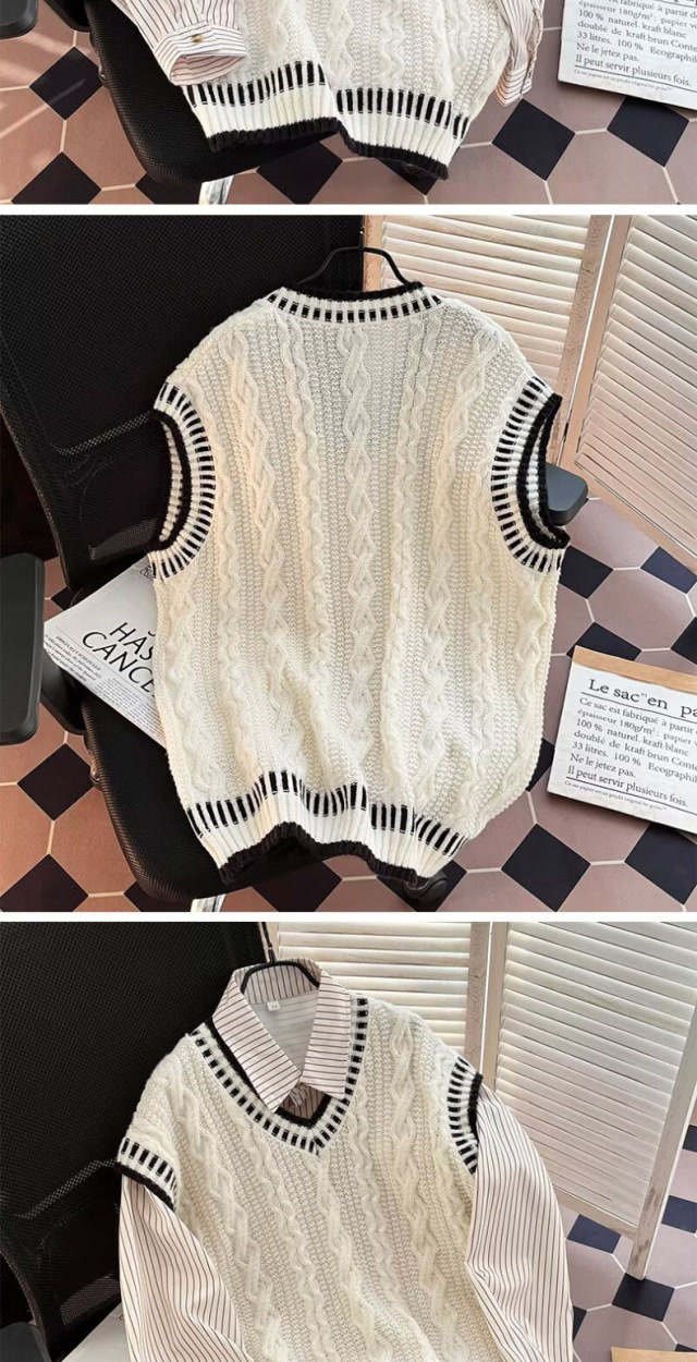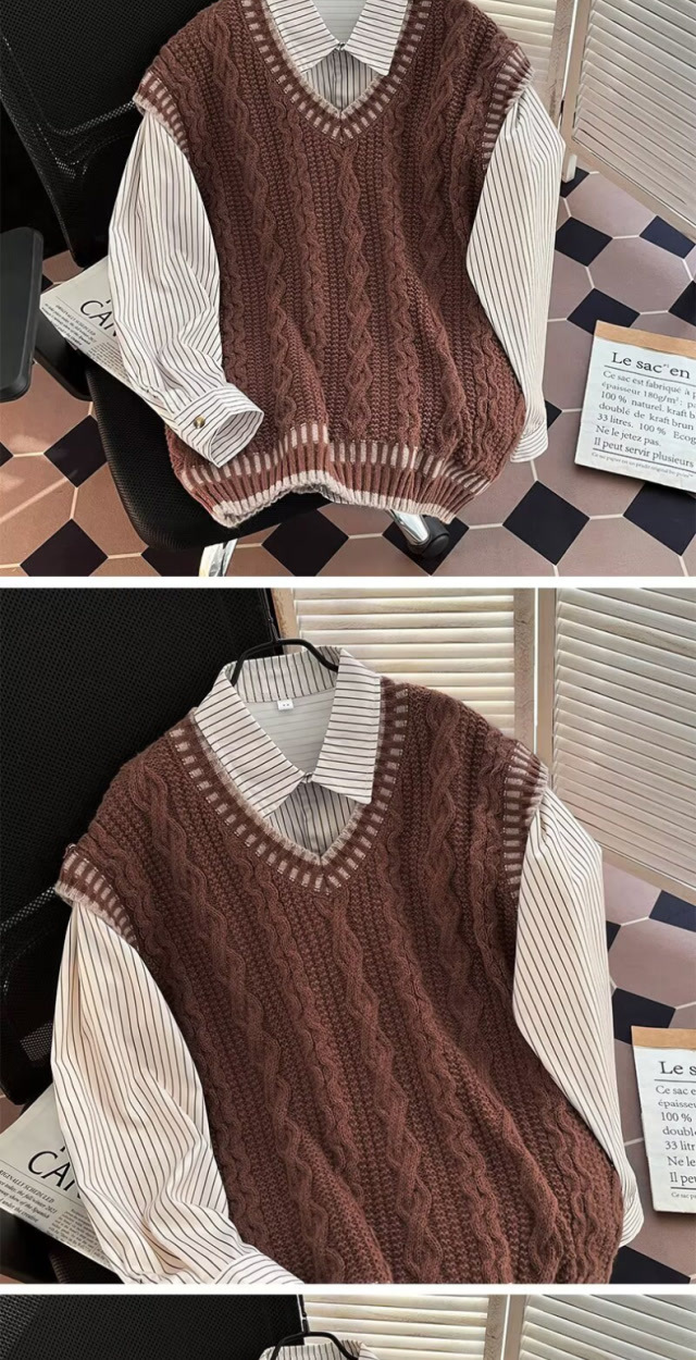 가을과 겨울 대학 윈드 트위스트 스웨터 남성용 캐주얼 V 넥 조끼 니트 스웨터 한국 스타일 패셔너블 루즈 코트스토어 가기